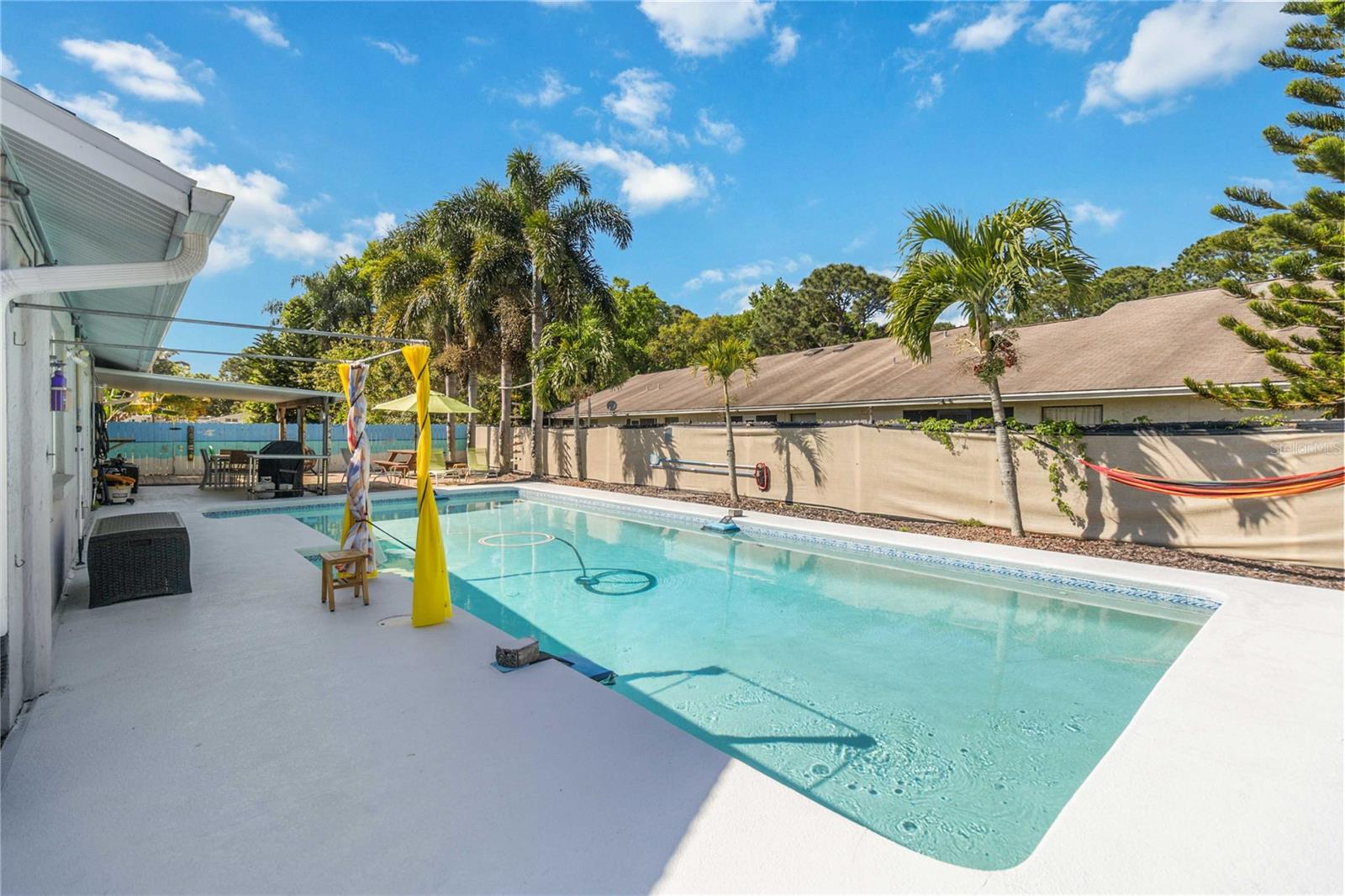 Bem-vindo à sua casa de 4 quartos e 2 banheiros situada no coração de North Merritt Island, com um terreno espaçoso. Esta residência de plano dividido apresenta tetos abobadados, convidando à entrada de ampla luz natural através dos controles deslizantes classificados como furacões na sala de estar instalada em 2017, juntamente com todas as janelas de impacto também. Entre na área de estar aberta, completa com um conveniente bar molhado. Do lado de fora, você poderá desfrutar do pátio ao ar livre nos fundos com vista para uma grande piscina, perfeita para entretenimento ou relaxamento. Além disso, incluído nesta casa já perfeita, está um gerador Generac para toda a casa. Esta casa também tem uma nova garagem para 2 carros de 2017, grande o suficiente para uma bancada e prateleiras para arrumação extra. Além disso, a fossa séptica da propriedade foi instalada em 2017. Como vocês podem ver muito foi feito nesta casa e ela foi muito bem cuidada, uma verdadeira joia, no bairro perfeito. Mas mesmo com tudo isto, estará incluída uma Garantia Residencial Premium!