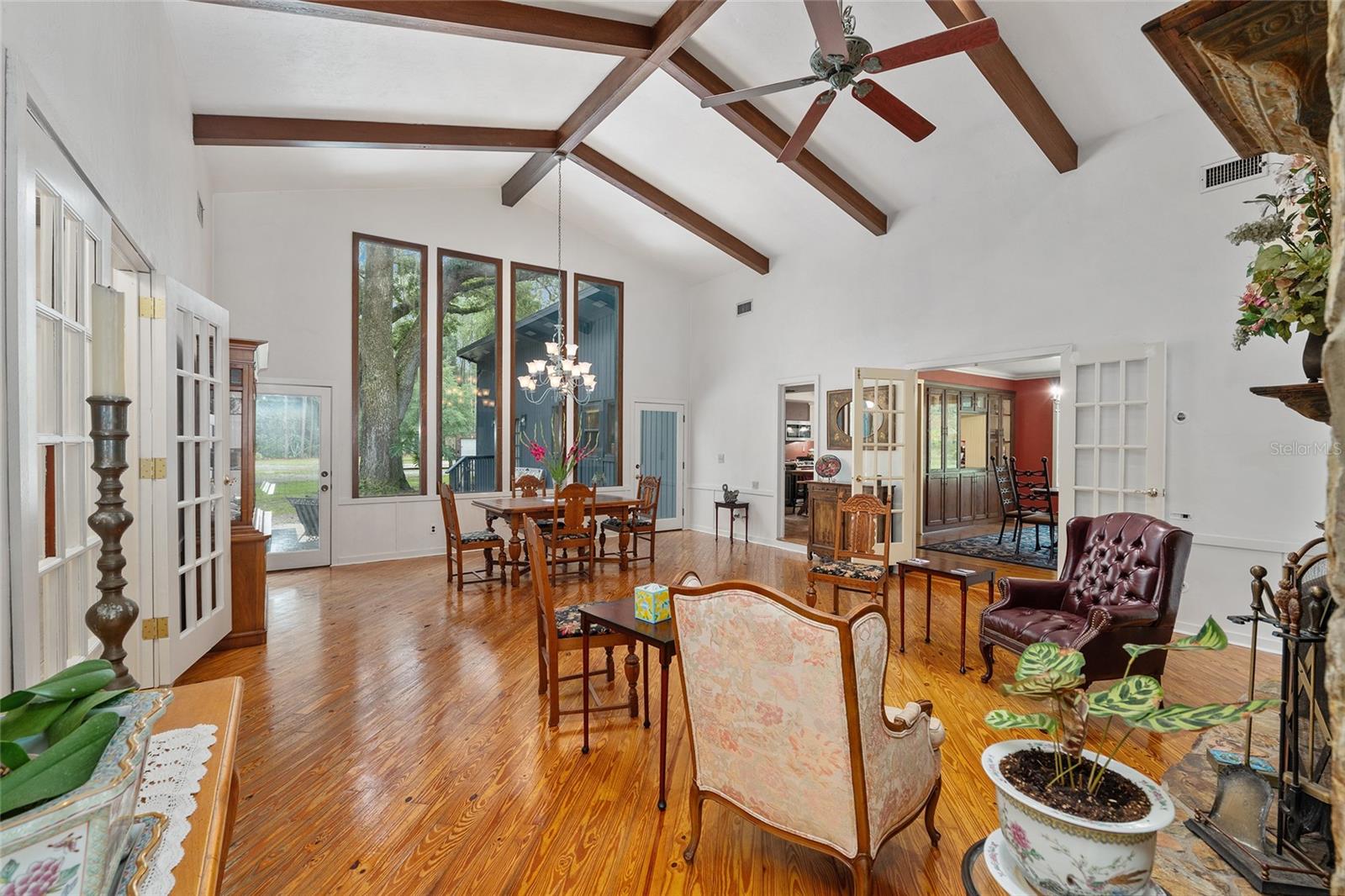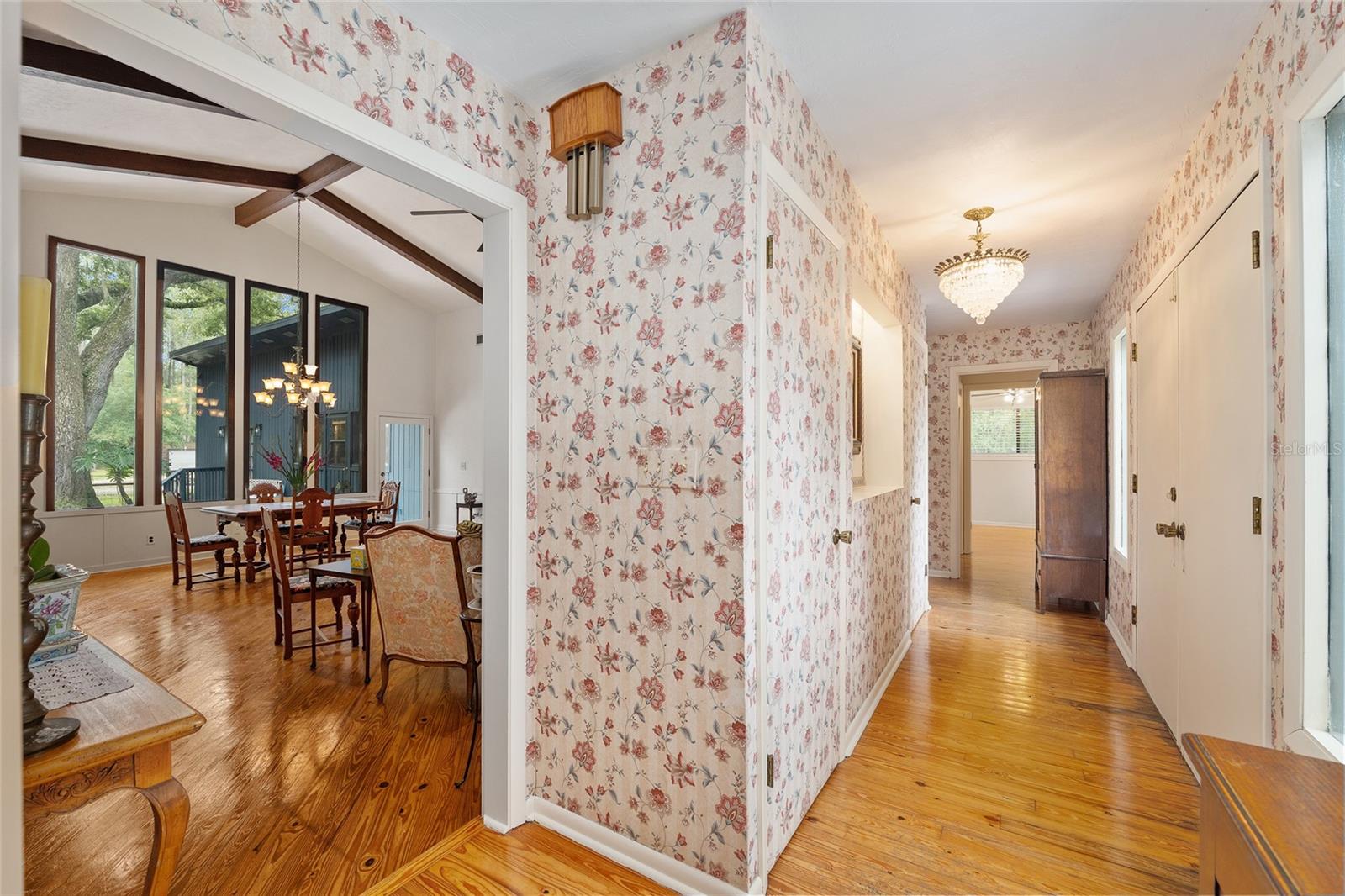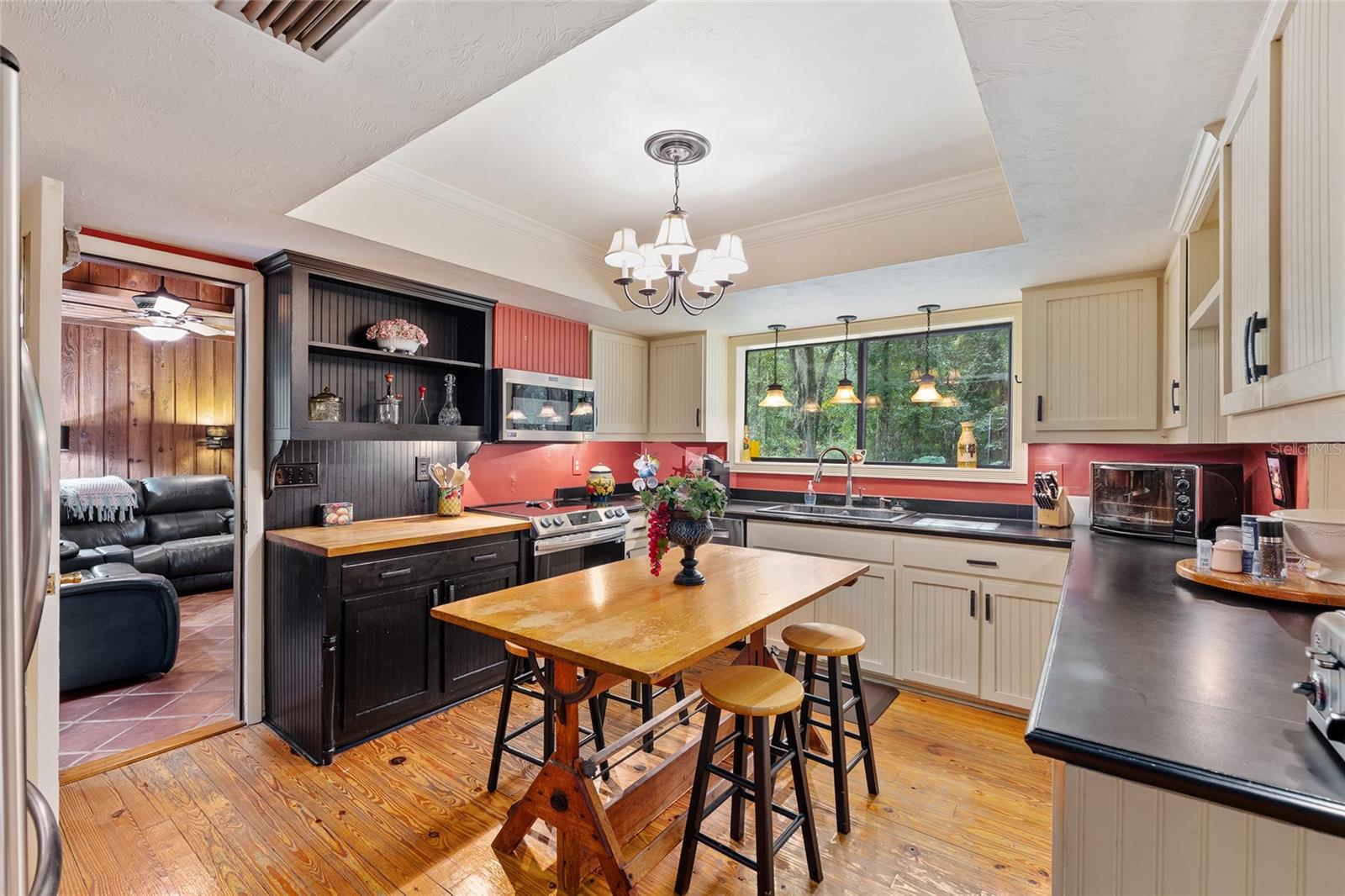 3,3 ± acres privados • 4 quartos • 3 banheiros • 2.524 SF Saia do tranquilo beco sem saída e nesta jóia escondida aninhada em 3,3 acres de carvalhos maduros e beleza natural da Flórida. Esta casa combina o calor rústico com a possibilidade moderna. Quando você chega, o quintal profundo e o dossel de árvore exuberante dão uma sensação de retiro. Uma porta da frente vermelha brilhante atrai você, ladeada pelo tapume e paisagismo de bom gosto que sugere o personagem dentro. O coração da casa se abre de maneira dramática. Os tetos abobadados flutuam acima da grande sala, ancorados por uma lareira com rosto de pedra e uma parede de janelas que enquadram sua vista da floresta. Pisos ricos em madeira fluem sob os pés, conectando zonas de vida, jantar e coleta com uma facilidade orgânica. A cozinha é aconchegante, mas eficiente, com vista para as janelas, um bom espaço no balcão e a sensação de uma casa que deve ser vivida (não apenas encenada). Nas proximidades, uma janela de repasse ou porção integrada com prateleiras oferece essa flexibilidade de espaço-perfeita para um fluxo diário de entretenimento ou simples. Quatro quartos bem proporcionados, juntamente com três banheiros completos, incluem uma suíte distinta de sogro com sua própria entrada privada. Isso torna essa propriedade ideal para a vida multi-general, a privacidade do hóspede ou mesmo um segmento de aluguel. Duas entradas separadas reforçam a flexibilidade. De volta, um baralho de grandes dimensões convida você a permanecer-café de manhã, churrasqueira à noite, vibração silenciosa. A propriedade também inclui conexões RV. O telhado foi substituído em junho de 2023, que dá tranquilidade nos próximos anos. Os serviços públicos estão bem e sépticos, e não há HOA para limitar sua visão.