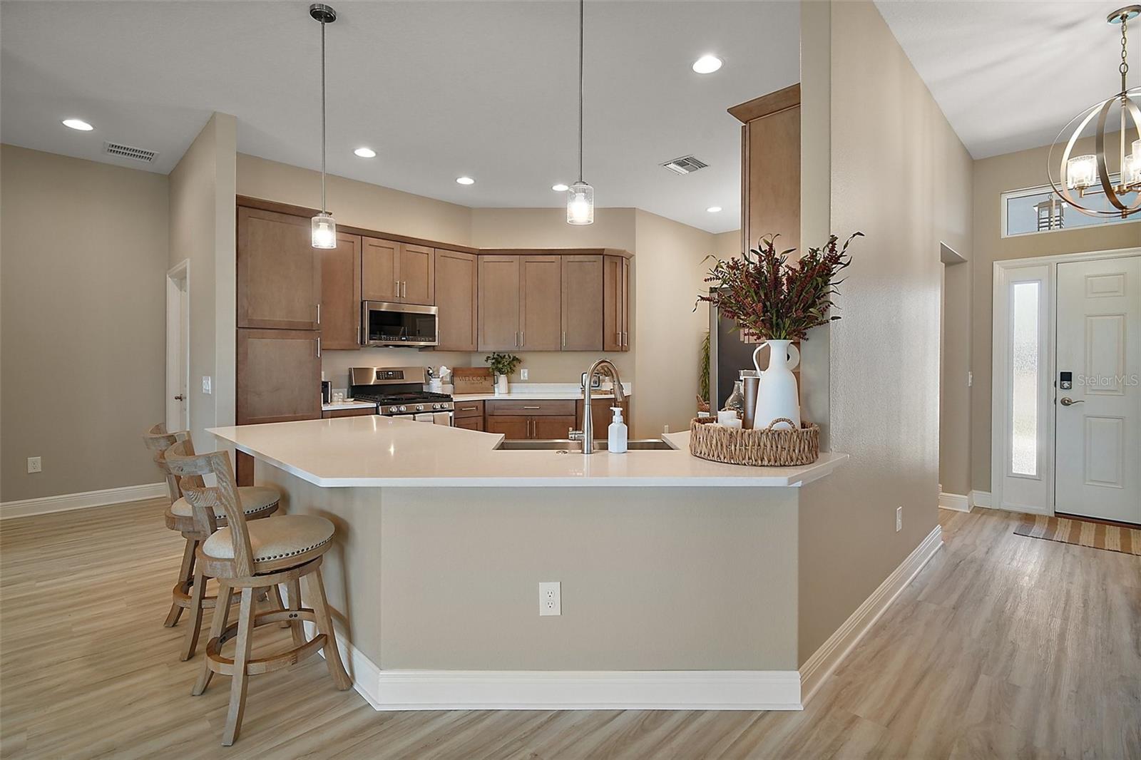 Esta deslumbrante garagem personalizada de 3 quartos, 2 banheiros, 2 banheiros e 2 salas, além de carrinho de golfe no coração de Middleton, é uma imperfeita ver! Construído em 2023, este bloco com a propriedade Stucco apresenta o altamente desejável na planta do piso da cozinha com o design G atualizado (mais de US $ 11.000). Esta casa apresenta armários atualizados, iluminação externa e interior atualizada, piso de tábua de vinil de luxo atualizado, bancadas de superfície sólida atualizada, azulejos de banheiro atualizados, cores de tinta interior personalizadas, armários de armários embutidos personalizados, quedas de plantação personalizadas. Por que esperar uma nova construção quando esta casa mal vivida está pronta e esperando por você? Este movimento em casa linda e deslumbrante tem muitas atualizações para mencionar. Localizada no fechamento Middleton by The Villages®, esta comunidade ativa de todas as idades oferece caminhos amigáveis ao carrinho de golfe, conectando você à escola charter, supermercados, campos de golfe e praças da cidade com entretenimento ao vivo gratuito. Os moradores também desfrutam de três piscinas comunitárias, caminhos para pedestres, dois parques de cães, três playgrounds, quadras de basquete e várias quadras de pickleball e tênis. Middleton é conhecido por seu acesso conveniente a compras, restaurantes e entretenimento. Com fácil acesso às principais rodovias, o deslocamento é simples e ainda permite que você aproveite a tranquilidade da vida suburbana. Agende sua exibição particular hoje!