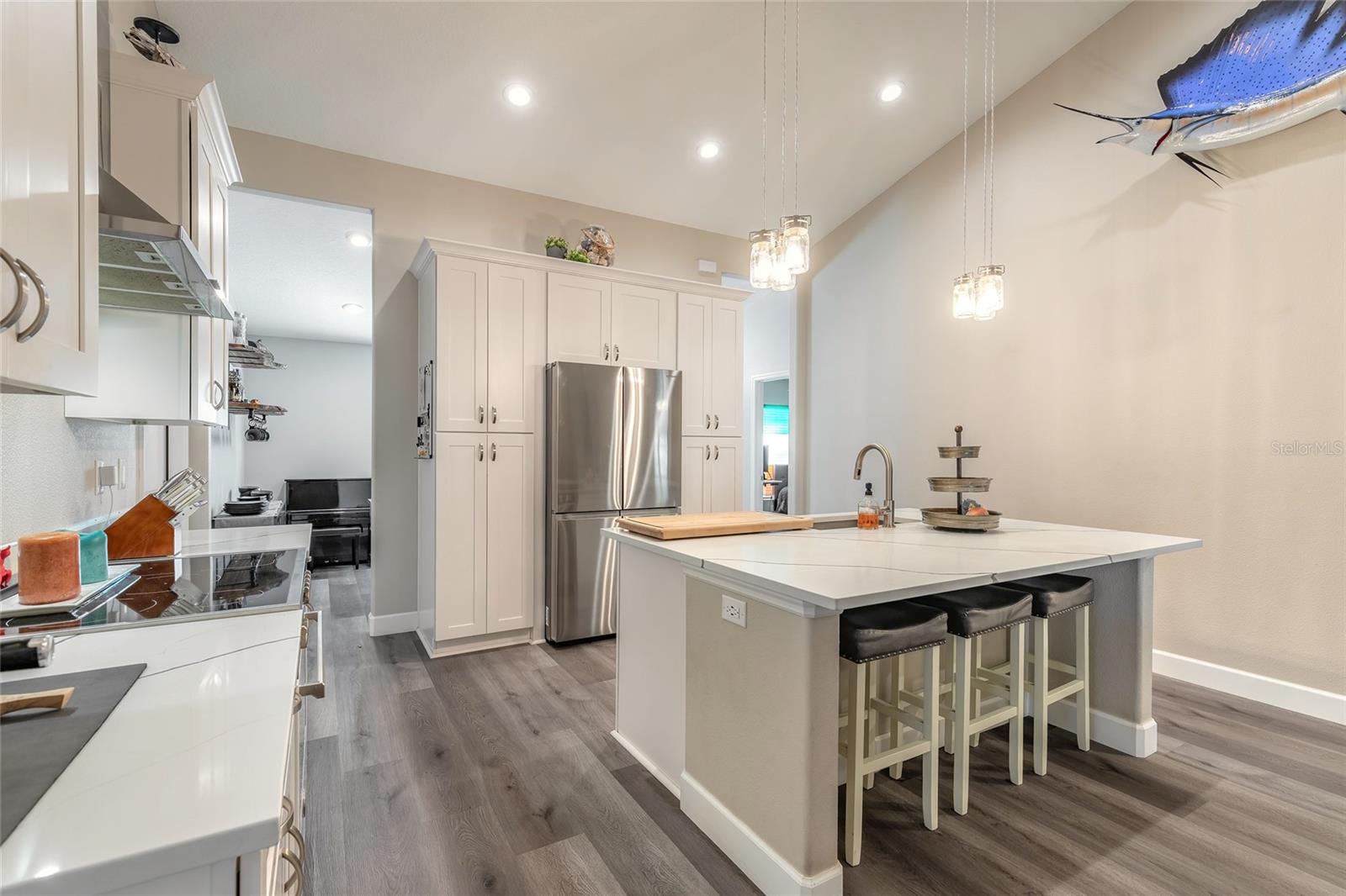 Construída em 2021 e escondida em uma estrada pavimentada em Indian River Park, esta propriedade de 4 quartos e 2 banheiros oferece a combinação difícil de encontrar que os compradores desejam: construção moderna, terreno utilizável e espaço de garagem sério. Situado em pouco menos de um acre e cercado por pinheiros maduros, você desfrutará de privacidade sem sacrificar a conveniência. Por dentro, a casa é iluminada, aberta e pronta para morar. A cozinha foi projetada para impressionar com armários shaker brancos de 36", bancadas de quartzo, balcão de café da manhã, fogão elétrico Bertazzoni com exaustor, geladeira de aço inoxidável de 4 portas e luxuoso piso de pranchas de vinil em todas as áreas de estar principais. As portas francesas levam à varanda traseira treliçada, proporcionando um fluxo interno e externo fácil para noites relaxantes ou encontros de fim de semana. Uma planta dividida oferece privacidade, com uma espaçosa suíte principal com pias duplas, um box amplo de azulejos com gabinete de vidro, um grande closet e banheiro privativo. Os quartos de hóspedes são bem dimensionados, e o banheiro secundário oferece uma combinação de banheira/chuveiro. Você também encontrará uma área de jantar formal, além de uma lavanderia interna com pia e armazenamento extra: a oficina fechada independente de 35' x 20' com uma garagem anexa de 25' x 10' e seu próprio painel elétrico de 60 A. ou brinquedos, há espaço para tudo isso, com espaço sobrando para expandir, jardinar ou estacionar mais equipamentos. Construção em blocos de concreto, tetos abobadados, calhas de chuva e um aquecedor de água sem tanque agregam ainda mais valor. Todas as informações devem ser precisas, mas não são cem por cento garantidas.