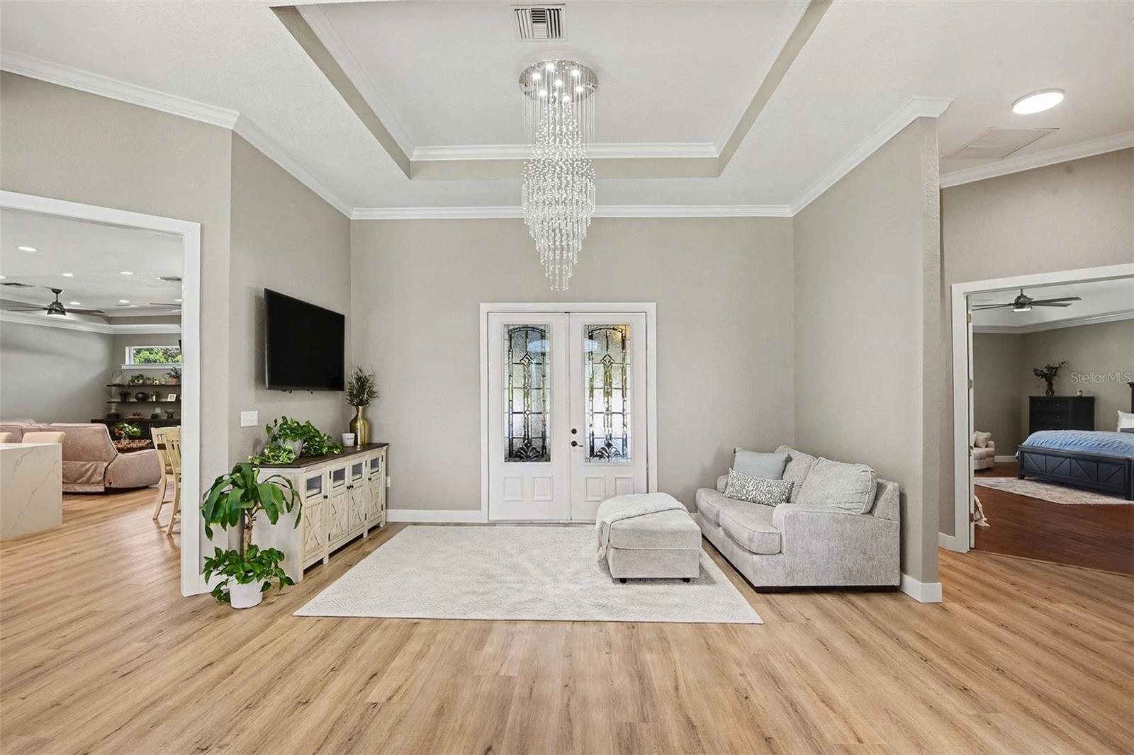 IMPRESSIONANTE PROPRIEDADE DE 5.500 PÉS QUADRADOS EM COMUNIDADE FECHADA DESEJADA! 8 QUARTOS - 6 BANHEIROS - CAPACIDADE DE GARAGEM PARA 6 CARROS - APARTAMENTO DE HÓSPEDES - PISCINA PRIVADA E SPA!! Experimente o auge da vida luxuosa nesta propriedade de tirar o fôlego e totalmente renovada de mais de 5.500 pés quadrados. Situado em um condomínio fechado de alto padrão, conhecido por sua privacidade e segurança. Esta residência reinventada apresenta acabamentos de design impecáveis e comodidades de elite em seus amplos terrenos. Idealmente situada para privacidade e acesso, esta propriedade excepcional fica a apenas 30 minutos de carro de atrações mundialmente famosas, como Disney World Resorts, as icônicas Daytona Beach e Cocoa Beach e o famoso Centro Espacial Kennedy... e muito mais, colocando o melhor da Flórida vivendo bem à sua porta. Esta propriedade é uma obra-prima de luxo funcional, com uma academia doméstica profissional – um santuário de fitness dedicado para manter uma rotina de bem-estar sem sair de casa, uma enorme sala de jogos – um centro de entretenimento perfeito para bilhar, mídia ou um lounge sofisticado. Os entusiastas de automóveis irão deliciar-se com a capacidade para 6 carros, que inclui uma garagem anexa para 3 carros, além de uma garagem individual adicional para 3 carros, proporcionando armazenamento massivo para coleções, oficinas ou veículos recreativos. A residência em si apresenta tetos altos de 10 e 12 pés que melhoram a sensação de grande abertura na entrada. A planta baixa foi cuidadosamente projetada para privacidade e fluidez, com 6 quartos espaçosos no andar de baixo e 2 grandes no andar de cima. No coração da casa está a cozinha dos sonhos de um chef, destacada por: bancadas de quartzo e uma ampla ilha gourmet de 11 pés, armários shaker superiores e inferiores com frente de vidro com um impressionante backsplash de azulejos em cestaria, fornos duplos embutidos, refrigerador de vinho e iluminação premium. A ampla área de estar é ancorada por uma lareira a lenha emoldurada por shiplap, combinando perfeitamente calor e elegância. A Suíte Primária é um verdadeiro empecilho, com teto dramático e portas francesas que inundam o espaço com luz natural, com porta dupla para a área da piscina. O banheiro privativo inspirado em spa apresenta uma banheira de imersão independente, um box amplo de azulejos geométricos 3D de cair o queixo com chuveiros quádruplos e espelhos iluminados por LED. A casa também inclui um apartamento de hóspedes privado totalmente atualizado - ideal para residência multigeracional ou potencial de renda. Saia para o seu próprio retiro privado em estilo resort, completo com uma grande piscina cintilante e spa - perfeito para entretenimento com total privacidade. Para sua tranquilidade, o telhado foi substituído em 2022 e todas as unidades HVAC foram substituídas em 2023!