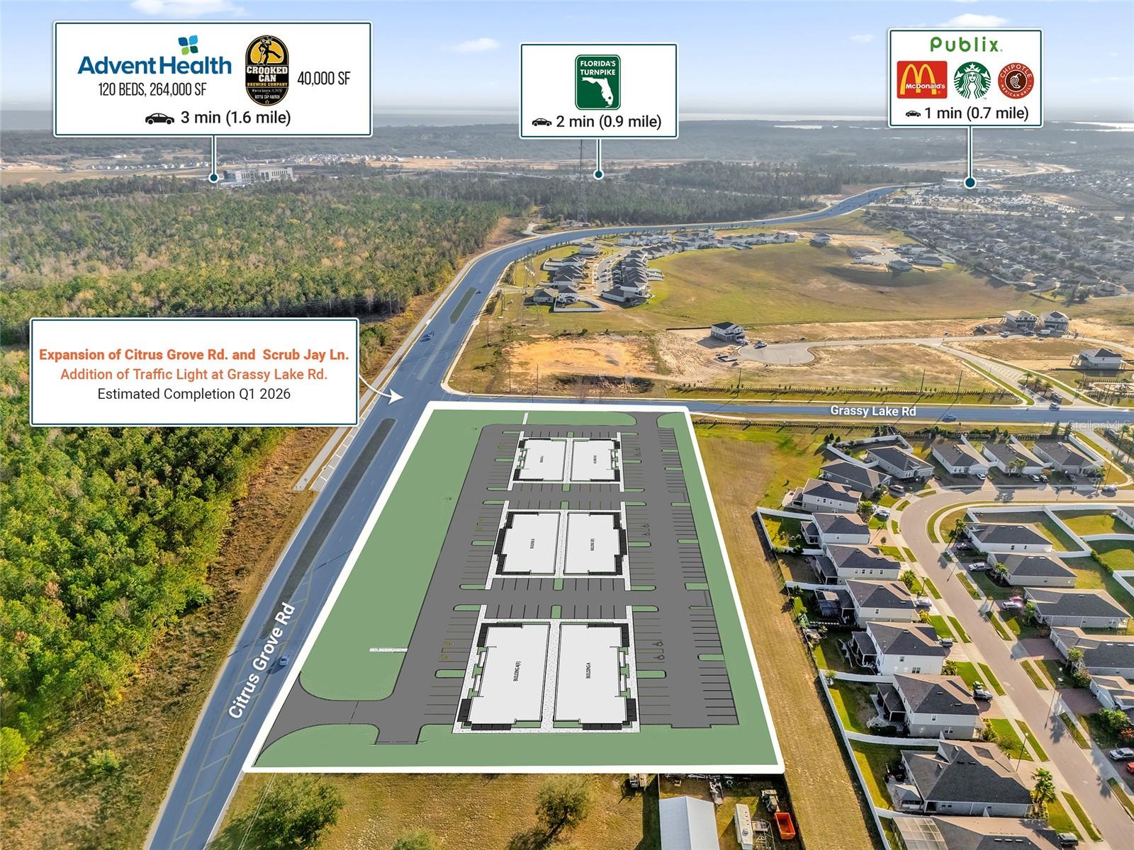 Pré-Construção. A ser construído. Para arrendamento - Prime New Construction Medical & Professional Office Space em Minneola, FL Localização de alto crescimento | Opções de espaço flexíveis | Acessibilidade excepcional Faça parte do futuro em Minneola, um dos mercados de mais rápido crescimento da Flórida no centro! Este novo desenvolvimento comercial oferece escritórios médicos premium, varejo e escritórios profissionais com alta visibilidade, conveniência inigualável e posicionamento principal no coração da expansão residencial e comercial em expansão de Minneola. Destaques da propriedade: Localização estratégica e acessibilidade incomparável - A menos de 1,6 km da rodovia da Flórida através da nova saída de Hancock - Direcionamento de três minutos para o novo hospital do AdventHealth e Crooked Can Brewery, a próxima instalação de 40.000 SF da SF - Localizado na interseção sinalizada da Grassy Lake Rd. & Citrus Grove Rd. (Instalação do semáforo chegando no próximo ano) - Cercado por novos desenvolvimentos residenciais, alimentando a forte demanda por serviços médicos, de varejo e profissional Acesso rápido às principais estradas - 1 min para a rodovia da Flórida - 8 min para Hwy 50 - 14 min para FL-408 - 22 min para a I-4 e o centro de Orlando - 30 min para o Aeroporto Internacional de Orlando - 40 min para as aldeias NOVO ESCRITÓRIO DA CLASSE A CLASSE AND - Seis edifícios independentes, cada um de até 5.140 sf - Os tamanhos das suítes variam de 1.207 SF a 5.140 SF, permitindo layouts personalizáveis - Zoneamento comercial, permitindo uma ampla variedade de usos médicos, de varejo e escritório - aspersores de fogo em todos os edifícios para maior segurança e conformidade - Entrega de concha no primeiro trimestre de 2026, proporcionando tempo suficiente para construções de inquilinos - Subsídios de melhoria do inquilino disponíveis, permitindo que a personalização atenda às necessidades de negócios Visibilidade superior e sinalização do inquilino - sinalização de fachada e monumento disponível para exposição à marca principal - Localização de alto tráfego em um cruzamento em um crescente corredor médico e de varejo Estacionamento amplo e conveniência do inquilino - Taxa de estacionamento de 5,9/1.000 sf, garantindo amplo estacionamento para pacientes, funcionários e clientes Crescimento explosivo do mercado e demografia forte - População definida para dobrar nos próximos 5 anos - renda familiar média: US $ 100.000+ - Idade média: 37, uma demografia ideal para serviços médicos e profissionais - Tamanho médio da família: 3,09, apoiando a forte demanda por serviços de saúde e serviços comerciais locais Por que escolher este local? Com um rápido crescimento residencial e comercial, excelente conectividade e uma forte demanda por espaço médico e profissional, esse desenvolvimento é uma rara oportunidade de estabelecer ou expandir seus negócios em um mercado de alto tráfego e alta renda.