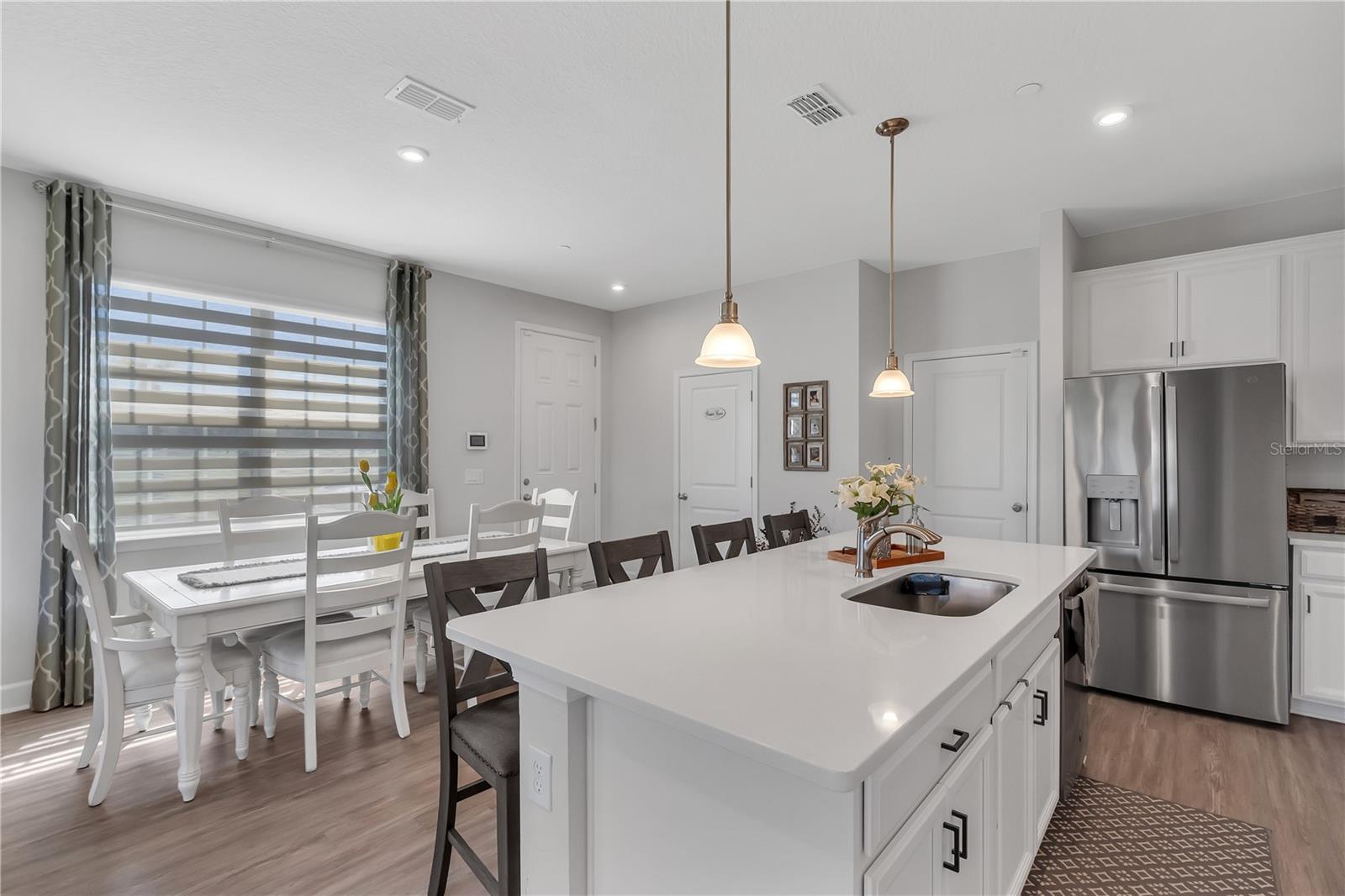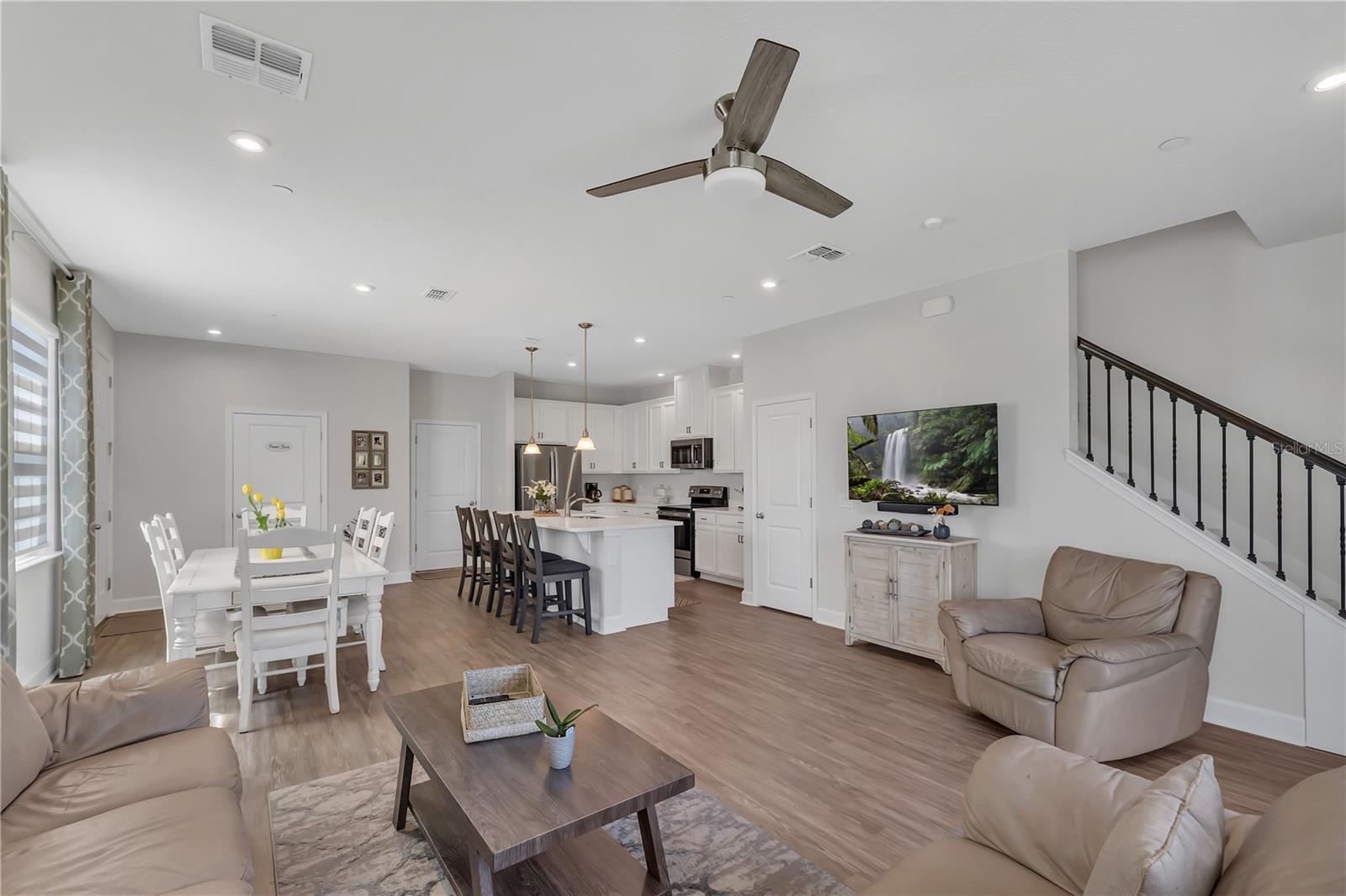 Bem-vindo ao Holden Ridge Townhomes, o principal condomínio residencial de Minneola que oferece conveniência incomparável e estilo de vida moderno. Situados em uma localização ideal perto da saída 278 da rodovia, os residentes desfrutam de fácil acesso a trilhas a pé que conectam à West Orange Trail, escolas de primeira linha, mercearias, lojas, restaurantes e muito mais. Esta moradia imaculada, construída em 2022, possui uma planta moderna de conceito aberto com tetos de 9'4" e controles deslizantes de 8' que levam ao pátio, criando uma experiência de vida interna e externa perfeita. Com áreas de estar de dimensões generosas e quartos projetados para privacidade, além de amplo espaço de armazenamento, esta casa é perfeita tanto para entretenimento quanto para a vida cotidiana, SEM vizinhos traseiros. Como unidade final, esta casa possui três quartos, dois banheiros completos, um lavabo e uma garagem frontal para 2 carros com calçada de tijolos, proporcionando espaço para dois carros adicionais. O coração da casa é a cozinha deslumbrante, equipada com eletrodomésticos de aço inoxidável, armários de 42", puxadores luxuosos, luminárias suspensas, despensa e um luxuoso tampo de ilha de quartzo de grandes dimensões, perfeito para preparar refeições e reunir-se com seus entes queridos. A suíte do proprietário no segundo andar é um verdadeiro refúgio, com closet espaçoso e banheiro privativo. Dois grandes quartos secundários e um armário de lavanderia convenientemente localizado com lavadora e secadora incluídas completam o segundo andar. Recursos de casa inteligente, como termostato wi-fi e abridor de porta de garagem MYQ, permitem que você controle remotamente a temperatura da sua casa e o acesso à garagem, proporcionando maior comodidade e segurança. Além disso, esta unidade está estrategicamente posicionada perto do estacionamento de visitantes para facilitar o acesso dos hóspedes. Localizada a uma curta distância a pé da Lake Minneola High School e a uma curta distância de carro da Grassy Lake Elementary School e da Pinecrest Lakes Academy, esta casa oferece conveniência incomparável para famílias com crianças em idade escolar. As comodidades próximas incluem o novo Hills Crossing Plaza com Publix, Starbucks, Chipotle, UPS, McDonald's, Jersey Mike's Subs e muito mais. Além disso, os residentes estão a poucos minutos do Advent Health of Minneola, do South Lake Hospital e do centro de Clermont, com 204.000 pés quadrados, oferecendo uma infinidade de opções de restaurantes, compras e lazer. Não perca esta oportunidade de possuir um pedaço do que há de melhor em Minneola. Agende sua exibição hoje e experimente o epítome da vida urbana moderna. Não há arrependimentos garantidos!