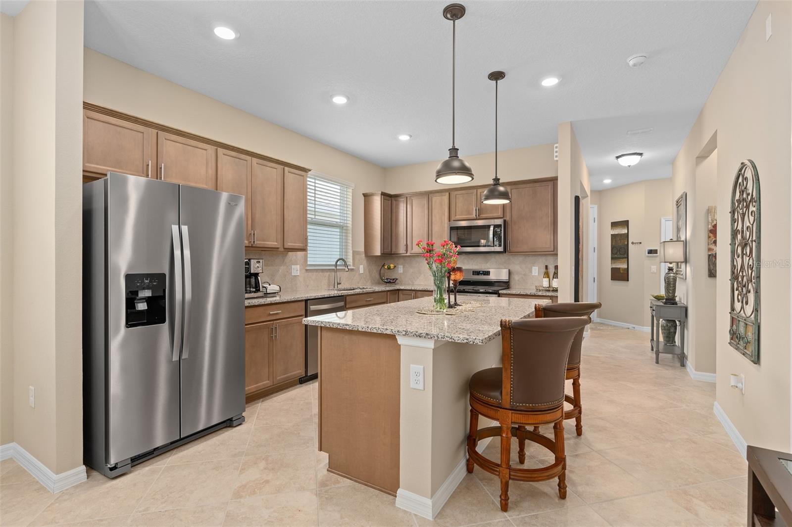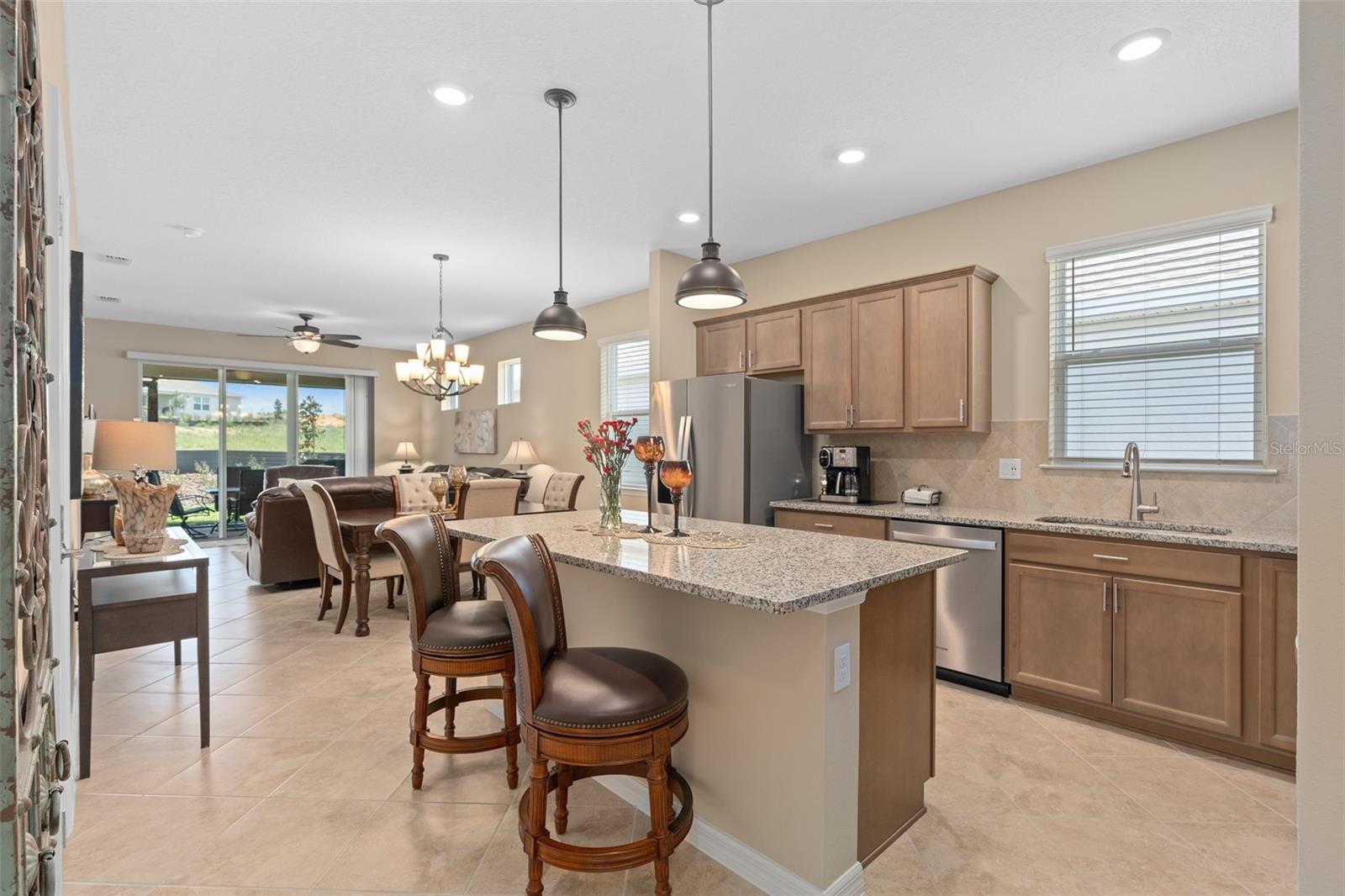 NÃO ESPERE PARA CONSTRUIR!! Bem-vindo a este impressionante modelo CONTOUR com detalhes em pedra localizado em Del Webb Minneola, um condomínio fechado com mais de 55 anos. Del Webb Minneola está localizado em uma das altitudes mais altas da Flórida e as vistas são deslumbrantes. Esta casa foi CONCLUÍDA em MARÇO de 2024 e está bem equipada com belos acabamentos. Você pode relaxar no Extended Under Roof Screened Lanai e como um bônus extra, o Lanai está equipado para uma cozinha ao ar livre. Os vizinhos traseiros estão distantes e haverá algum espaço verde agradável para desfrutar. O quintal traseiro é CERCADO com portões em cada lado da casa para maior comodidade. Ao entrar, seus olhos serão atraídos para o Azulejo Cerâmico colocado na Diagonal e o Vinil Luxo que foi selecionado para os Quartos e Escritório/Arrumos/Escritório. Eles são muito elogiosos um com o outro. A Cozinha oferece Bancada em Granito com Pia Única Inox Undermount para lavagem de panelas grandes, Backsplash em Cerâmica, Armários em Madeira Maciça, Despensa com Sistema de Prateleiras Personalizadas, Ilha com Barra de Café da Manhã e Iluminação Pendente. Um pacote de eletrodomésticos GE em aço inoxidável completa a cozinha. Ao lado da Cozinha fica o Café (Área de Alimentação) com Luminária Personalizada, e depois segue para a Sala Familiar / Área de Reunião que é adornada com luz natural, Ventilador de Teto, Tomada Elétrica de Chão e vista desimpedida para a Lanai coberta com Pavers . Ao entrar na Suíte do Quarto Principal, você será agraciado com um quarto de tamanho generoso, ventilador de teto, piso luxuoso em pranchas de vinil e luz natural. O quarto principal, suíte, oferece pia dupla de altura confortável com balcões de quartzo, muito espaço de armazenamento, closet grande, chuveiro grande com assento embutido, pulverizador manual separado, piso e azulejos de parede atualizados, barra de apoio está instalado para sua conveniência e um armário de água para sua privacidade. A Lavanderia está centralmente localizada perto da Suíte Primária e possui Armários Superiores para armazenamento adicional. O quarto 2 oferece um armário de bom tamanho com prateleiras/suspensões personalizadas e é adjacente ao banheiro 2 que foi atualizado com um box amplo, parede e piso atualizados com uma barra de apoio e uma penteadeira individual de altura confortável com bancada de quartzo. A garagem também possui atualizações que consistem em teclado externo, piso pintado com epóxi, pacote de iluminação, escadas rebatíveis do sótão com treliças de 2 "x 6" e piso de compensado de 3/4 "para suas necessidades de armazenamento. Um sistema de segurança e portas de dados CAT6 também. O pacote de energia também foi selecionado e inclui bloco preenchido com espuma, entrada de ar fresco, calafetagem adicional e persianas de madeira falsa de 2" para micro-ondas e persianas verticais nas janelas operáveis e na porta de vidro deslizante, respectivamente. As ATUALIZAÇÕES adicionais do vendedor APÓS A COMPRA incluem o seguinte: 6 ventiladores de teto remotos com luzes, Lanai blindado com um acessório de babador de mangueira personalizado, quintal traseiro cercado com 2 portões, despensa, quarto 2 closet e o armário de linho tem prateleiras personalizadas/ Sistema Organizador, Luminárias Interiores e Calhas. Perto do SOUTH LAKE HOSPITAL, o Advent Health Hospital está em construção, VA, consultórios médicos, NTC (National Training Center), COMPRAS E JANTAR, quilômetros de trilhas para bicicleta/caminhada e a 15 minutos de carro do centro de Clermont ou Winter Garden para mais diversão . Para sua conveniência de viagem, Del Webb Minneola fica a poucos minutos da Florida Turnpike. HOA inclui 1 giga de Internet, 75 canais de TV, comodidades (a serem construídas), cuidados com gramado/arbustos, fertilização. Dê uma olhada nesta ÓTIMA CASA que oferece um ÓTIMO VALOR.