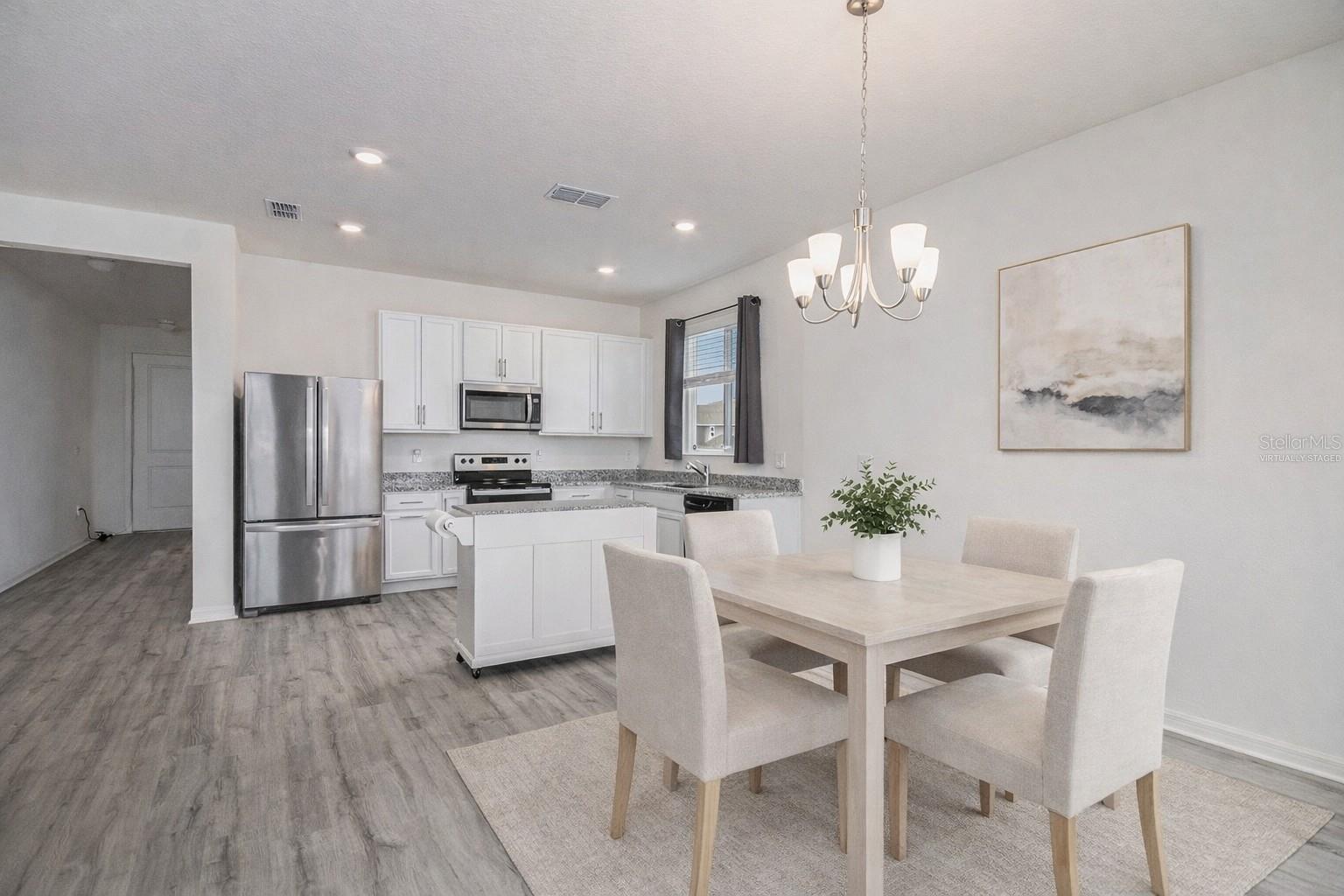 Uma ou mais fotos foram virtualmente encenadas. Venda a descoberto. KB Home construída em 2023 em um terreno extra amplo com vida de conceito aberto e acabamentos modernos em Minneola de rápido crescimento. Localizada em The Reserve at Lake Ridge, esta residência térrea oferece construção com eficiência energética e acesso conveniente ao novo trevo Florida Turnpike. No interior, tetos de 2,7 metros e luz natural abundante realçam a planta dividida de 3 quartos e 2 banheiros. A cozinha aberta possui armários estilo shaker de 42", bancadas de granito, eletrodomésticos de aço inoxidável e fluxo contínuo para a espaçosa sala grande. Dois quartos secundários estão posicionados na frente da casa e compartilham um banheiro completo com penteadeira estendida, enquanto a suíte principal está situada na parte traseira, com closet e banheiro com pia dupla. Uma lavanderia dedicada se conecta à garagem para 2 carros para funcionalidade diária. Situado em aproximadamente 0,21 acres, o quintal oferece espaço para futura vida ao ar livre, jardim ou piscina. Conveniente para Publix, recreação do Lago Apopka, as próximas instalações da AdventHealth e a nova escola K-8.