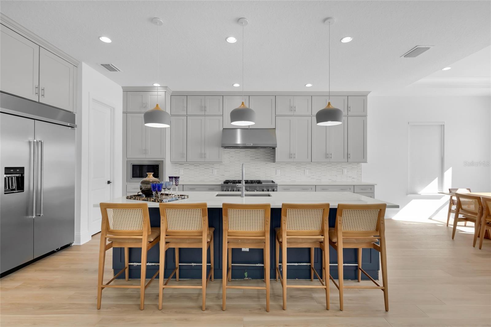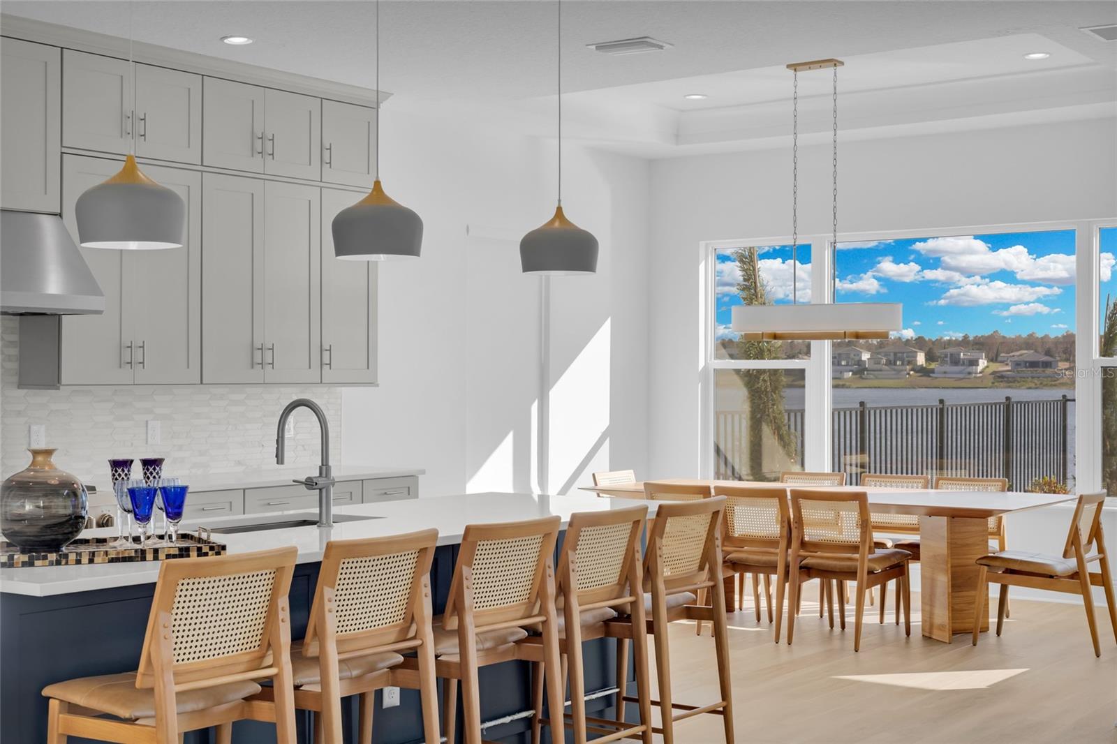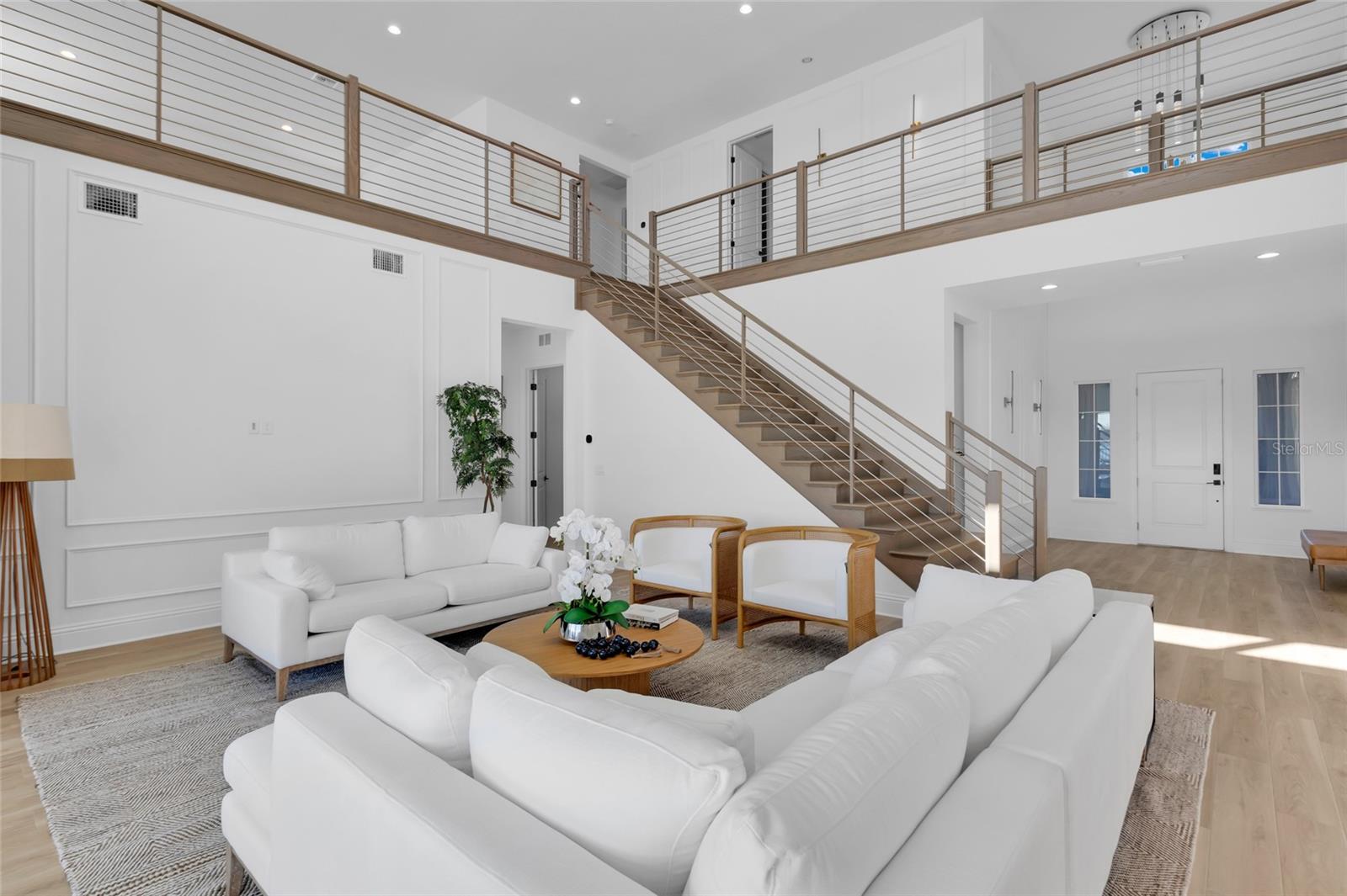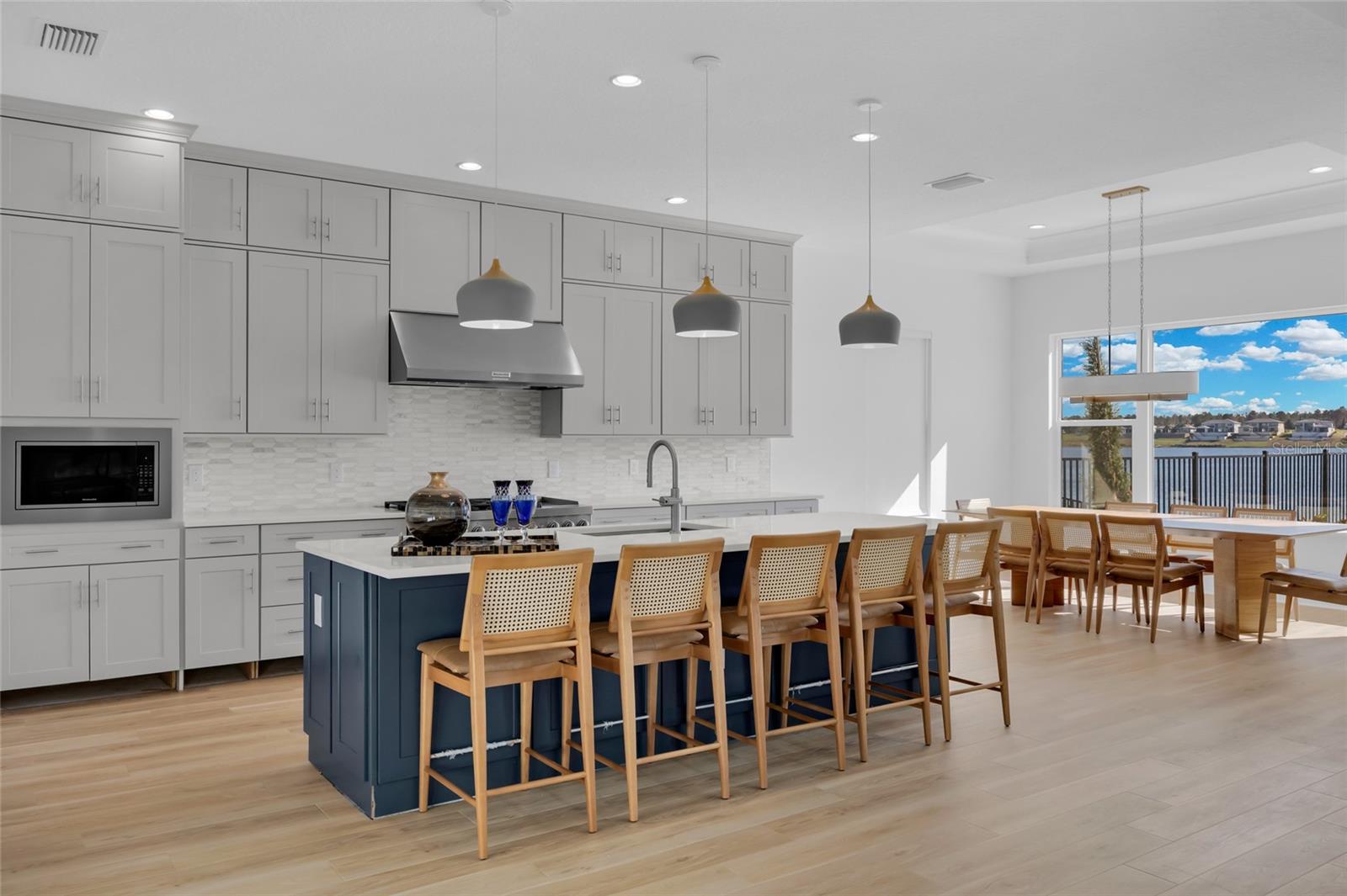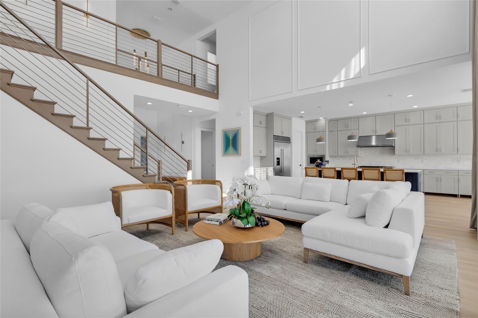 Bem-vindo ao seu luxuoso oásis à beira do lago em Bella Collina Descubra esta residência de dois andares pronta para morar em um terreno espaçoso com vistas deslumbrantes do Lago Siena. Esta casa apresenta atualizações de alta qualidade, incluindo tetos impressionantes de 21 pés na sala de estar para uma sensação aberta e arejada em ambos os andares. O elegante hall de entrada recebe você com um lustre deslumbrante e detalhes de boiserie, dando um tom luxuoso. A área principal de conceito aberto é repleta de luz natural e inclui uma cozinha gourmet equipada com eletrodomésticos KitchenAid premium, fogão a gás de 6 bocas, forno de parede, micro-ondas de convecção, grande ilha com balcão para café da manhã e uma espaçosa despensa. A área de jantar adjacente oferece vistas serenas do lago. A suíte principal do primeiro andar é um retiro tranquilo com uma grande janela panorâmica, banheiro tipo spa e amplo closet. Cada quarto possui cortinas blackout e a sala de estar dispõe de uma elegante cortina do chão ao teto. No piso superior, um loft aberto proporciona uma área de entretenimento, complementada por três quartos adicionais, dois deles com casa de banho privativa. No exterior, um muro de contenção envolve uma bela área de piscina, criando um oásis privado. A propriedade também inclui garagem para 3 carros. Aproveite as comodidades excepcionais do Bella Collina, desde restaurantes sofisticados e um spa até um campo de golfe profissional, tênis, pickleball, uma piscina estilo resort e uma academia com aulas gratuitas. Esta comunidade vibrante oferece eventos e atividades durante todo o ano. Todos os acessórios estão incluídos, enquanto os móveis e obras de arte são negociáveis.