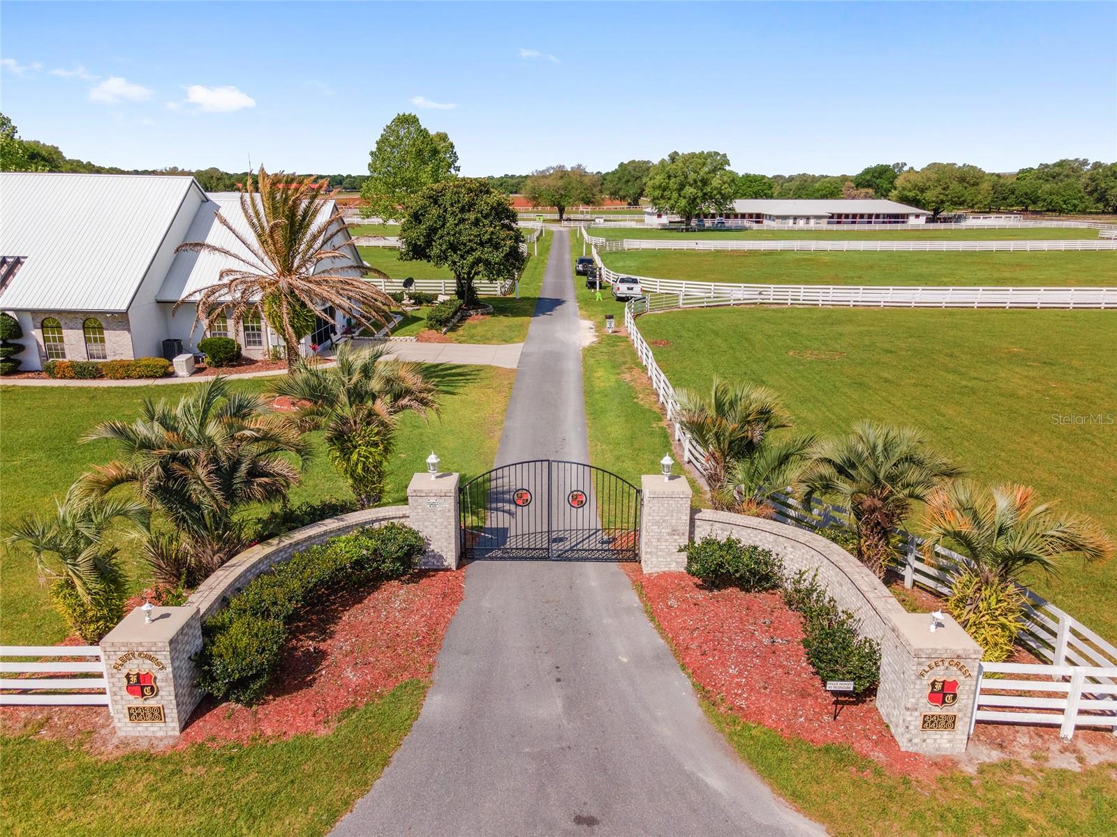 Uma oportunidade notável de possuir esta fantástica fazenda de 41 acres localizada no portão de uma pista de corrida comunitária irrigada de 5/8 milhas na comunidade equestre estabelecida do Complexo de Treinamento de Ponto de Partida. Inclui direitos escriturados para a pista de corrida com portão de partida, estande de observação privado e trilhas privadas com escritura. Forneça o que há de melhor para condicionamento e reabilitação de cavalos com uma esteira Aqua Equine de água gelada dentro de um celeiro de 3 baias. Além disso, existem dois Eurocisers e duas canetas redondas. Esta propriedade privada é cercada e cruzada com linhas de água para todos os piquetes. Há muito espaço interno e externo para seus cavalos com um celeiro com 42 baias, um celeiro com 36 baias, um celeiro com 8 baias, um celeiro com 3 baias e 17 piquetes de 1 acre. 2 Residências: A casa - com ampla vista para a fazenda - possui 5 quartos, 5 banheiros e piscina. Há também um espaçoso apartamento celeiro com 3 quartos e 2 banheiros. Localizado a menos de 24 km do Centro Equestre Mundial e a pouco menos de 10 km do HITS! Conveniente para estradas principais, restaurantes, lojas e todas as comodidades exclusivas que Ocala tem a oferecer.