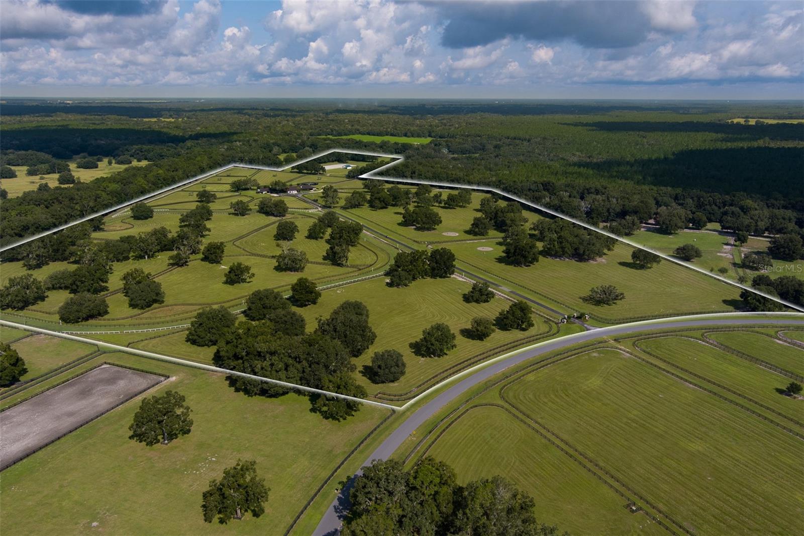Situada em 92,39 acres, a apenas 10 minutos do HITS e a 25 minutos do Centro Equestre Mundial, no desenvolvimento do Ponto de Partida de Morriston FL, esta propriedade lindamente mantida é feita sob medida para cavaleiros dedicados. Uma longa entrada pavimentada leva através de uma propriedade totalmente cercada por carvalhos maduros, criando um ambiente tranquilo. A propriedade oferece 18 piquetes e uma instalação equestre que inclui 28 baias, pista de exercícios com bermudas de primeira linha, baias, salas de alimentação e arreios, além de um apartamento com cozinha para maior comodidade. Existe ainda um picadeiro de 135x330 adequado para qualquer disciplina, ligações para autocaravanas e um euroizer, tornando o espaço altamente funcional para treino, embarque ou outras atividades equestres. Esta propriedade está totalmente equipada para apoiar operações equestres profissionais num ambiente tranquilo e paisagístico.