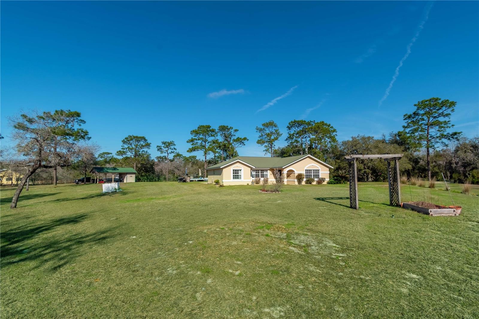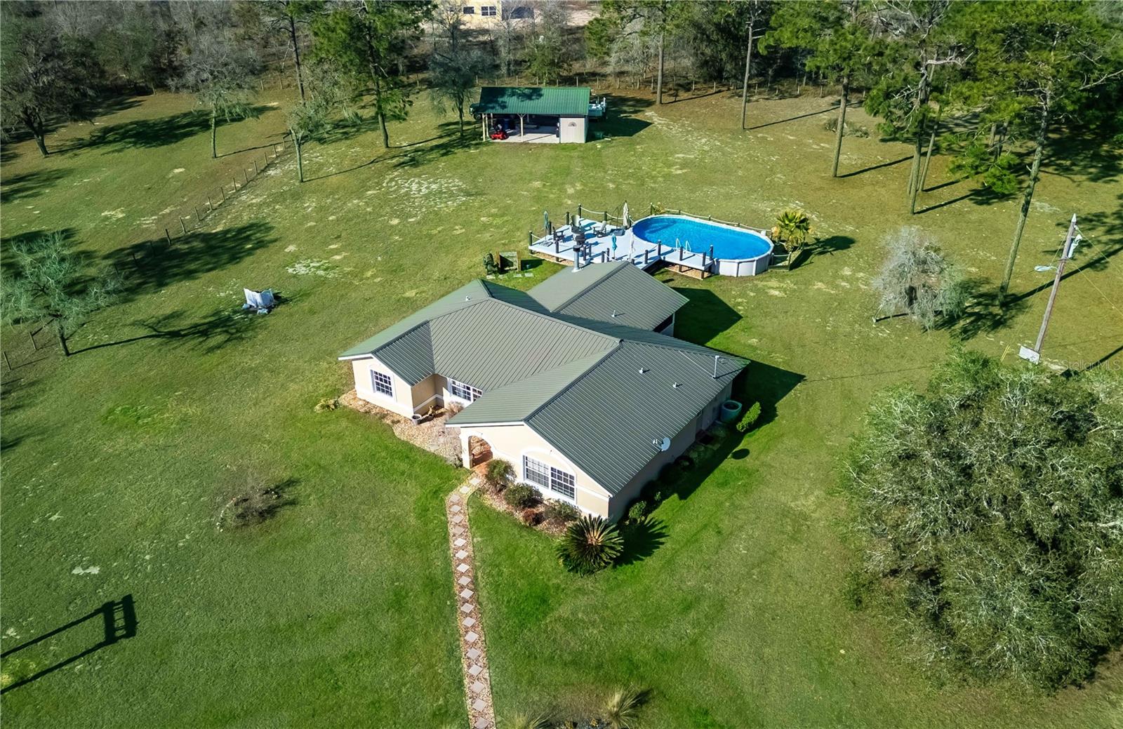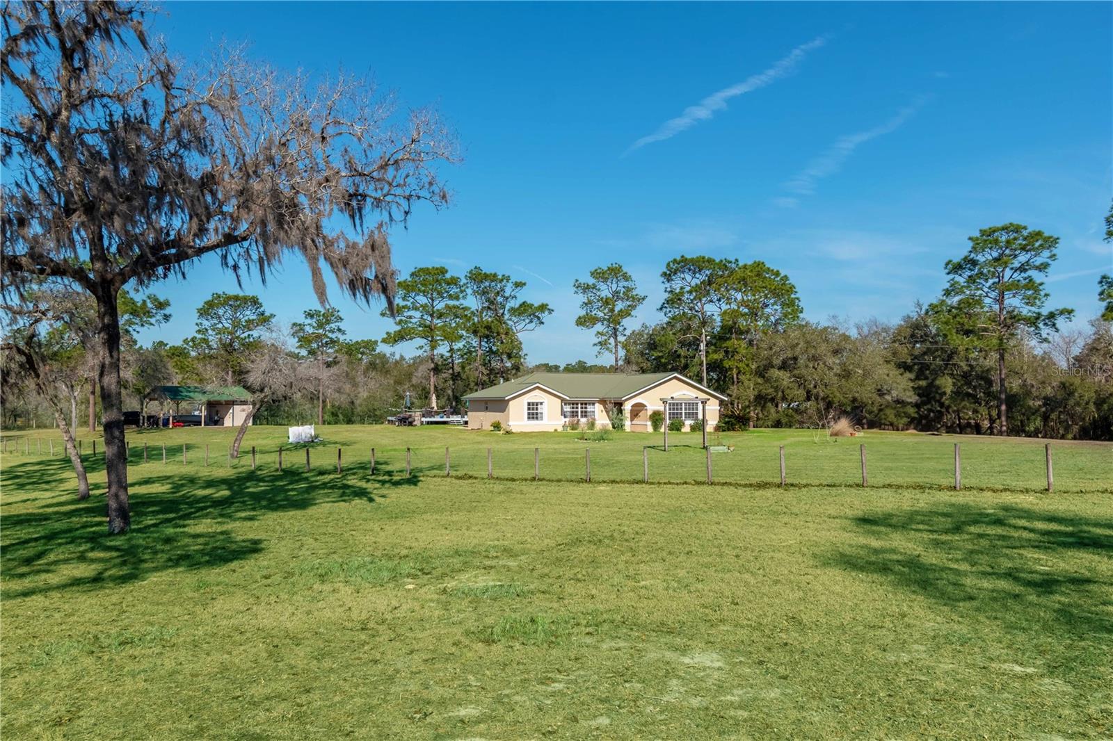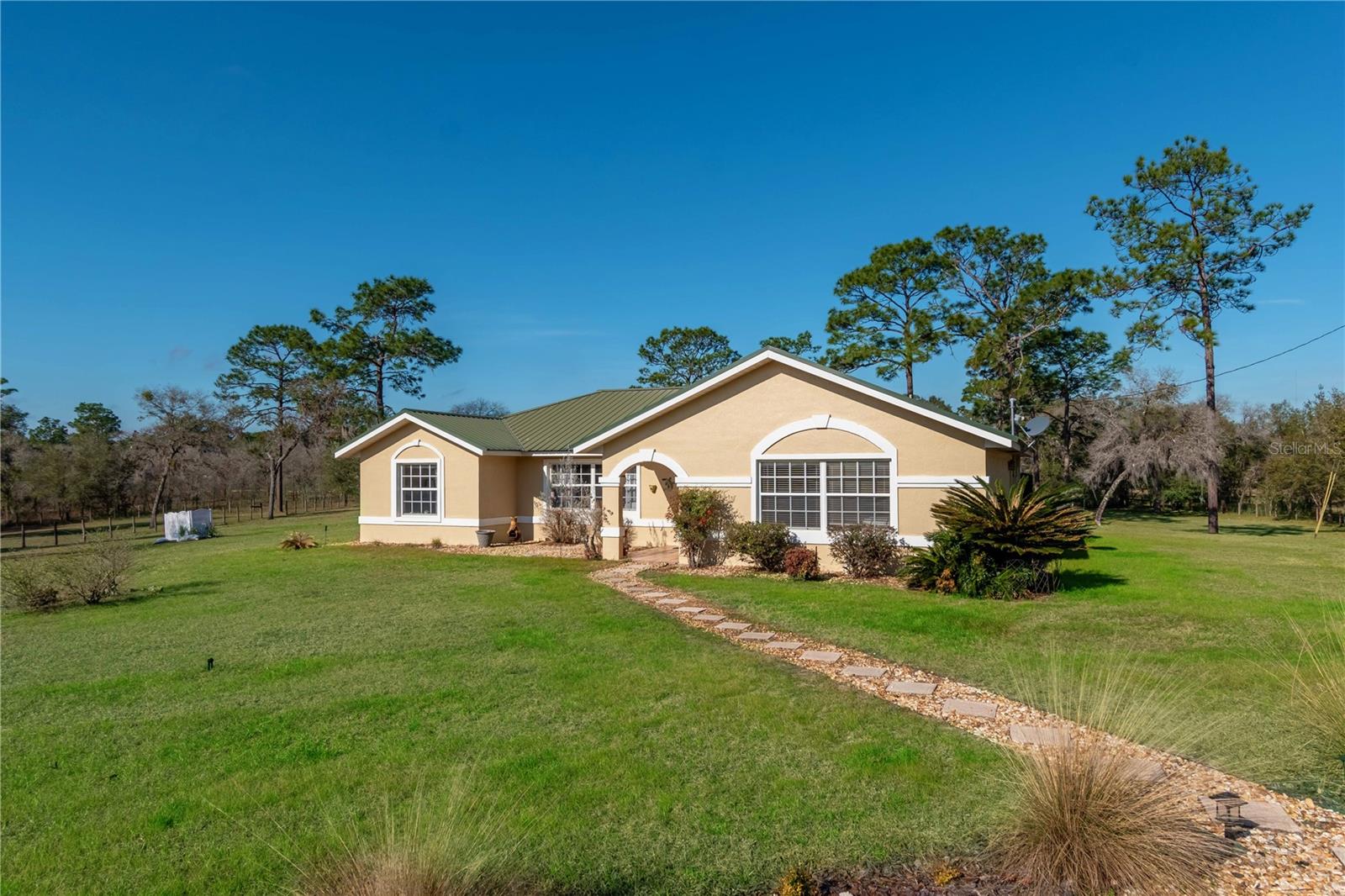 Aninhado no tranquilo Bairro da Fox Grove Farms, esta encantadora casa de 3 quartos e 2 banheiros oferece o equilíbrio perfeito de privacidade e charme rural-tudo a uma curta distância de carro de Ocala, Gainesville e Dunnellon! Situado em um lote de canto com 5,3 acres de terra cercada e fechada, residencial agrícola/rural, esta propriedade é adequada para quem procura um retiro pacífico com o potencial de uma mini fazenda de cavalos. Oferecendo pouco mais de 1.800 pés quadrados de espaço, o interior da casa apresenta pisos de vinil de luxo ao longo do que complementa os tetos altos da casa e a abundante luz natural. A cozinha grande está equipada com muito armazenamento de gabinetes, utensílios de aço inoxidável e um espacial canto de café da manhã, todos localizados adjacentes à área de jantar formal para facilitar o entretenimento. Cada quarto é quente e convidativo, embora a suíte primária seja uma jóia real que inclua um grande armário com um sistema de prateleiras e um banheiro privativo com suíte com pias de navios duplos e um chuveiro de vidro. Na parte de trás da casa, há uma espaçosa sala de família que exibe tetos altos de madeira, grandes janelas para vistas deslumbrantes da propriedade circundante e uma aconchegante lareira a gás. Do lado de fora, o quintal fornece um oásis tranquilo com uma piscina de solo brilhante e um deck de piscina elevado com muito espaço para assentos. Estabelecido na propriedade, há um celeiro com uma área de armazenamento/oficina - uma opção fantástica para quem considera a opção de converter totalmente essa propriedade em uma fazenda de cavalos em funcionamento. A Fox Grove Farms é um bairro tranquilo e equestre, perfeito para andar de propriedade ou fora da propriedade. Com a floresta do estado de Goethe a poucos minutos para andar a cavalo, caminhadas e observação de animais selvagens, além do Rainbow Springs State Park, nas proximidades, para caiaque e natação, os entusiastas do ar livre encontrarão inúmeras oportunidades de aventura. Se você está procurando um pequeno retiro no país com comodidades modernas e acesso ao ar livre incrível, esta propriedade é uma verdadeira obrigação!