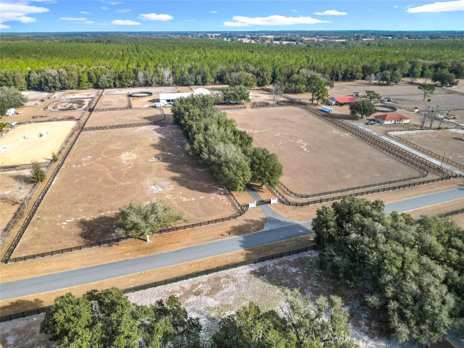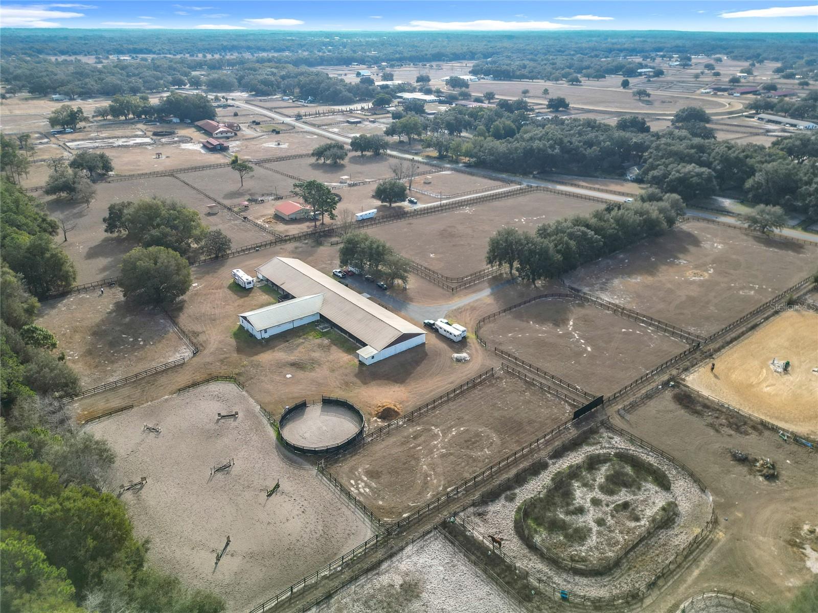 Situada em 10 acres no coração da renomada região dos cavalos da Flórida Central, esta fazenda de espetáculos pronta para uso oferece um equilíbrio convidativo entre elegância equestre e design proposital. Localizada dentro do vibrante Starting Point Complex - lar de programas estabelecidos de caçadores, saltadores, adestramento, cavalos de corrida e passeios de lazer - a propriedade é adequada para uma ampla variedade de disciplinas equestres. Totalmente cercada, fechada e recentemente renovada, a fazenda causa uma primeira impressão memorável com um pitoresco caminho ladeado de carvalhos que leva às principais melhorias. A peça central da propriedade é um celeiro de blocos de concreto com 40 vagas, cuidadosamente projetado em três alas distintas para maximizar o conforto, a eficiência e a flexibilidade. A Ala Oeste possui 18 baias, sala combinada com sala de arreios e dois lavatórios com água corrente. A Ala Leste inclui 12 barracas, um espaçoso salão com ar condicionado, três quartos recém-construídos, um banheiro completo e uma lavanderia separada. Cada um desses espaços está equipado com unidades de ar condicionado e aquecimento mais recentes e pode ser facilmente adaptado para uso como escritórios, salas adicionais ou armazenamento expandido. A Ala Norte oferece um apartamento lindamente reformado de um quarto e um banheiro com encanamento e eletricidade atualizados, ar condicionado e aquecimento central, piso novo, janelas atualizadas e melhorias modernas adicionais. No total, a fazenda oferece aproximadamente 1.400 pés quadrados de área útil em cinco quartos e três banheiros, oferecendo versatilidade excepcional para funcionários, hóspedes ou residentes no local. As comodidades equestres incluem quatro piquetes com linhas de água já instaladas, três currais redondos, um amplo campo de salto de grama e uma cerca clássica de três tábuas. As conexões para trailers acrescentam conveniência para os hóspedes, e a infraestrutura existente permite a fácil expansão de piquetes adicionais, se desejado. Os residentes do Complexo Starting Point também desfrutam de acesso a extensas trilhas de freio em toda a comunidade, juntamente com o uso opcional da pista de treinamento de 5/8 milhas da comunidade. Convenientemente localizada a apenas 6,5 km do HITS e a aproximadamente 29 km do Centro Equestre Mundial, esta propriedade apresenta uma excelente oportunidade para quem procura uma fazenda bem equipada com acesso a treinamento, competição e espectadores durante todo o ano.