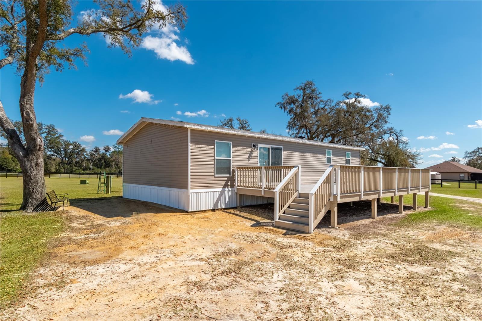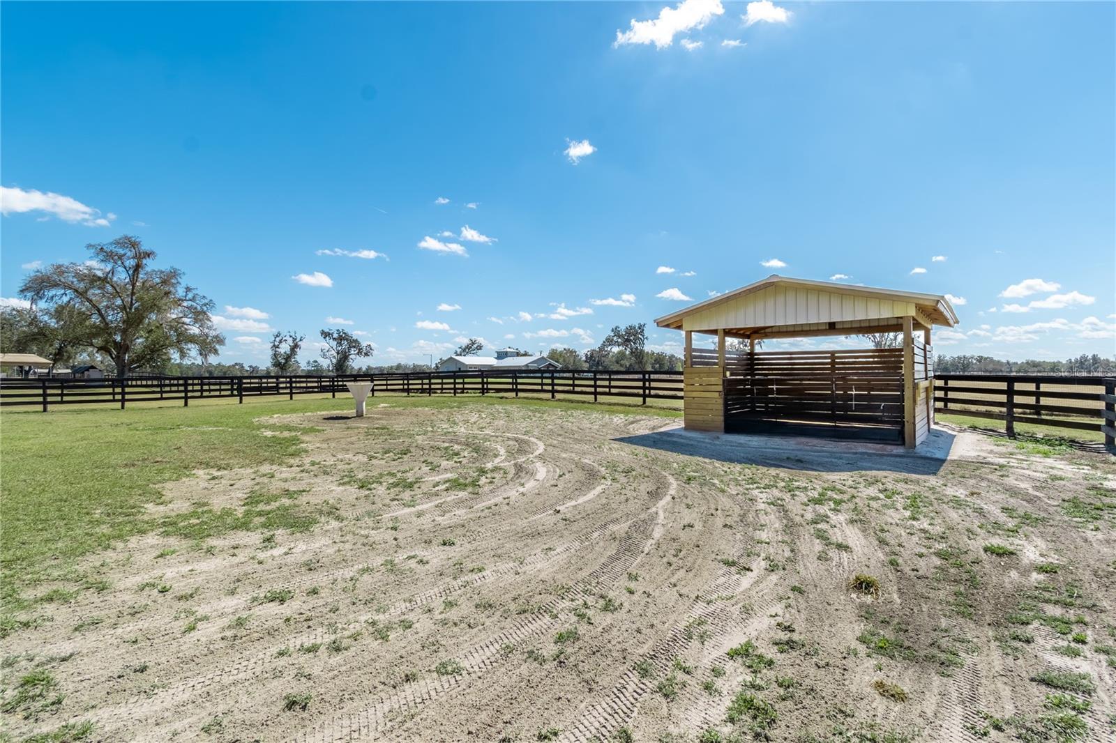 Situada em 27 acres de campo suavemente ondulado na renomada região dos cavalos do condado de Marion, esta fazenda de cavalos bem equipada oferece o espaço, a funcionalidade e a flexibilidade que os cavaleiros procuram! Situada a apenas 12 minutos do HITS e a 20 minutos do Centro Equestre Mundial (WEC), esta fazenda é a opção ideal para quem deseja experimentar as emocionantes competições e opções de shows da região. Cercada e fechada com tábuas e vedações cruzadas, a propriedade apresenta um caminho longo e sinuoso que passa por vários piquetes pitorescos e pastagens pontilhadas por carvalhos maduros enquanto conduz às principais áreas da quinta. Duas residências estão estabelecidas na propriedade – uma casa principal com 3 quartos e 2 banheiros e um gerente de fazenda adicional ou casa de hóspedes, ideal para quem procura hóspedes de longo prazo, renda de aluguel sazonal ou ajuda adicional na fazenda. A casa principal oferece aproximadamente 2.410 pés quadrados de área útil e apresenta um layout de quartos divididos com tetos abobadados que melhoram a sensação de abertura das áreas de estar. O piso de cerâmica percorre todos os espaços principais, e a cozinha inclui um pacote completo de eletrodomésticos com fogão, geladeira, micro-ondas, lava-louças, lavadora e secadora. A suíte principal possui um closet e um banheiro espaçoso, enquanto as portas deslizantes levam a uma varanda traseira com vista para as pastagens circundantes e o ambiente da fazenda. Um total de cinco barracas de 16 x 16 pés são instaladas na propriedade, cada uma delas como mini-celeiros individuais com sua própria estrutura murada e coberta que possui acesso à água, portões e são totalmente forradas com argila vermelha e cobertas com aparas de cama. Cada piquete inclui sistemas de água e nebulização para maior conforto, e há currais adicionais de captura/alimentação, bem como galpões cobertos nas pastagens maiores. Também está instalada uma estrutura de celeiro de concreto totalmente contida com área limpa para veterinários, completa com pia, estação de água quente e fria, eletricidade e excelente iluminação e ventiladores. Um cercado redondo adicional também está disponível para opções de treinamento adicionais, e há muitos terrenos abertos que poderiam ser desenvolvidos para uso como arena, piquetes adicionais ou local para um celeiro formal, se desejado. Ração, feno e suprimentos estão totalmente contidos em uma estrutura de celeiro coberta e protegida próxima à área da oficina para maior facilidade. A oficina / garagem é uma estrutura alta que apresenta um total de 3 vãos com portas de enrolar seguras, ideal para equipamentos ou ferramentas pesadas e pequenas. A oficina é bem ventilada e com excelente iluminação, além de contar com água e energia elétrica (painel de 220 amperes). O abundante espaço aberto e o ambiente de parque desta fazenda oferecem vistas deslumbrantes e uma atmosfera rural tranquila, ao mesmo tempo que permanece conveniente para a variedade de locais, comodidades diárias e serviços com foco equestre de Ocala. Com muita flexibilidade para múltiplas disciplinas e um layout bem pensado, esta fazenda é imperdível!