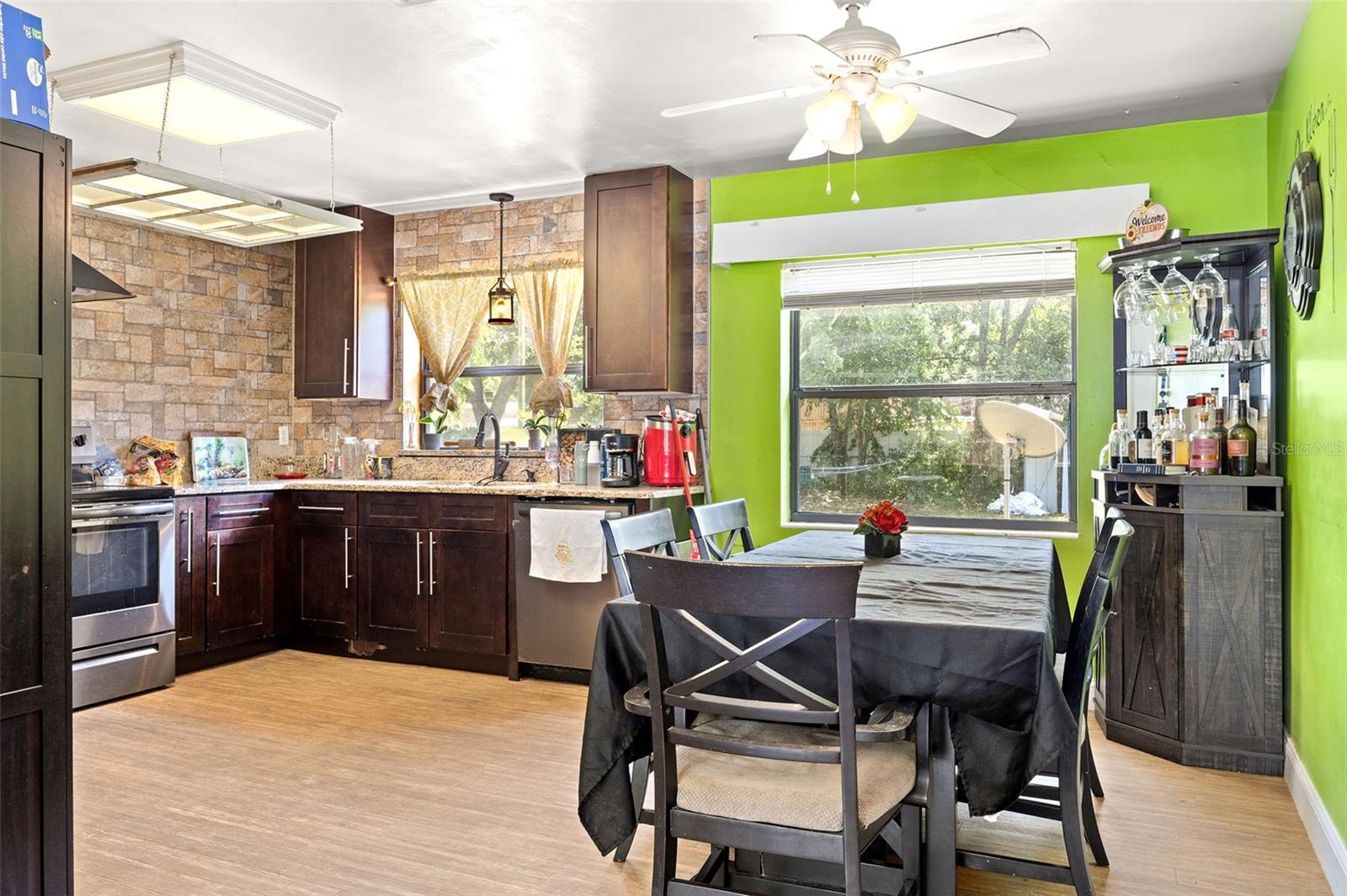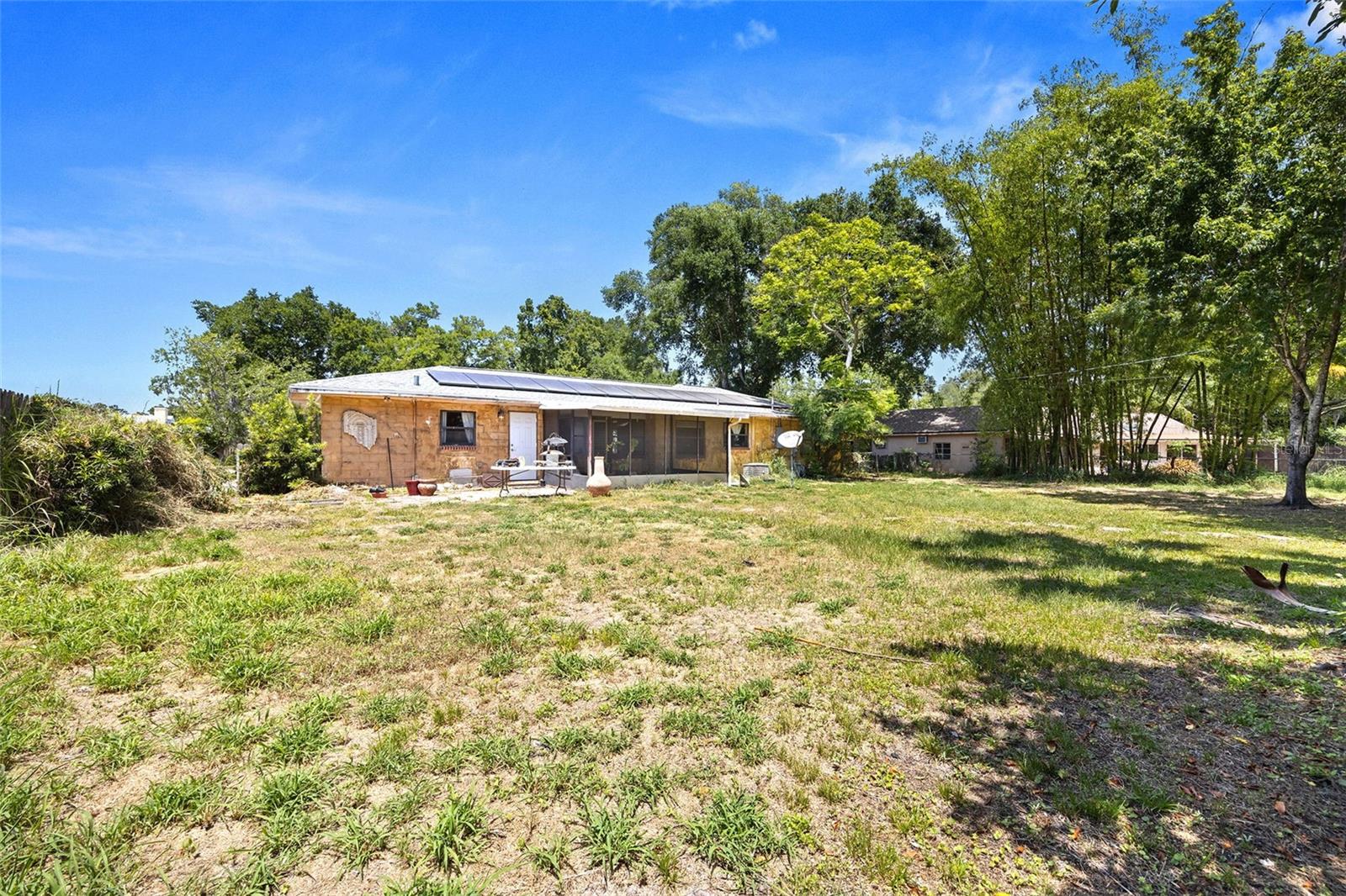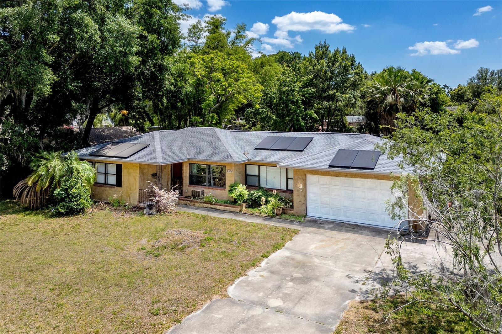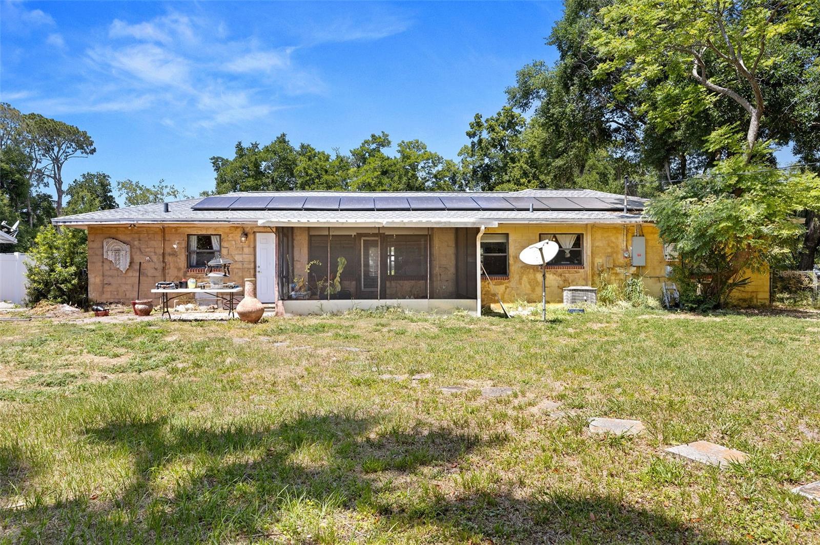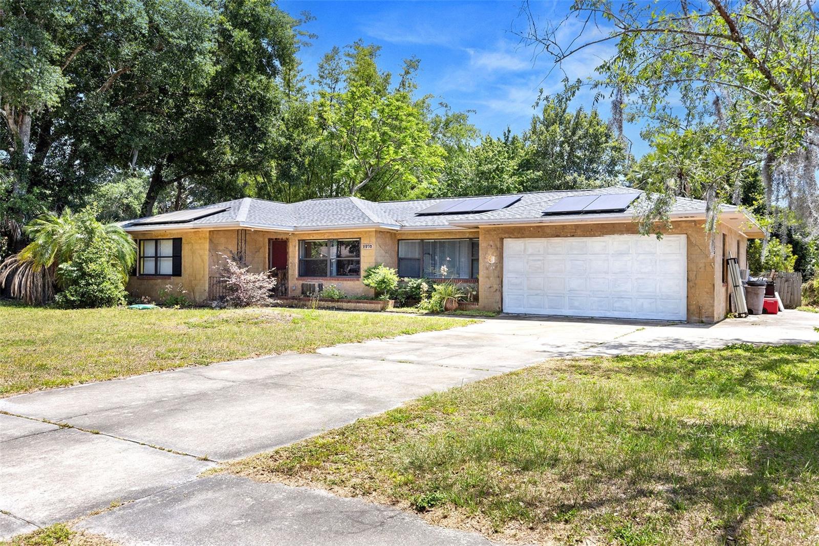 Localizada na procurada comunidade de Sylvan Shores, esta casa de 3 quartos e 2 banheiros com um grande quintal está situada em Mount Dora não incorporada, oferecendo o benefício dos impostos municipais. Não há HOA! Espaço de estar de tamanho generoso aberto para refeições área. A cozinha tem eletrodomésticos em aço inoxidável e bancadas em granito. Uma sala bônus no caminho para a grande varanda e O terceiro quarto seria um ótimo escritório, espaço flexível ou poderia ser usado para armazenamento adicional. Os painéis solares são presumíveis e fornecem a vantagem da redução dos custos de eletricidade. A trilha para caminhada e o parque do Lago Gertrude ficam a poucos passos de distância.