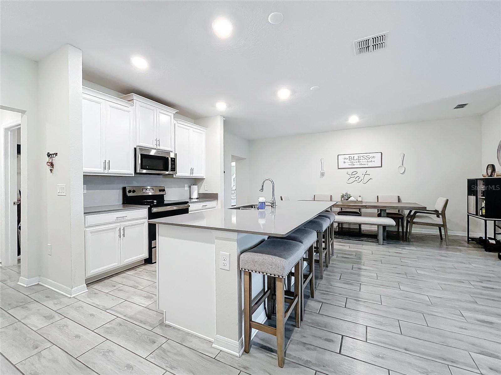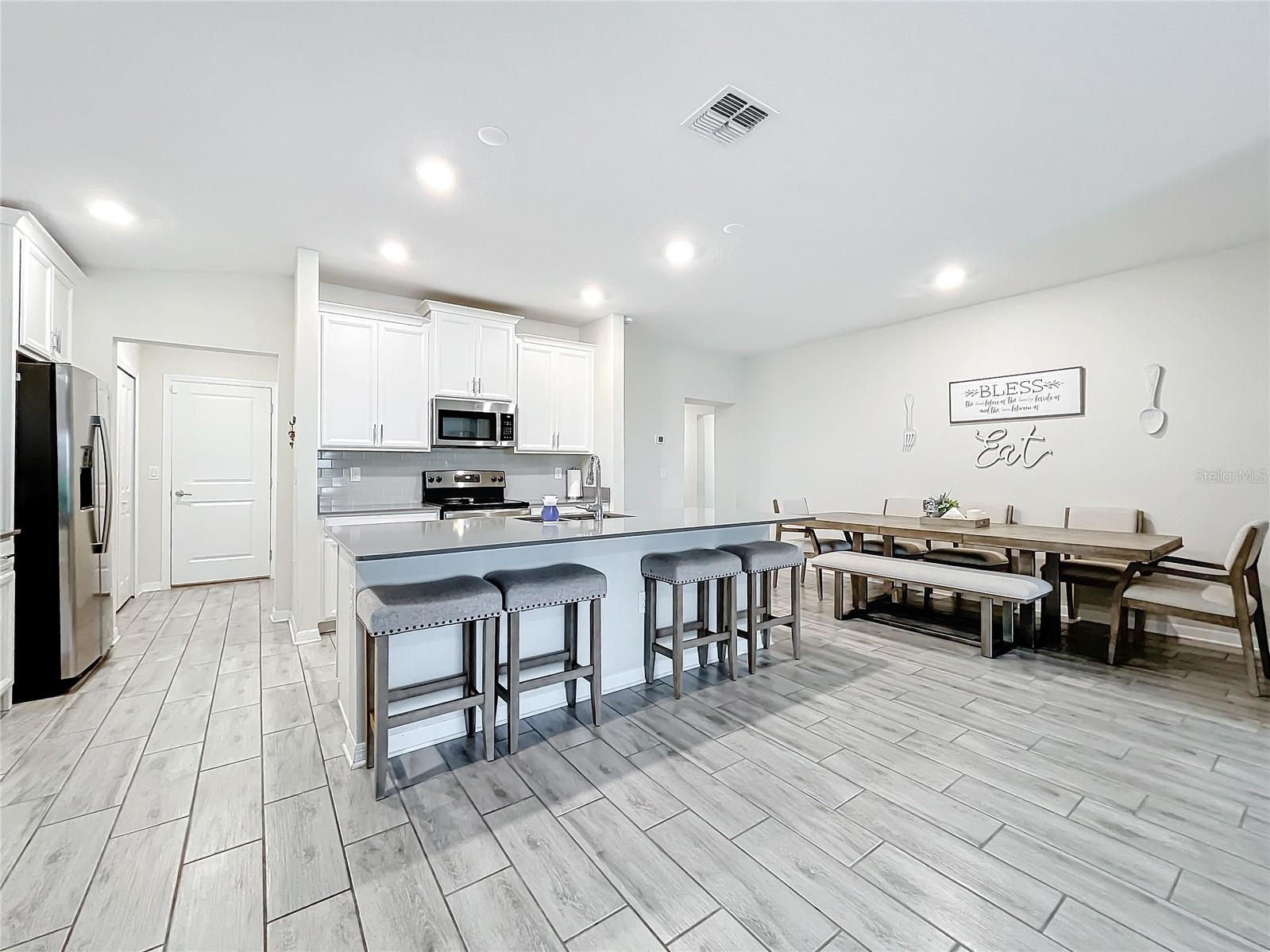 Situada em quase 1/4 de acre, esta casa praticamente nova possui um espaçoso quintal totalmente cercado, perfeito para atividades ao ar livre. Relaxe junto à fogueira e desfrute de um churrasco nos pavimentos de tijolos recentemente adicionados. Construída há apenas 3 anos, esta casa possui piso de tábuas de madeira e um layout aberto com luxuosas bancadas de quartzo e eletrodomésticos de aço inoxidável. Desfrute de um estilo de vida de férias com acesso a um clube estilo resort, bela piscina comunitária, splash pad, academia, quadras de tênis, sala de bilhar, quadra de basquete e muito mais! A conveniência do fácil acesso à SR 429 e à charmosa cidade de Mount Dora torna o deslocamento diário muito fácil, enquanto ainda mora em um condomínio fechado com guarda. Além disso, com um Publix e um shopping a poucos minutos de distância, você terá tudo o que precisa à mão! Esta casa oferece a combinação perfeita de conforto, luxo e conveniência; e o benefício da economia de energia com baixos custos mensais de eletricidade solar de apenas US$ 61 por mês, abrindo caminho para contas mensais de eletricidade incomumente baixas! Não perca a oportunidade de torná-lo seu!