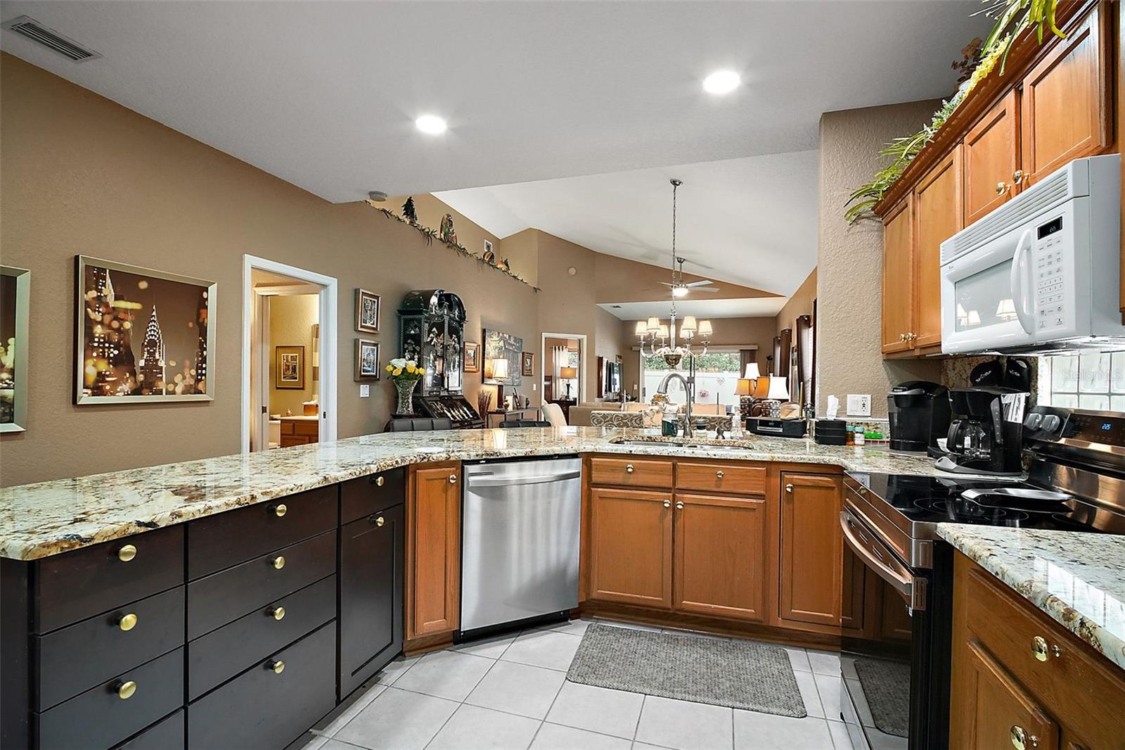 Bem-vindo à casa dos seus sonhos no Country Club de Mount Dora! A partir do momento de sua chegada, você vai adorar o ambiente tranquilo com a rua tranquila da casa e a varanda privativa. O telhado de telha e a garagem dupla oferecem fácil manutenção e bastante arrumação. Entre e você notará como o espaço foi projetado de maneira inteligente, combinando conforto e estilo. A planta aberta conecta a cozinha, a sala de jantar e a sala de família, tornando-a perfeita para a vida cotidiana e o entretenimento. A cozinha possui bancada em granito, muitos armários, despensa e espaço para bar - prático e convidativo. A sala de jantar, com seu lustre deslumbrante, acrescenta um toque de elegância, enquanto a espaçosa sala de estar flui direto para a nova varanda com tela. Este espaço exterior é perfeito para relaxar ou hospedar com espaço para mesa de jantar e zona de estar. Uma cerca de privacidade recém-adicionada de 6 pés e uma área para grelhar completam este espaço convidativo! O quarto principal é um retiro relaxante com banheiro próprio com pias duplas, box amplo e toalete privativo. O quarto de hóspedes também tem seu próprio banheiro com banheira e chuveiro combinados. Ambos os quartos oferecem muito espaço no armário. Há também um escritório bem iluminado perto da porta da frente que pode facilmente ser usado como terceiro quarto. Perto dali, a lavanderia tem armazenamento extra e uma pia prática. E a garagem está repleta de prateleiras e armários para ainda mais arrumação. Os atuais proprietários cuidaram muito bem desta casa, até completando uma inspeção residencial em 2022 para que pudessem fazer os reparos necessários. Como parte da comunidade de Santo André no Country Club, você terá fácil acesso à piscina semiprivada e ao clube da subdivisão. O Country Club de Mount Dora oferece associações familiares e de golfe com piscina, tênis e quadras de picles, bem como um calendário social muito ativo para os membros. O clubhouse do CCMD funciona diariamente para almoço e possui um aconchegante bar aberto ao público. Morar em Mount Dora significa que você está a apenas 45 minutos dos parques temáticos de Orlando, das praias do Atlântico e do Aeroporto Internacional de Orlando. Além disso, esta encantadora cidade é famosa por seus festivais, galerias de arte, restaurantes exclusivos e compras divertidas. Não perca a chance de aproveitar o melhor da vida na Flórida Central. Agende sua exibição hoje mesmo e descubra porque o Monte Dora é verdadeiramente “um lugar especial”!