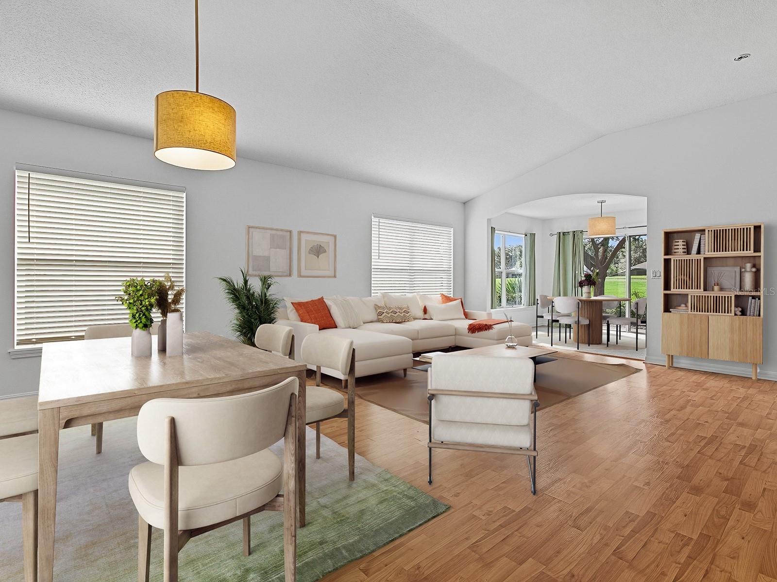 Uma ou mais fotos foram virtualmente encenadas. Charmosa casa de campo de golfe no 18th Green! Esta casa iluminada e arejada de 2 quartos, 2 banheiros e escritório oferece muito espaço e conforto. Tetos abobadados e um espaçoso layout de quarto dividido melhoram a sensação de abertura, enquanto um quarto adicional na Flórida tem vista para o pátio externo e para o pitoresco gramado do 18º. A planta aberta cria um espaço amplo e acolhedor, perfeito para entretenimento. A ampla garagem oferece amplo espaço e inclui uma oficina ideal para hobbies. Amada pelo proprietário original, esta casa apresenta um telhado arquitetônico mais recente instalado em 2019, pintura fresca por dentro e por fora e carpete novo nos quartos para maior aconchego. Pronto para você e sua família, oferece acesso às amplas comodidades do Country Club de Mount Dora, incluindo campo de golfe de 18 buracos, driving range, clubhouse, restaurante, quadras de pickleball e tênis, piscina e playgrounds. A poucos minutos de distância, o centro histórico de Mount Dora oferece o pitoresco Lago Dora com farol, um cenário artístico vibrante, ruas de tijolos, antiquários, boutiques e restaurantes locais exclusivos. A cidade hospeda festivais populares o ano todo, incluindo eventos de arte, música e artesanato, e suas colinas, lagos e reservas naturais ao redor a tornam perfeita para passeios de barco, pesca e atividades ao ar livre. Com uma comunidade amigável, escolas excelentes e acesso conveniente a Orlando, Mount Dora combina o charme de uma cidade pequena com conveniências modernas.