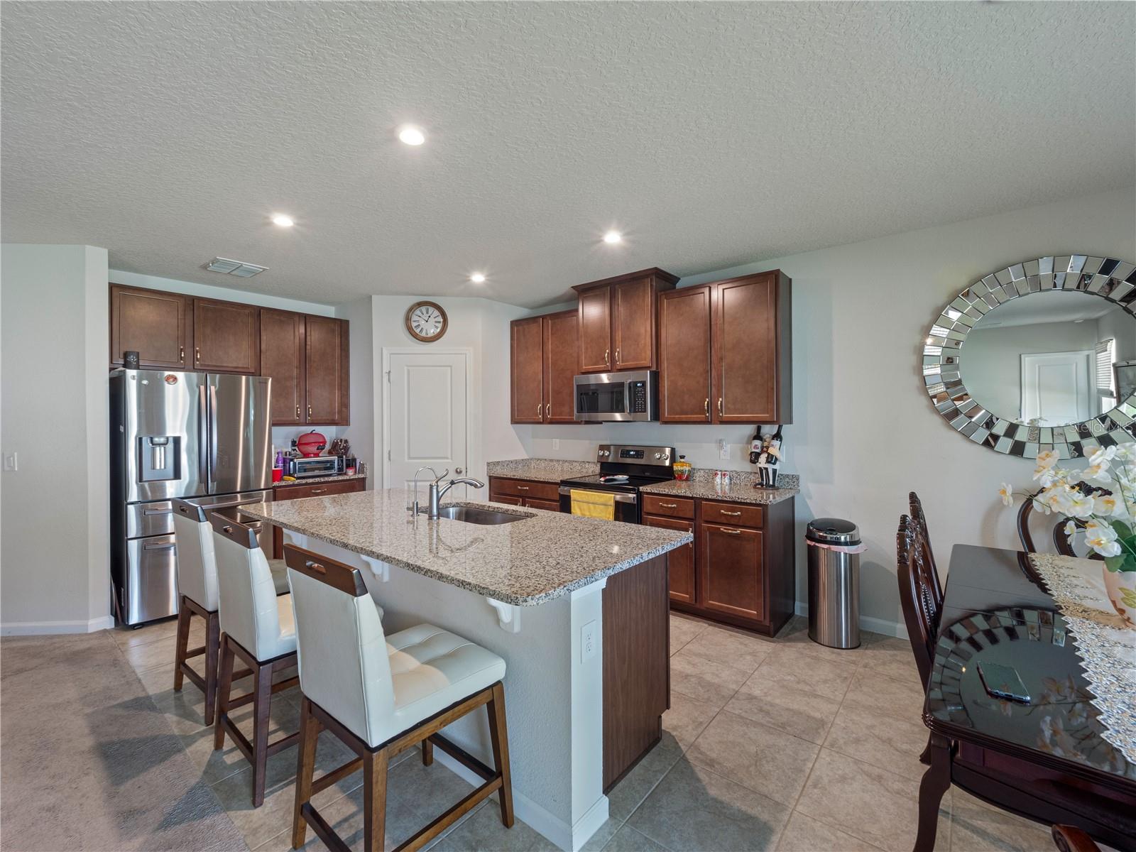Bem-vindo à sua nova casa! Entre no Baymont Model construído em 2022, uma espaçosa residência de 1.815 pés quadrados com 3 quartos e 2 banheiros, Plus Den" com a suíte master cuidadosamente separada para privacidade. Ao entrar, você é recebido por um amplo piso aberto plano, recursos adornados por toda parte. Ao entrar no hall de entrada, um quarto e banheiro completo aguardam à sua esquerda, com um cômodo flexível além e acesso conveniente à garagem para 2 carros, lavanderia e terceiro quarto à sua direita. Continuando em frente, você se encontrará na generosa sala grande, perfeitamente conectada à combinação de cozinha e sala de jantar. A cozinha encanta com armários de 42", bancadas em granito e um conjunto de eletrodomésticos incluindo forno, fogão, lava-louças e descarte. À direita, descubra a Suíte do Proprietário, completa com banheiro aberto com pias duplas, chuveiro e closet espaçoso. A localização é fundamental e você vai adorar a proximidade com todo aquele Monte Dora. Situado entre charmosos restaurantes, lojas e pousadas históricas, o Monte Dora exala um charme especial com seu ambiente de vila histórica com mais de cem anos de idade. Com festivais e eventos durante todo o ano, há sempre algo interessante para explorar. Com fácil acesso às principais rodovias como US441, US 27 e Florida’s Turnpike, viajar para a área metropolitana de Orlando para trabalho ou entretenimento é muito fácil. Experimente o melhor dos dois mundos – a tranquilidade da vida em Mount Dora combinada com a conveniência das comodidades urbanas próximas.