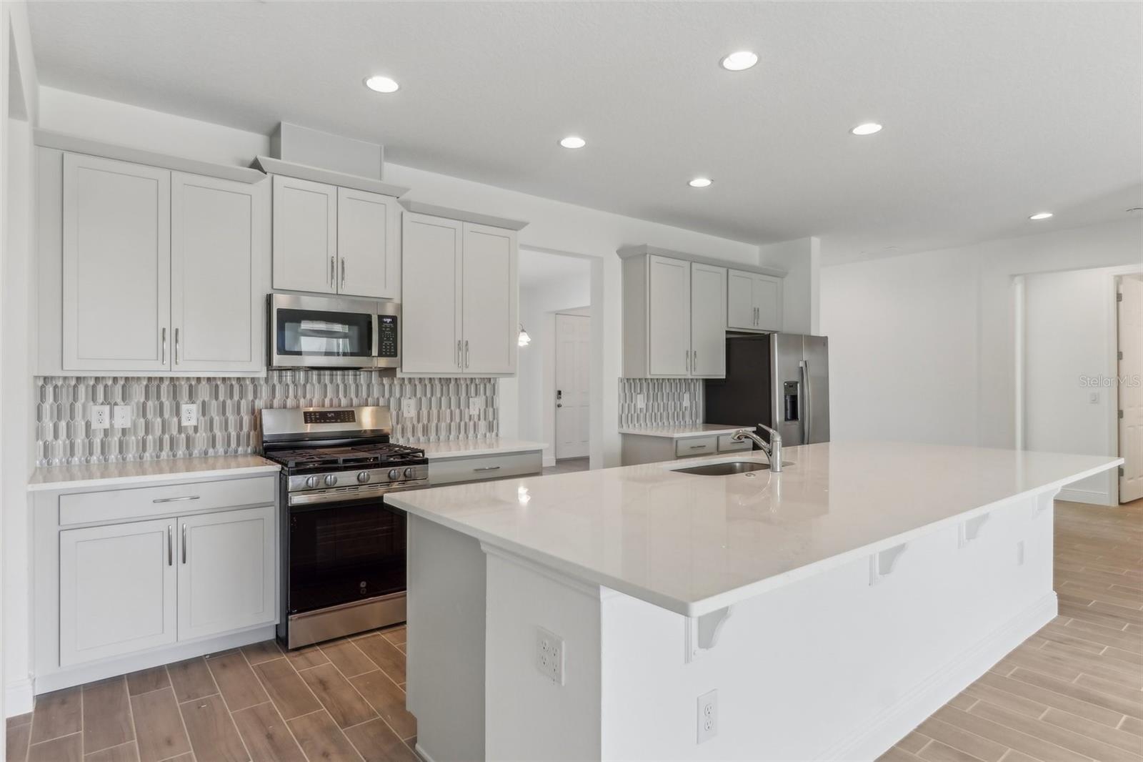 Mudar-se pronto! Nosso excepcional plano Brentwood oferece 3344 pés quadrados de espaço de estar, incluindo uma sala de bônus do segundo andar com o 5º quarto e banheiro completo. Situado em um belo canto de grandes dimensões e localizado na comunidade altamente procurada da Bargrove Estates, esta impressionante casa inclui um total de 5 quartos, 4 banheiros e garagem de 3 carros, juntamente com uma den/estudo do primeiro andar. Os extensos recursos de luxo incluem tetos de 9'4 ", rodapés de 5 1/4", portas internas de 8 ', persianas de janelas e muito mais! Beautifully upgraded Kitchen boasts 42" cabinets, quartz countertops, tile backsplash, oversized kitchen island, large walk-in pantry closet, and stainless appliances. Primary Bedroom includes incredible en-suite Bath featuring dual sinks in adult-height vanity, large walk-in closet, garden tub, and luxurious shower with wall tile surround, rainhead shower, and frameless glass enclosure. The spacious Great Room overlooks large covered rear O Lanai, fornecendo um ótimo espaço ao ar livre e entrega.