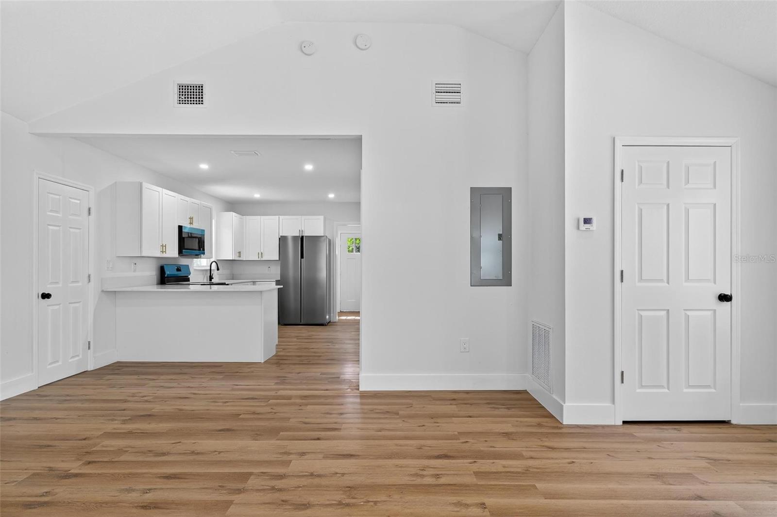 Bem -vindo ao 1503 Granite State Court - onde o design moderno encontra o histórico Mount Dora Charm! Esta casa totalmente renovada fica em um lote de 1/3 acres de tamanho grande, a apenas uma quadra da N. Donnelly Street, colocando-o a minutos do coração das lojas vibrantes do centro de Mount Dora, restaurantes à beira do lago, festivais de arte, que são mais antigos, atualizados e concluídos, e concluíram que esteve no meio do telhado, atualizou-se e concluiu um pouco, o telhado e o tóximo, o novo e o tóximo, o novo e o tóximo, o novo e o tóximo e o novo e o tóxt. banheiro. Step inside to light brown luxury vinyl plank flooring that runs throughout the home, complemented by modern shaker cabinets with stylish gold hardware.The living room boasts soaring vaulted ceilings and 4” recessed LED puck lighting, creating an open, airy ambiance. Both bathrooms are completely remodeled—one featuring a sleek walk-in shower, the other a bath/shower combo for added convenience.The upgraded kitchen includes all-new 2025 Aparelhos de aço inoxidável e, logo após a cozinha, há uma sala de utilidade superdimensionada que abriga o aquecedor de água sem tanques, conexões de arruela/secadora e espaço extra perfeito para armazenamento de despensa ou um larguro. Ou um investimento perto de uma das cidades históricas mais amadas do centro da Flórida, esta jóia do monte Dora verifica todas as caixas.