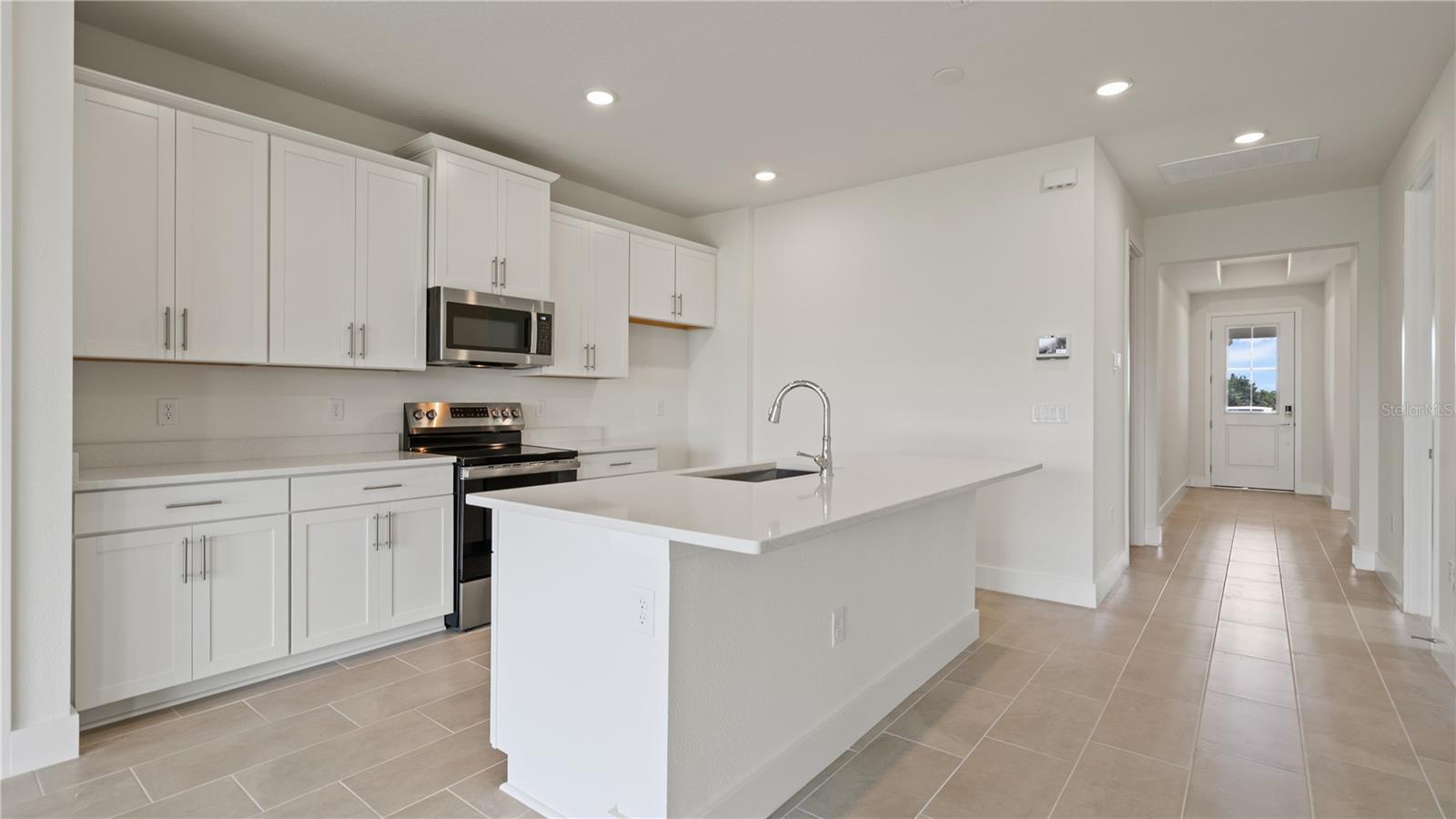Rápido para casa na comunidade de trilhas no Monte Dora! Esta nova casa unifamiliar de 3 quartos e 2 banheiros com uma garagem de 2 carros oferece estilo moderno e vida inteligente em uma comunidade procurada. Uma das únicas casas de 3 quartos com uma porta de vidro deslizante de 12 "entre 9'4 tetos, portas internas de 8 'e ladrilhos de cerâmica elegantes 12x24" em todas as áreas de estar. The beautiful kitchen showcases 42" upper cabinets, quartz countertops, stainless steel stove, microwave, and dishwasher, and a spacious layout perfect for entertaining. Both bathrooms also feature sleek quartz finishes. Enjoy peace of mind with the built-in pest control system and a full suite of smart home technology-including wifi garage door opener, video doorbell, smart thermostat, and touchscreen automation panel. The 8' A porta da frente causa uma primeira impressão impressionante, enquanto o design de conceito aberto cria um espaço brilhante e acolhedor.