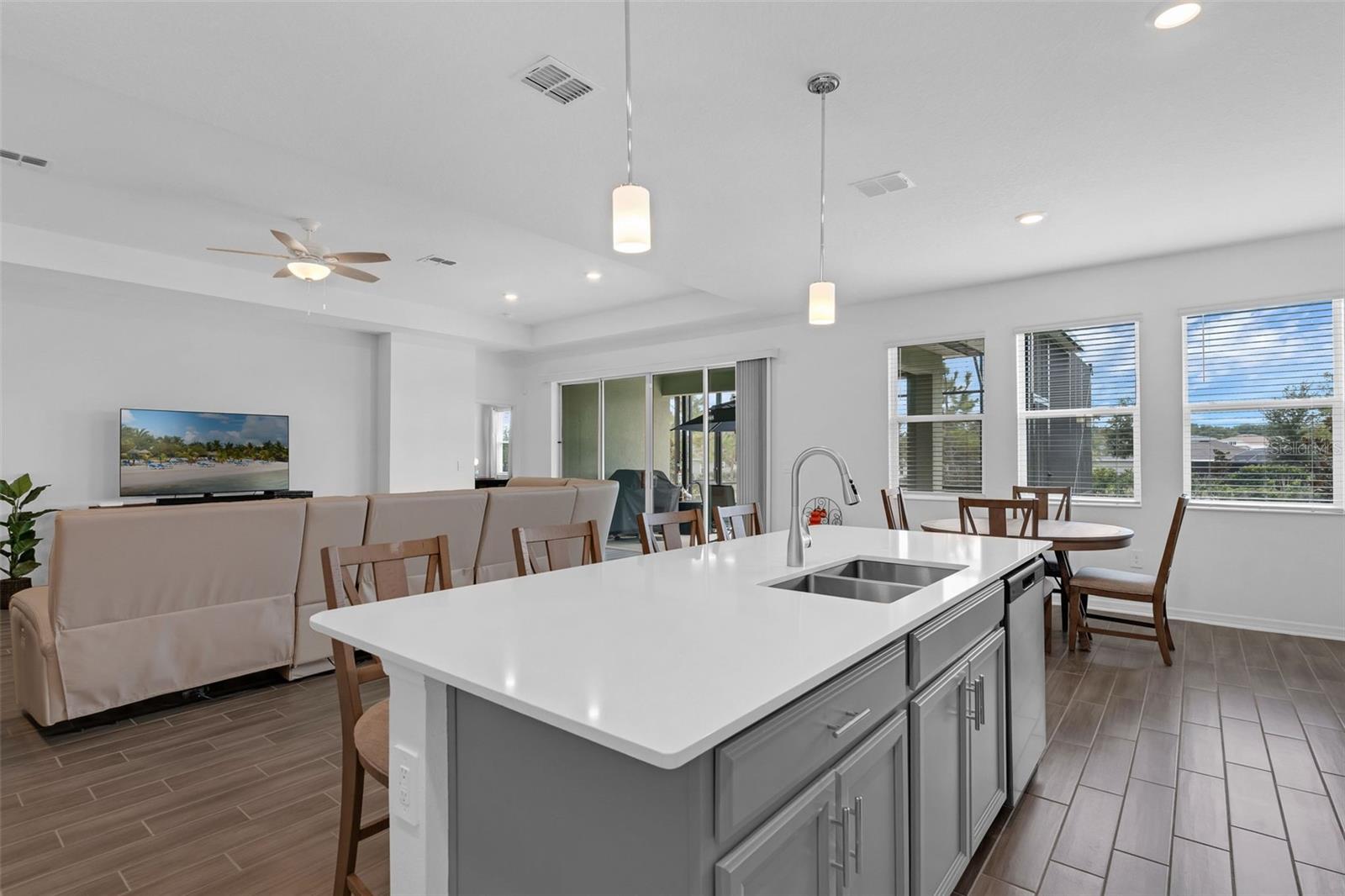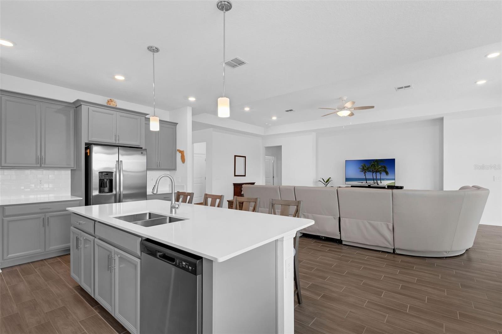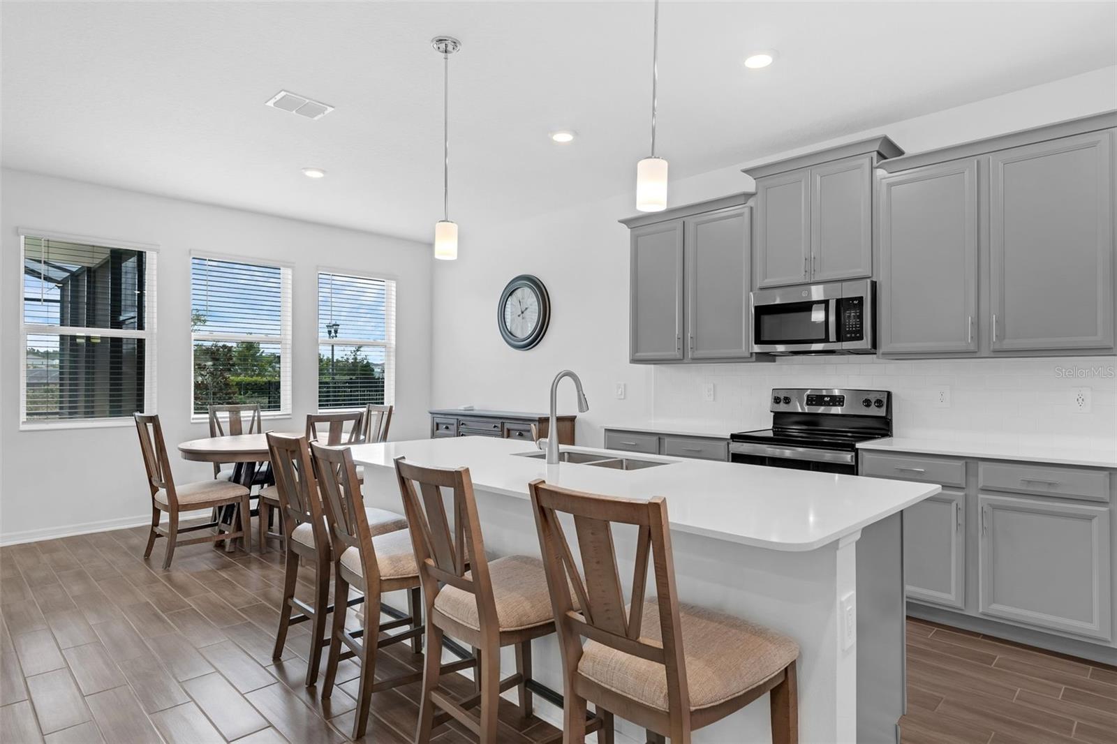 Esta encantadora casa de um andar oferece 4 quartos, 3 banheiros e uma garagem de 3 carros. A cozinha gourmet é o sonho de um chef, com armários de madeira cinza de 42 polegadas com moldagem por coroa, bancadas de quartzo, utensílios de aço inoxidável, um elegante backsplash de ladrilhos, assentos de balcão na ilha central e um aconchegante recanto de café da manhã. Uma sala de jantar formal se abre perfeitamente para a espaçosa sala grande, completa com portas deslizantes que levam a uma varanda coberta e rastreada - perfeita para entretenimento. A suíte primária possui um luxuoso banho privativo com uma grande banheira de imersão, chuveiro separado, vaidade dupla e armário de linho. O destaque é o expansivo closet com acesso direto à lavanderia para maior conveniência. O layout de quartos divididos inclui dois quartos na frente da casa conectada por um banheiro Jack & Jill, enquanto o quarto quarto fica na sala grande com seu próprio banho completo-ideal para os hóspedes ou um escritório particular. Meticulosamente mantido, esta casa também inclui sarjetas, amaciador de água e um vínculo de cupins para tranquilidade. Localizados em uma comunidade procurada com um portão guardado de 24 horas, os moradores desfrutam de comodidades em estilo resort, incluindo uma piscina com área de splash, clube com fitness center, quadras de tênis e basquete e playground. As conveniências diárias estão do lado de fora da entrada com o Publix nas proximidades, enquanto as encantadoras lojas e restaurantes do centro de Mount Dora estão a poucos minutos. O acesso rápido a 429/417 facilita o deslocamento de Orlando e as atrações.