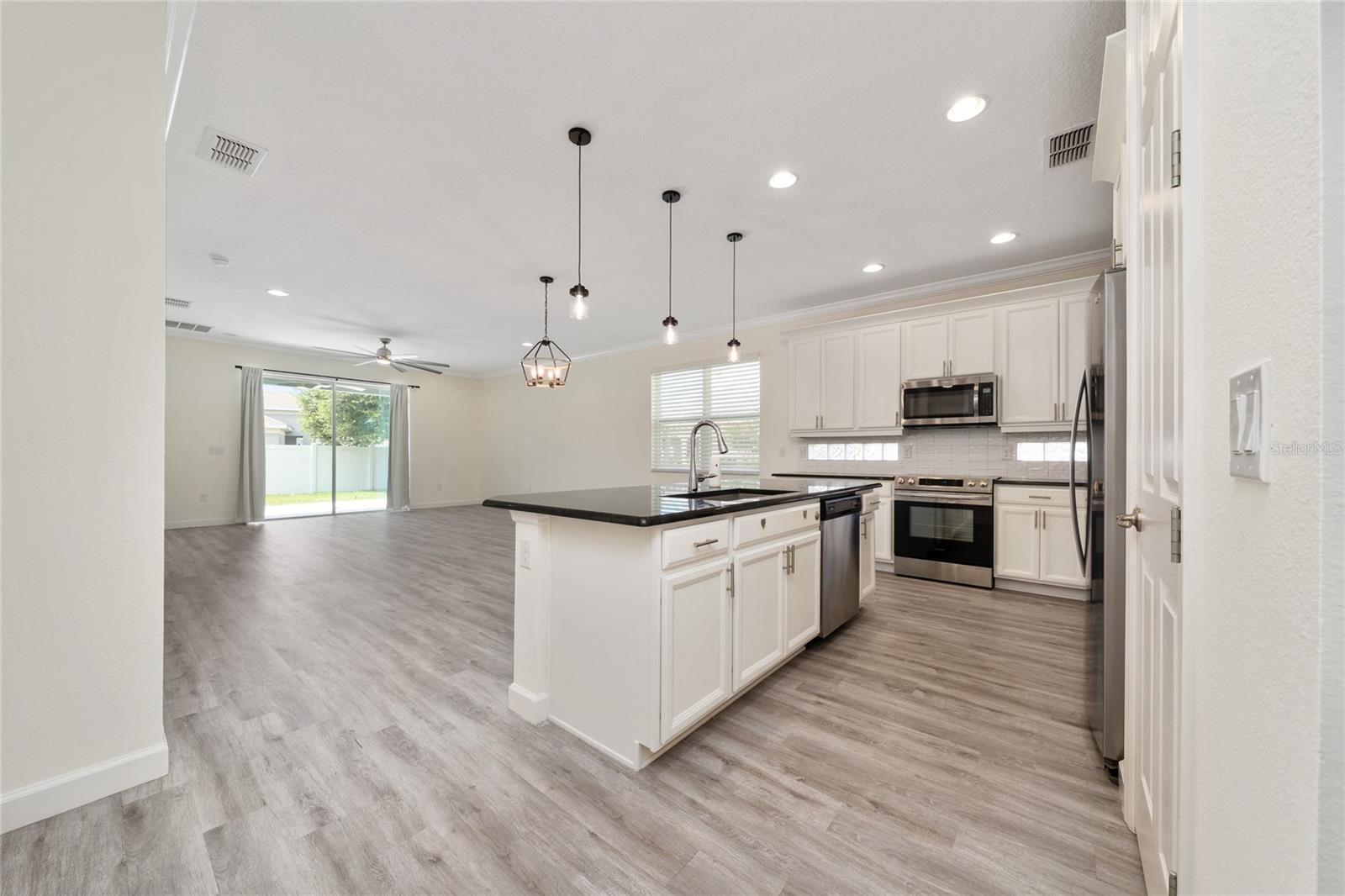 Entre nesta planta dividida de conceito aberto lindamente atualizada com 4 quartos, 2 banheiros e uma garagem para 2 carros. No acolhedor hall de entrada, você notará imediatamente o piso laminado de tábuas largas - sem carpete - oferecendo elegância e fácil manutenção. Uma sala de lama ao lado da garagem e uma grande sala/quarto acrescentam conveniência ao dia a dia. A cozinha é a verdadeira peça central - aberta para as áreas de jantar e de estar - apresentando uma enorme ilha de granito com assentos de bar, pia de aço inoxidável, eletrodomésticos premium de aço inoxidável e armários de 42”. O retiro do proprietário é um refúgio privado com tetos falsos, armários duplos personalizados e um banheiro luxuoso com pias duplas, sanitários atualizados e box amplo com box de vidro com detalhes em azulejos e banco embutido. Atualizações adicionais incluem painéis solares com bateria reserva (paga integralmente), pintura interna e externa nova e acabamentos cuidadosos por toda parte. Os controles deslizantes de vidro da sala de estar estendem seu espaço ao ar livre para um pátio coberto e um quintal cercado com privacidade - perfeito para relaxar ou se divertir. Esta comunidade oferece um valor excepcional com uma piscina e baixas taxas HOA de apenas US$ 170 trimestrais. Idealmente localizado a apenas 2,4 km da SR-429 para um deslocamento fácil para Orlando e a poucos minutos do centro de Mount Dora, do Renninger's Antique Center, de lojas e restaurantes. Esta casa atualizada é imperdível!
