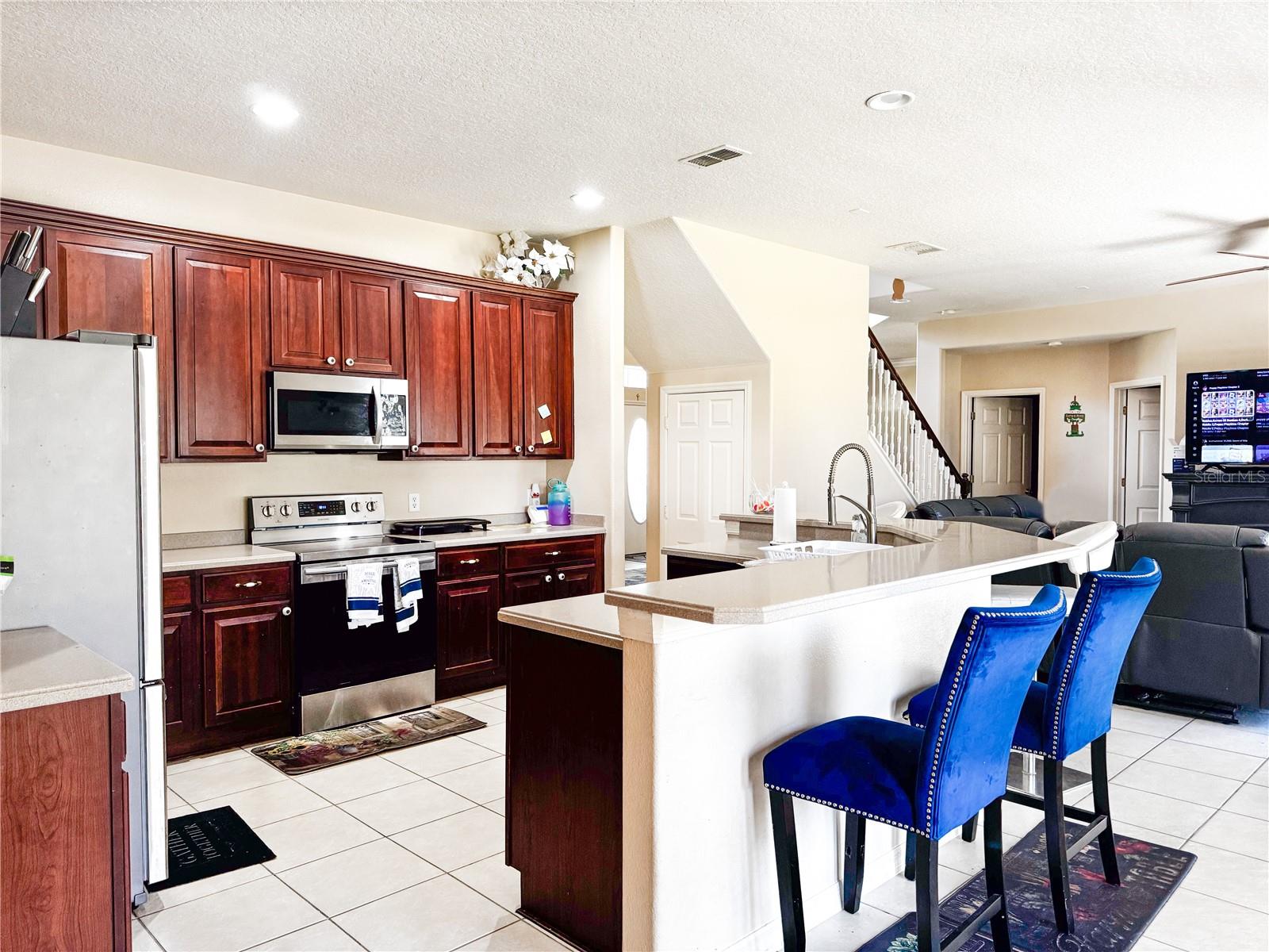 Bem-vindo ao seu novo retiro na estimada comunidade de Stoneybrook Hills! Esta deslumbrante residência de 4 quartos e 4 1/2 banheiros incorpora uma vida elegante com seu design requintado e comodidades abundantes. Passe pelo portão de segurança 24 horas e seja recebido por um grande hall de entrada de 2 andares e uma sala de jantar formal, preparando o cenário para a sofisticação encontrada no interior. A ampla suíte master acena com sua indulgente banheira de hidromassagem no banheiro principal e uma varanda privativa que oferece vistas pitorescas da área de conservação. Saia para a varanda traseira de 18 metros de altura em ambos os níveis e mergulhe na paisagem perfeita. espaço interno e externo, perfeito para relaxar ou realizar reuniões. O primeiro andar possui um quarto espaçoso, adornado com pisos duráveis de madeira de cerejeira que elevam o apelo da casa. Divirta-se sem esforço com uma sala bônus e uma sala de mídia completa com banheiro anexo, proporcionando conforto e conveniência para você e seus convidados. Esta residência não é apenas uma casa; é um retiro projetado para conforto e lazer. Stoneybrook Hills Community oferece uma impressionante variedade de comodidades, incluindo um clube, piscina olímpica aquecida, piscina infantil, playground, quadra de basquete, academia, sala de bilhar e quadra de tênis - proporcionando um resort estilo de vida ao seu alcance. Convenientemente localizada perto do centro de Mt. Dora, lojas e principais vias expressas, esta casa combina perfeitamente elegância com acessibilidade. Além disso, fique tranquilo sabendo que a casa vem com um vínculo contra cupins para proteção adicional.