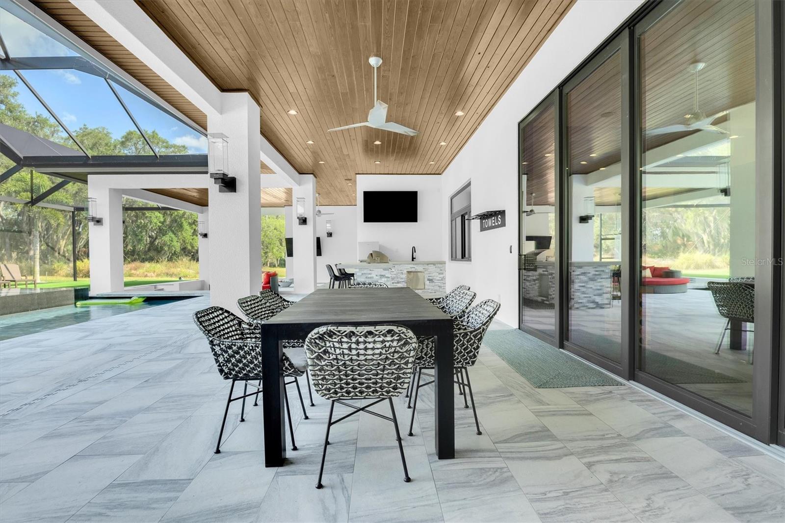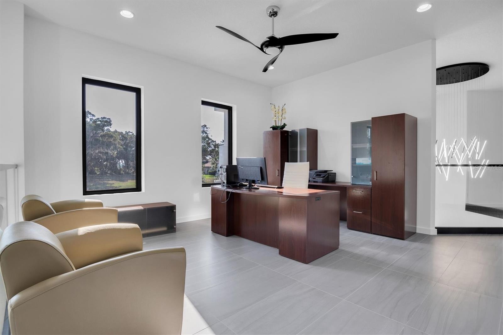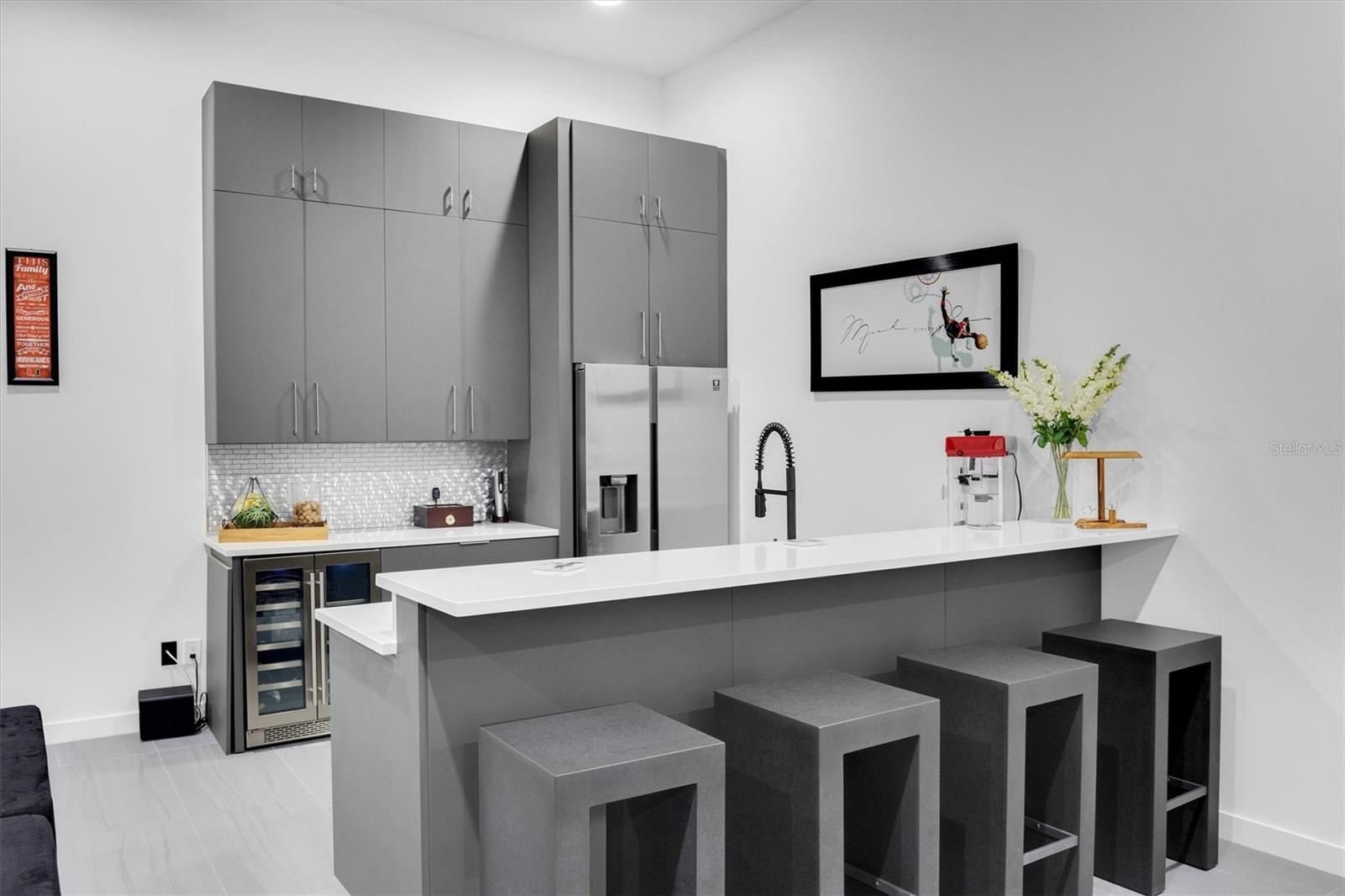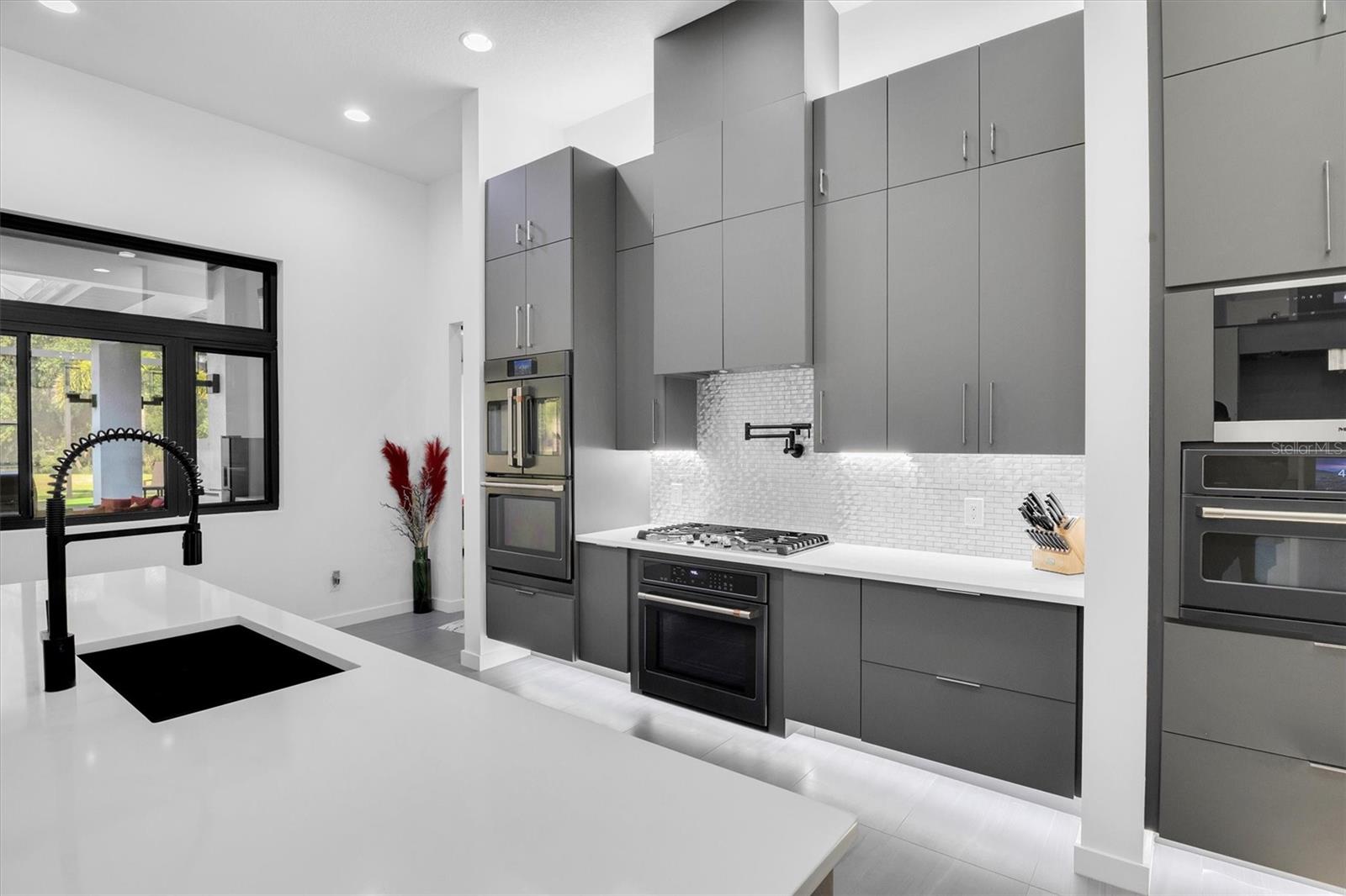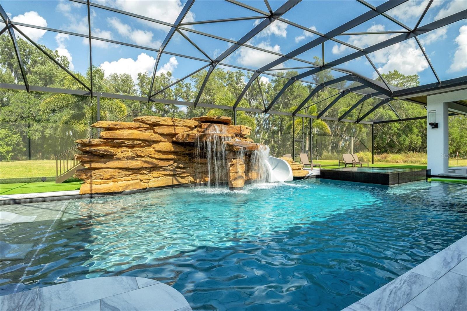 Bem-vindo ao epítome da vida luxuosa na proeminente comunidade de Canterwood. Esta casa moderna e única, construída sob medida, oferece 4 quartos e 6 banheiros em pouco mais de 1 acre de terreno, ostentando 8.100 pés quadrados de área útil que combina perfeitamente a vida interna e externa. Na entrada, os hóspedes são recebidos por tetos altos de 24 pés na grande sala, dando um tom grandioso à residência. O primeiro andar possui salas de estar e jantar formais, ideais para reuniões extravagantes, além de uma sala de esportes/mídia de 19'x17' completa com bar molhado. A cozinha gourmet, equipada com eletrodomésticos GE Café, incluindo três fornos, cafeteira embutida, micro-ondas embutido, fogão a gás profissional e geladeira Sub-Zero, atende aos entusiastas da culinária. Além disso, a propriedade contém um quarto flexível no primeiro andar, bem como uma suíte principal com um closet prodigioso. Pegue o elevador para explorar o segundo andar, onde você encontrará uma suíte principal adicional, uma academia e um quarto de hóspedes. Experimente a verdadeira vida ao ar livre da Flórida o ano todo com piscina aquecida, spa infinito, bar aquático, cabana e cozinha externa, todos adornados com charmosos lampiões a gás. A propriedade também oferece garagem para 3 carros com 2 estações de carregamento de veículos elétricos para maior comodidade. Esta casa é controlada com um Sistema Control 4 que permite uma gestão doméstica expedita, aumentando o conforto e a eficiência. Por último, mas não menos importante, esta casa possui painéis solares pagos integralmente, reduzindo significativamente as suas contas de electricidade e exemplificando uma vida ecologicamente consciente. Além disso, possui um tanque de propano de 500 galões de propriedade integral, garantindo acesso ininterrupto ao propano para diversas necessidades domésticas. Não perca a oportunidade de conhecer esta casa excepcional. Reserve seu passeio hoje e experimente sua grandiosidade em primeira mão.
