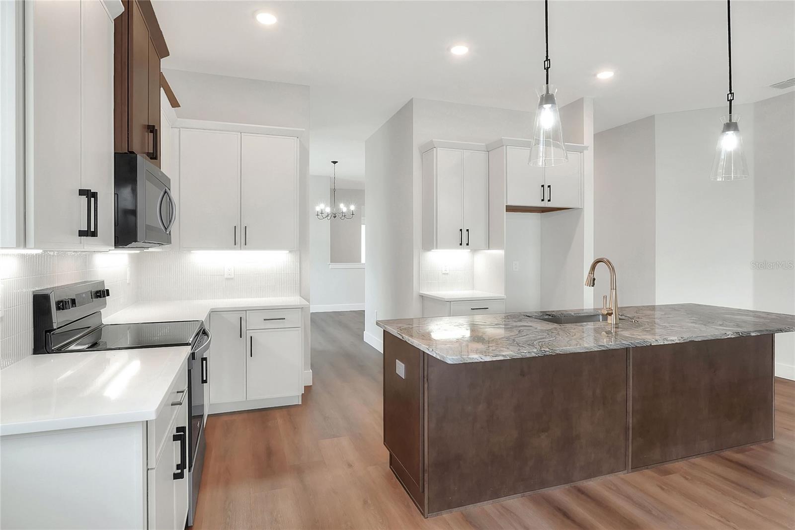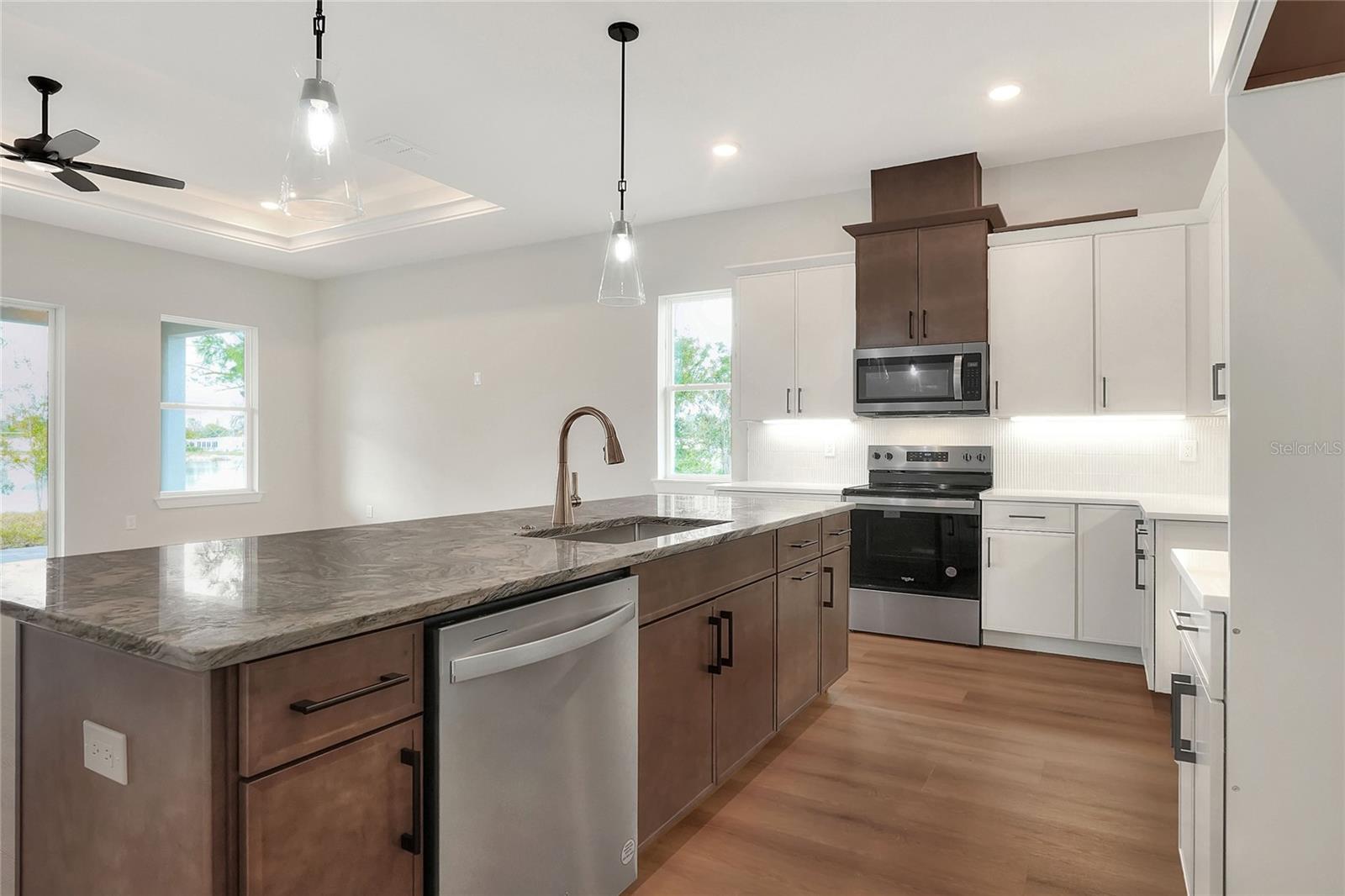 Vistas magníficas da água de três lados! Último lote na rua, então não há vizinhos de um lado, deixando muito espaço verde para seus animais de estimação vagam. PARADE OF HOMES "BEST MASTER BATH" AND BEST FEATURE DESIGN FINISHES AWARD" New construction 3 bedroom, 2.5 bathroom plus an office luxury home in one of Central Florida’s fastest growing communities. Upgraded high-end cabinets, combination of desirable quartz and beautiful granite countertops, durable and attractive waterproof vinyl plank flooring, alarm, paver driveway and porches, 10’ ceilings and more make this home unique and appealing. Near shopping, Restaurantes, escolas e entretenimento.