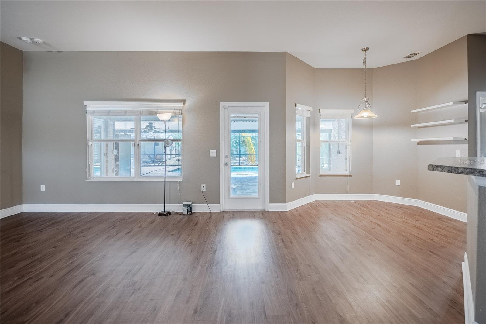 Esta linda casa de garagem de 4 quartos de 4 quartos, 3 banheiros e 2 carros está localizada na altamente procurada comunidade de Oaks Blackwater em lagos imperiais. Ao entrar no hall de entrada, há um escritório à esquerda com muitas prateleiras e armários e uma grande sala de jantar à direita, perfeita para jantares. Esta planta aberta apresenta tábuas de vinil de luxo premium em todas as áreas, exceto quartos e banheiros. A grande sala tem uma porta francesa para a Lanai, cozinha de tamanho agradável com armários de madeira, utensílios de aço inoxidável (não microondas), bar de café da manhã e canto. Planta de 3 vias dividida com o quarto quarto com seu próprio banheiro privativo. 2º e 3º quartos compartilham um banheiro que tem uma porta francesa que leva ao Lanai também servindo como um banho de bilhar. O quarto principal muito grande tem um teto de bandeja e porta francesa para o lanchone, banheiro de luxo com banheira, chuveiro separado e pias duplas e dois armários. A área de Lanai e piscina tem pavimentadora e é perfeita para entretenimento ou apenas desfrutar do nosso lindo clima da Flórida. A piscina é uma piscina de água salgada e tem um limpador de golfinhos. O quintal de tamanho grande possui um galpão com A/C de janela elétrica e outro edifício perfeito para armazenamento. Ligue hoje para agendar sua exibição privada desta casa incrível!