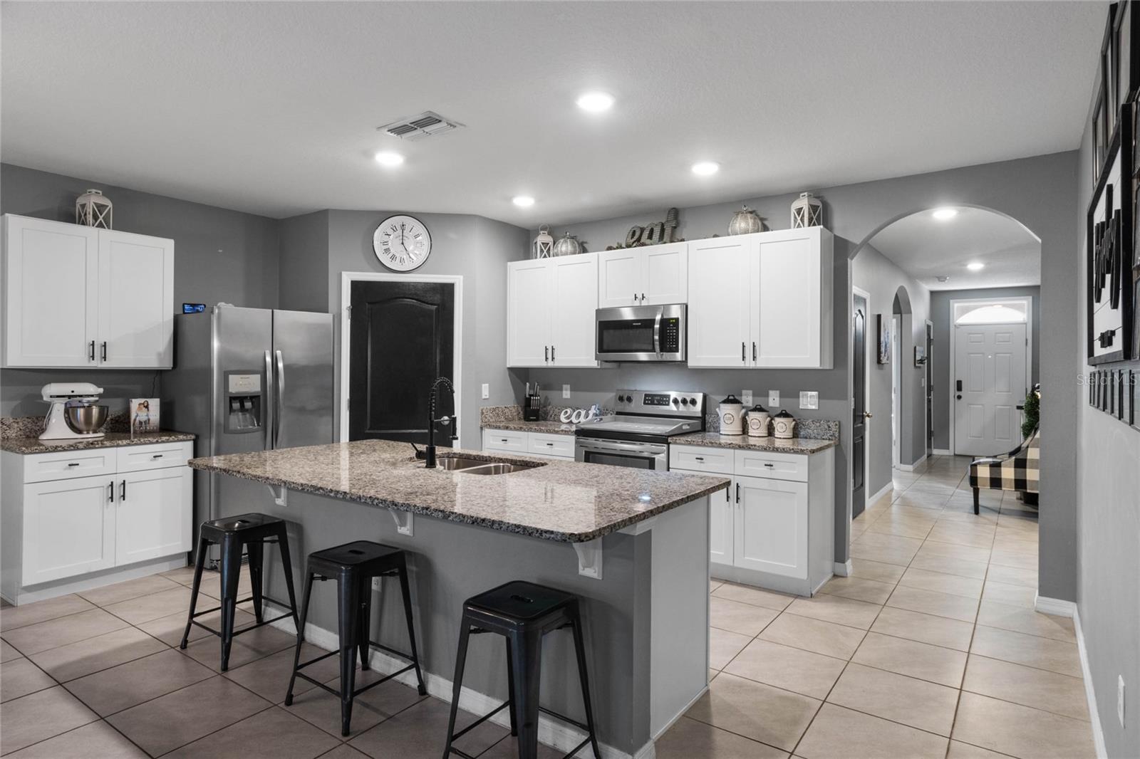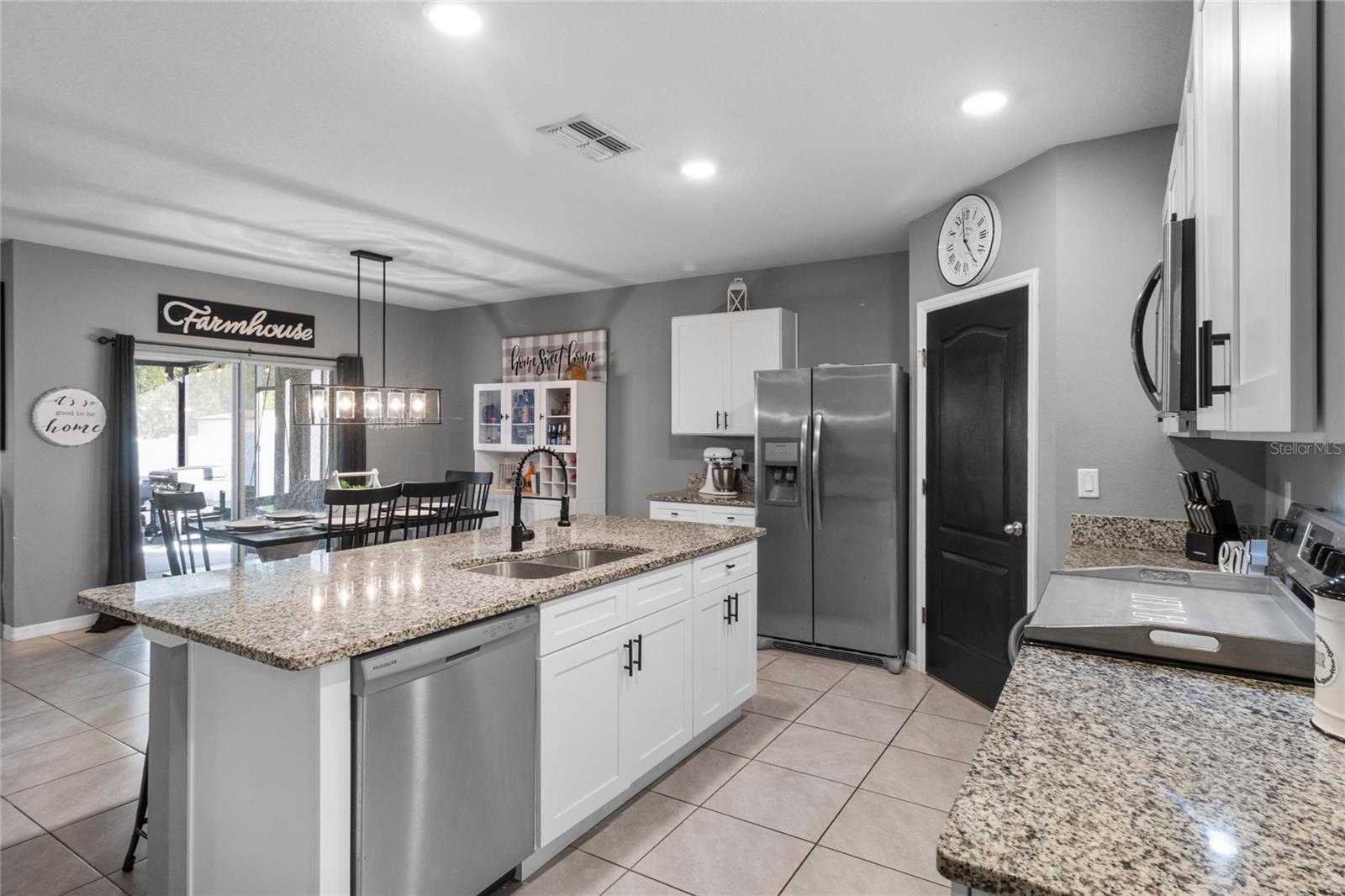 Bem -vindo a este lindamente mantido o Dr. Horton Cali Plan, localizado na desejável comunidade de Bridgeport Lakes em Mulberry. Aninhado a poucos minutos de Loyce E. Harpe Park, Alafia River Reserve e trilhas para caminhada, esta casa oferece a mistura perfeita de natureza e conveniência. Você também terá uma proximidade de fazer compras, restaurantes e grandes estradas para um trajeto fácil para Lakeland, Bartow ou Tampa. Esta casa cuidadosamente projetada de 4 quartos e 2 banheiros oferece 1.828 pés quadrados de espaço de estar de conceito aberto, misturando funcionalidade com estilo moderno. No coração da casa, há uma cozinha espaçosa com bancadas em granito, utensílios de aço inoxidável, uma grande ilha com pia e máquina de lavar louça e espaço para bancos de barrass - perfeitas para refeições casuais ou entretenimento. Uma despensa generosa fornece amplo armazenamento para todas as suas necessidades culinárias. A cozinha flui perfeitamente para as áreas de jantar e de estar, criando uma atmosfera aberta e arejada cheia de luz natural. O piso de telha percorre todas as principais áreas de estar, enquanto todos os quatro quartos oferecem carpetes aconchegantes. O layout do quarto dividido oferece privacidade, com a suíte primária escondida na parte de trás da casa. Desfrute de um grande closet e um banheiro privativo com pias duplas e um chuveiro. Saia de um pátio de back-in de grandes dimensões-um espaço ideal para relaxar, relaxar ou entreter. Sem vizinhos traseiros e vistas pacíficas da lagoa e da área de conservação, esta casa fica em um lote premium. O quintal totalmente cercado inclui um portão largo, oferecendo acesso fácil e funcionalidade adicional. Esteja você procurando conforto, conveniência ou conexão com o ar livre, esta casa oferece tudo.