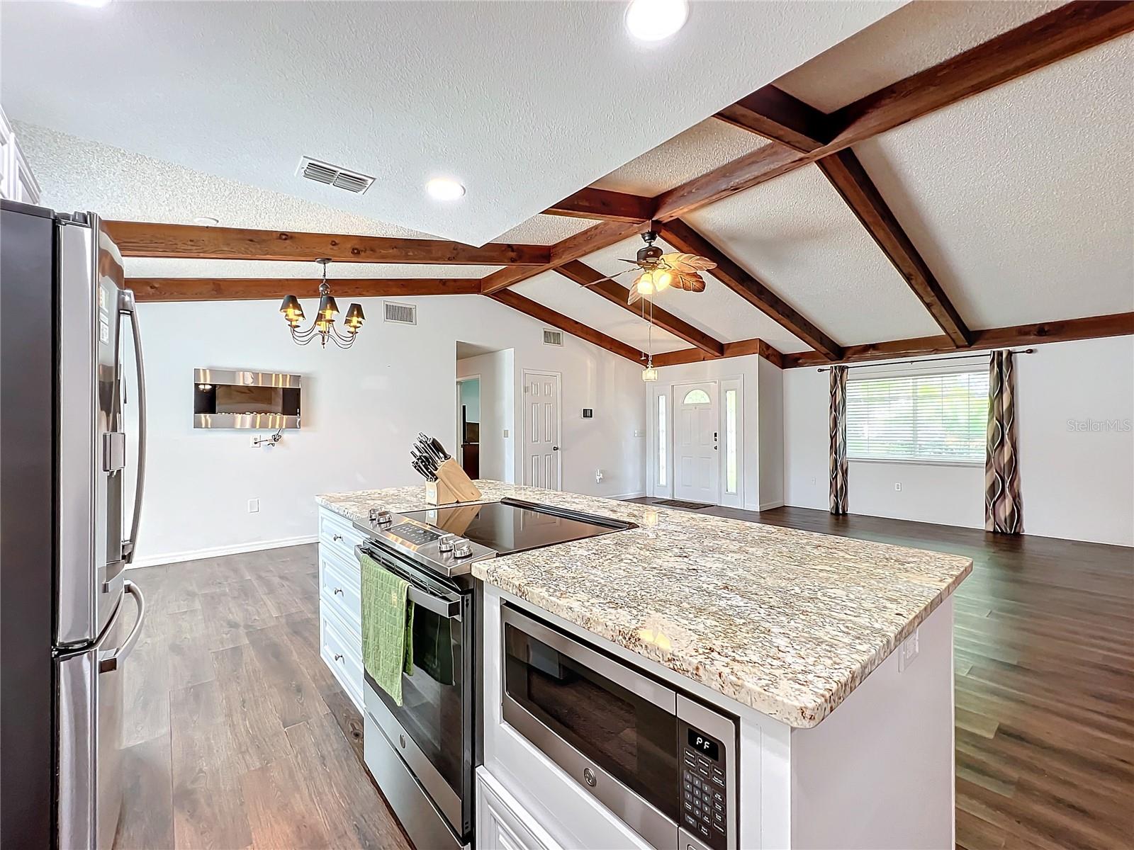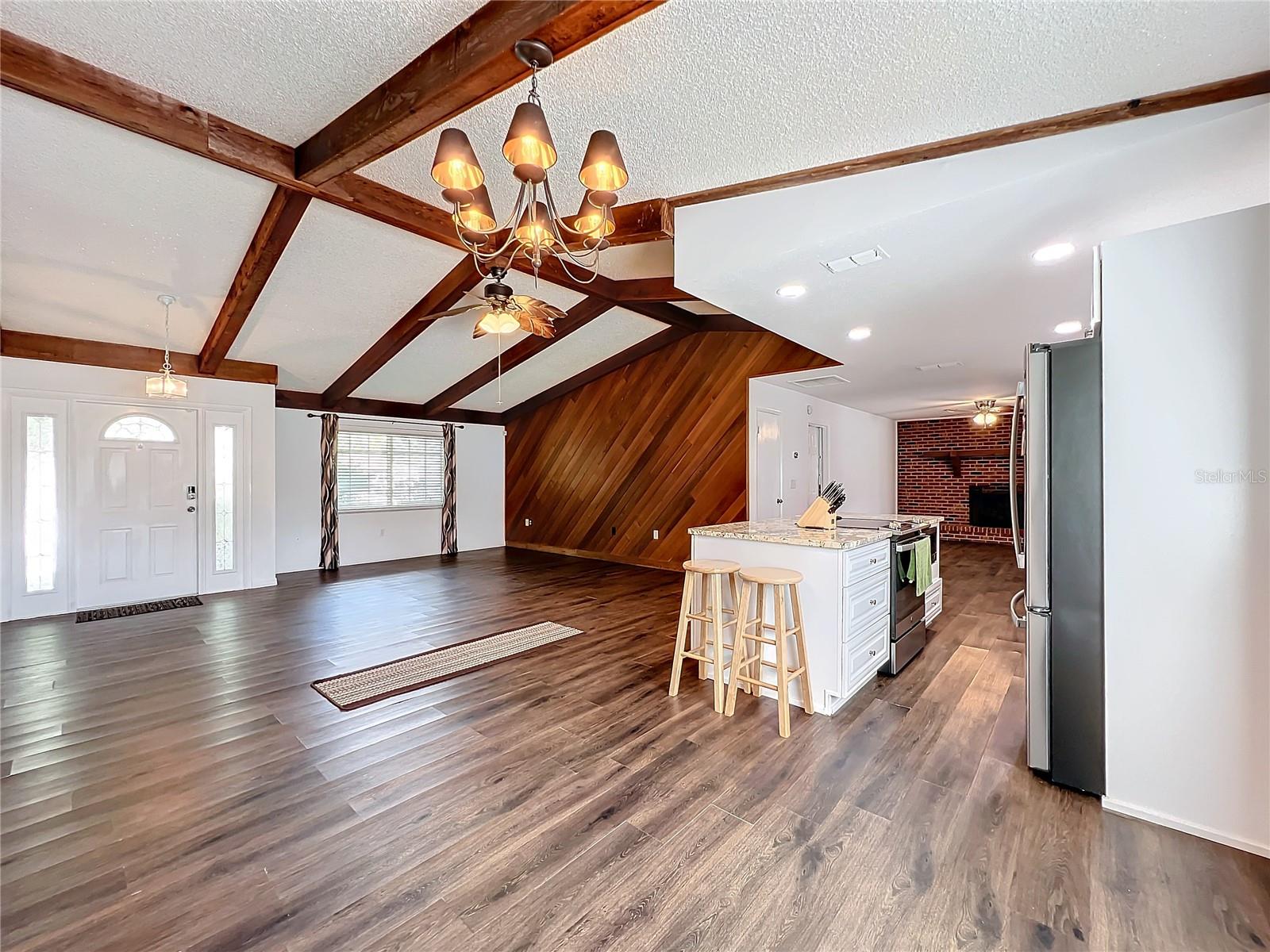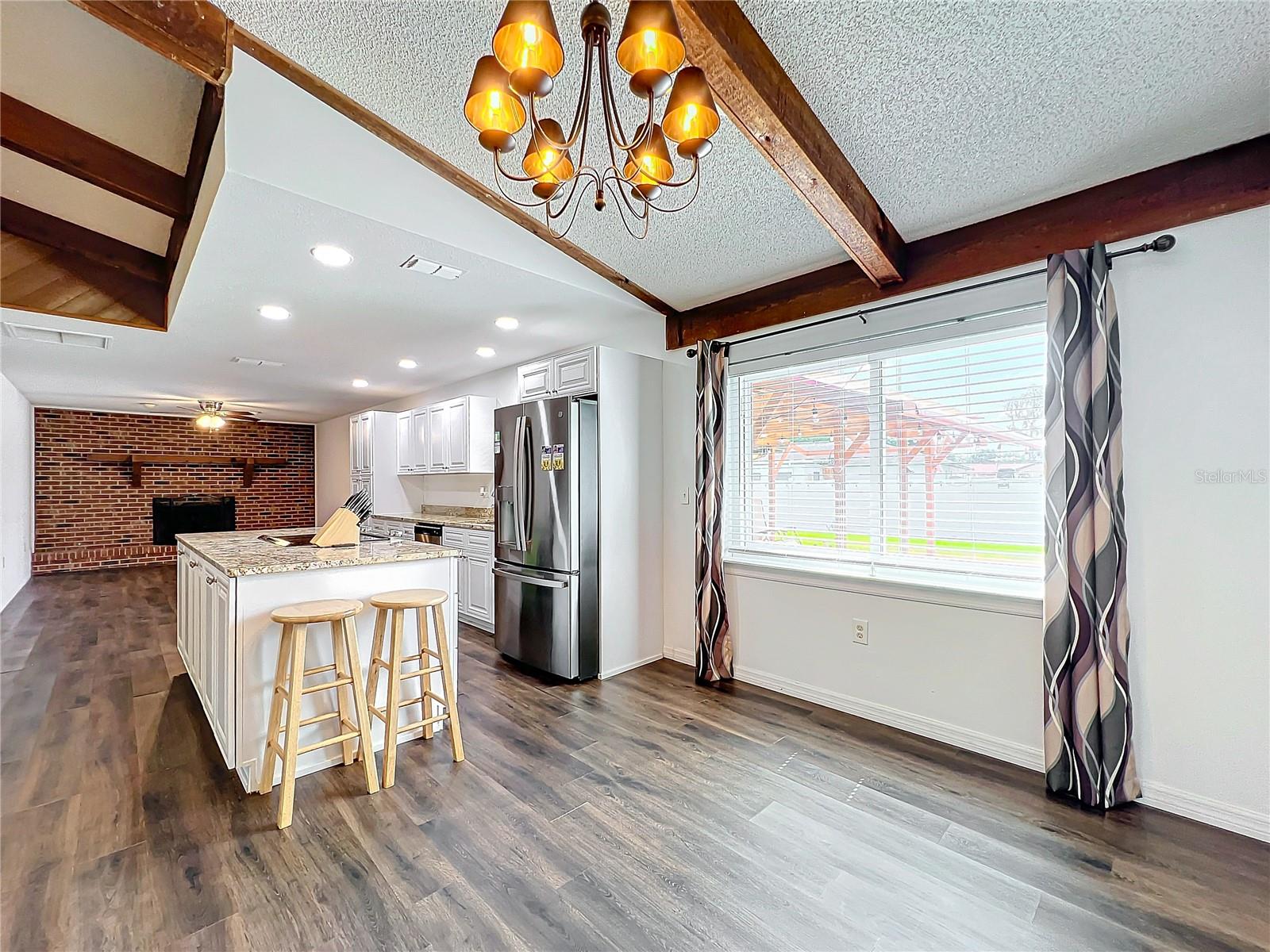 Bem-vindo à casa dos seus sonhos! Esta requintada residência de 3 quartos e 2 banheiros combina perfeitamente comodidades modernas com charme rústico. A partir do momento em que você entra, você ficará cativado pelos tetos da catedral adornados com vigas de madeira expostas, criando uma atmosfera espaçosa e convidativa. A área de estar possui uma bela lareira decorativa de tijolos, perfeita para noites aconchegantes. A planta aberta possui piso laminado por toda parte, proporcionando estilo e durabilidade. A cozinha é uma delícia para o chef, com bancadas de pedra e amplo espaço para preparação de refeições e entretenimento. Retire-se para os banheiros atualizados, projetados com acabamentos e acessórios contemporâneos para proporcionar uma experiência de spa. Cada quarto oferece conforto e estilo, garantindo uma noite de sono tranquila. Saia para o quintal cercado, um espaço ideal para animais de estimação ou atividades ao ar livre. O lindo deck traseiro é perfeito para receber convidados ou desfrutar de um café da manhã tranquilo. Esta casa é um achado raro e não durará muito. Agende hoje mesmo sua exibição e experimente a combinação perfeita de elegância e conforto!
