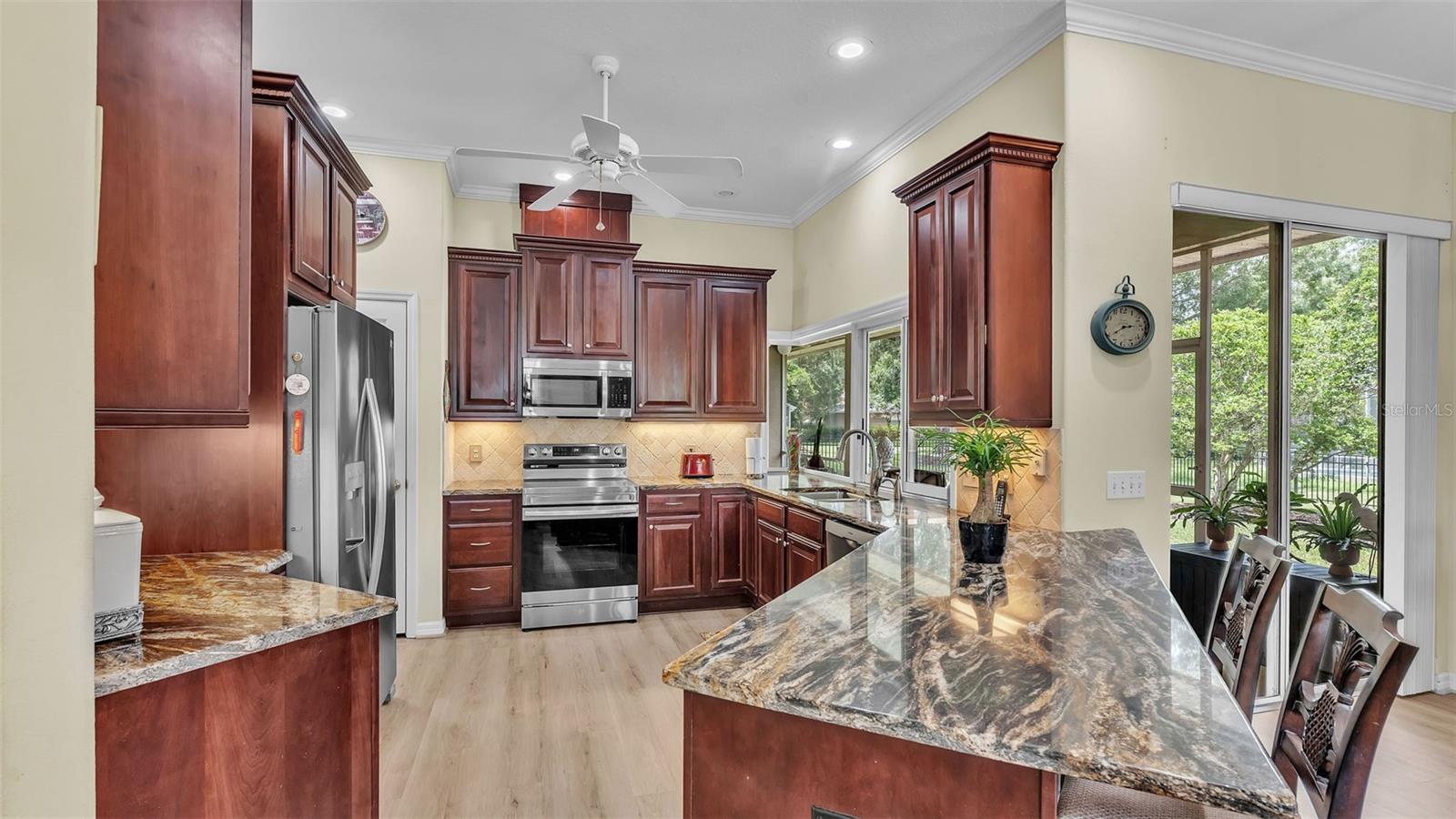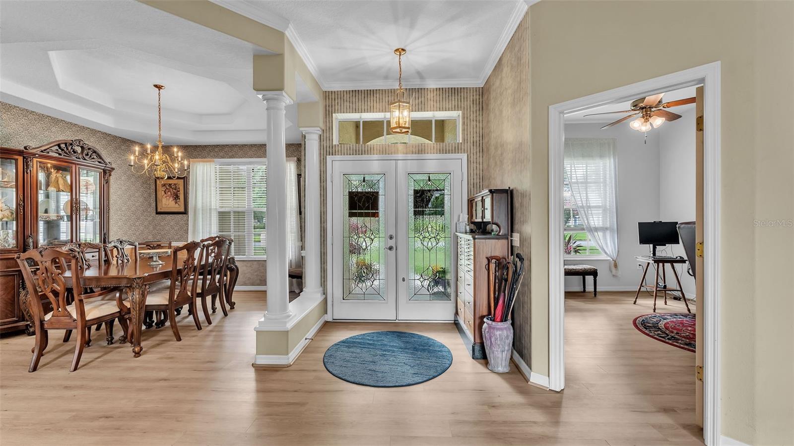 Bem -vindo ao Tribunal de Tigereye 3717. Construída pelo principal construtor de casas personalizado da Flórida Central, Ernie White, esta impressionante residência está localizada na cobiçada subdivisão de Lagos Leigh Lakes dos lagos imperiais. Situado em um lote de canto de 0,31 acres de grandes dimensões, esta casa combina magistralmente design elegante, atualizações atenciosas e uma planta versátil perfeita para a vida divertida e diária. Entre para tetos altos de 10 pés, molduras detalhadas da coroa e uma atmosfera aberta / convidativa. Esta casa oferece três quartos espaçosos, dois banheiros, uma grande área de estar dianteira que define o tom para o conforto refinado. O escritório privado oferece um espaço tranquilo para o trabalho ou relaxamento e a sala de jantar formal separada apresenta um belo teto de bandeja artesanal. A suíte primária é generosamente dimensionada com acesso privado à Lanai. As atualizações recentes incluem um novo telhado (2017), novo sistema de A/C (2019), piso de tábuas de vinil de luxo (2024) e uma cerca moderna de metal que envolve o quintal. Focando no coração da casa, a cozinha atualizada brilha com bancadas em granito, utensílios de aço inoxidável e armários altos. Ideal para refeições casuais e hóspedes. A cozinha se abre perfeitamente para uma generosa sala de família com portas de vidro deslizantes que levam ao lanai exibido, criando um retiro sereno. O espaço de estar ao ar livre é perfeito para reuniões, completo com uma janela de passagem conveniente da cozinha e amplo espaço para assentos e refeições. O quintal totalmente cercado oferece muito espaço ao ar livre, bem como segurança para animais de estimação e crianças. Esta casa combina qualidade, escala e elegância atemporal por dentro e por fora.