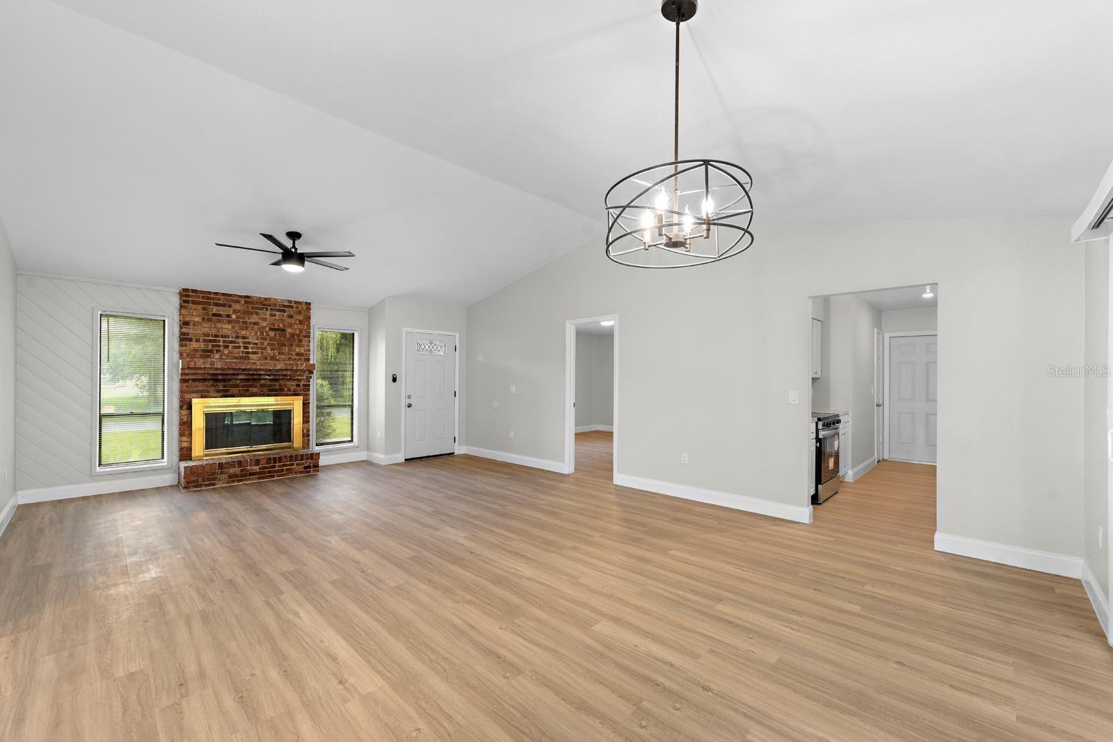 Bem-vindo a esta casa totalmente remodelada, localizada no coração do bairro Imperial Lakes, pronta para você morar! Situado em um terreno sereno e amplo com vista para o mar! Esta casa de 3 quartos e 2 banheiros oferece uma combinação perfeita de conforto moderno e beleza natural. Ao entrar, a planta aberta oferece tetos abobadados, muita luz natural, design neutro e sofisticado com piso de pranchas de vinil de luxo. Você não precisa se preocupar em substituir nada porque tudo é NOVO! Interior recém pintado, exterior e muito mais! A sala de estar e jantar combinadas oferecem todo o espaço aberto e conforto com uma lareira a lenha, criando um ambiente acolhedor e convidativo, perfeito para relaxar e entreter os hóspedes. A cozinha tem uma vista pitoresca do quintal e da água, novos eletrodomésticos de aço inoxidável e armários shaker brancos. Outras atualizações incluem, novo aquecedor de água instalado 2024, unidade de pacote AC 2024, nova porta de vidro deslizante e porta frontal, nova porta de garagem e abridor. Esta casa está em uma excelente localização, o supermercado mais próximo fica a 3,3 km de distância, a 15 minutos do centro de Lakeland, perto de muitas lojas e restaurantes! NÃO é necessário seguro contra inundações e o HOA custa apenas US $ 50 anuais. Esta será a casa inicial perfeita para você! Agende sua exibição privada hoje mesmo!