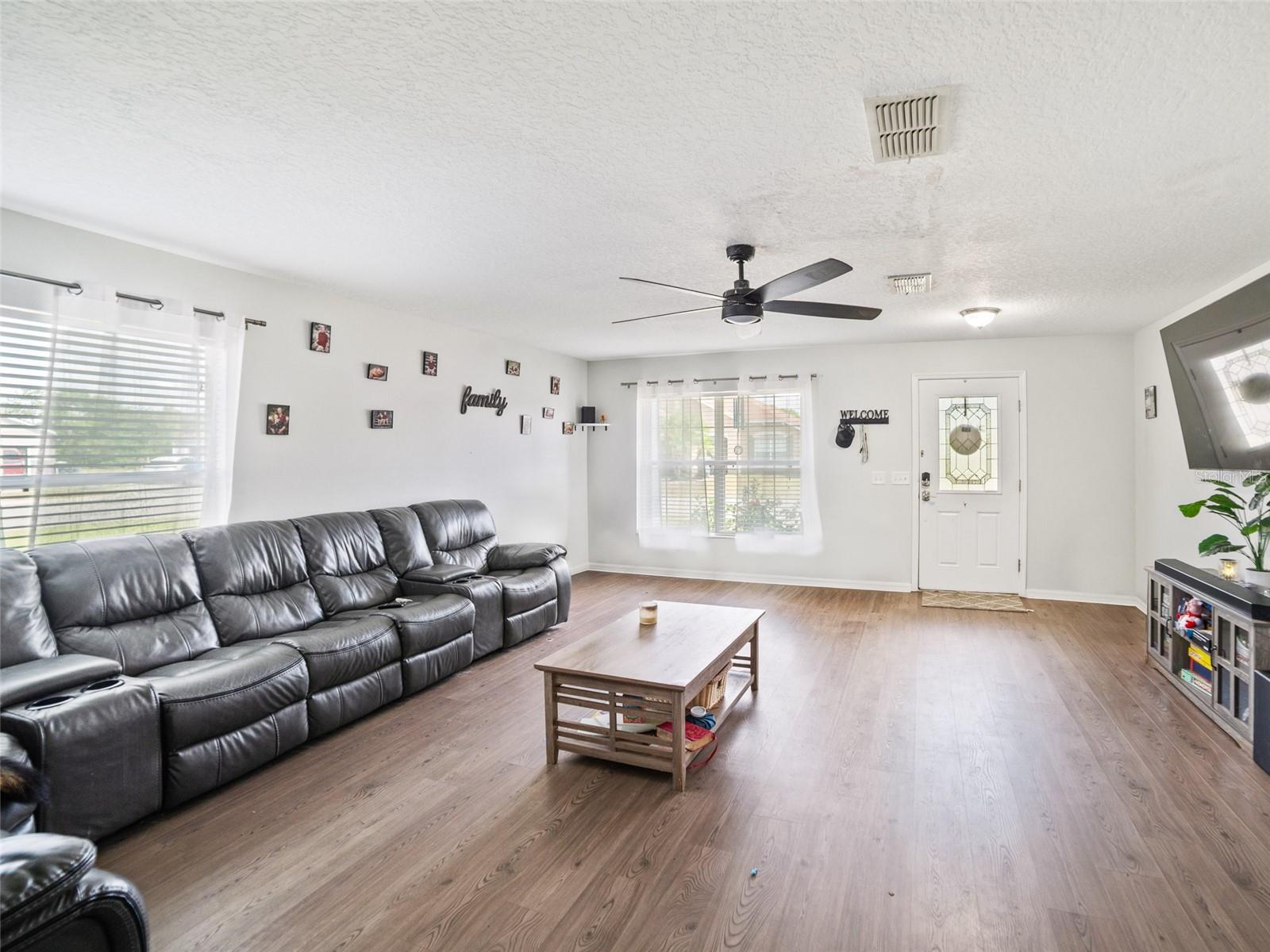 Bem-vindo a esta bela casa de 5 quartos e 2,5 banheiros, aninhada no parque muito procurado no bairro de Sunridge. Esta residência espaçosa combina conforto, estilo e funcionalidade. Entre para descobrir o impressionante piso de prancha de vinil de luxo (LVP) por toda parte, oferecendo durabilidade e apelo moderno, juntamente com uma nova unidade CA em 2024. O coração da casa é a cozinha atualizada, com bancadas elegantes, aparelhos de aço inoxidável e amplo espaço para o armário - ideal para entretenimento. As áreas de estar e jantar de conceito aberto fornecem um fluxo contínuo, enquanto janelas grandes permitem que a luz natural entre, criando uma atmosfera brilhante e convidativa. No andar de cima, você encontrará quatro quartos de tamanho generoso, incluindo uma suíte primária serena completa com um banheiro privativo e um closet, além de um den-fechado atualmente usado como um quinto quarto. Diretamente da cozinha/sala de jantar, você encontrará uma Lanai totalmente fechada. Lá fora, desfrute de um espaçoso quintal pronto para relaxar ou brincar, juntamente com o acesso aos parques e trilhas para caminhada da comunidade. Convenientemente localizado próximo às compras, jantar, esta casa oferece o melhor dos subúrbios que vivem com atualizações modernas.
