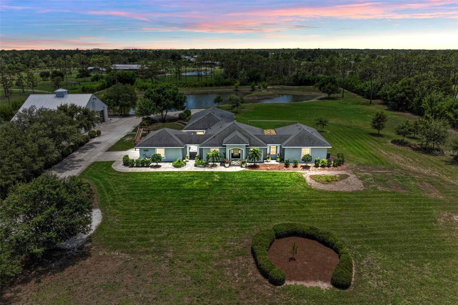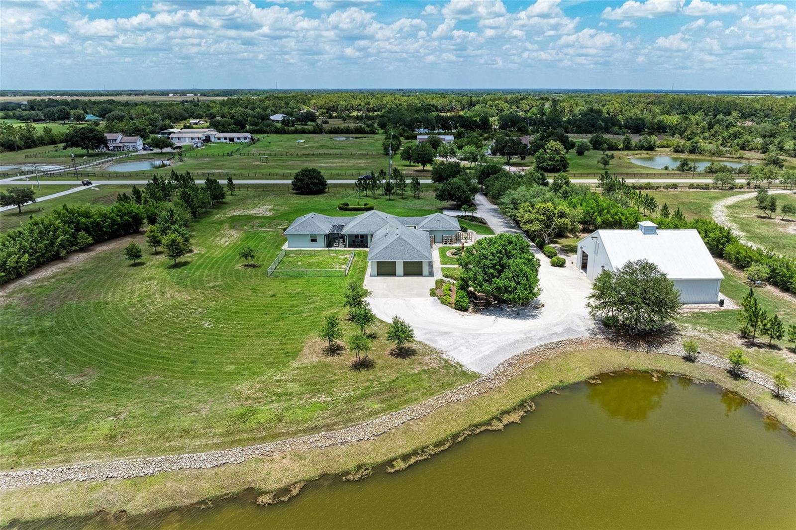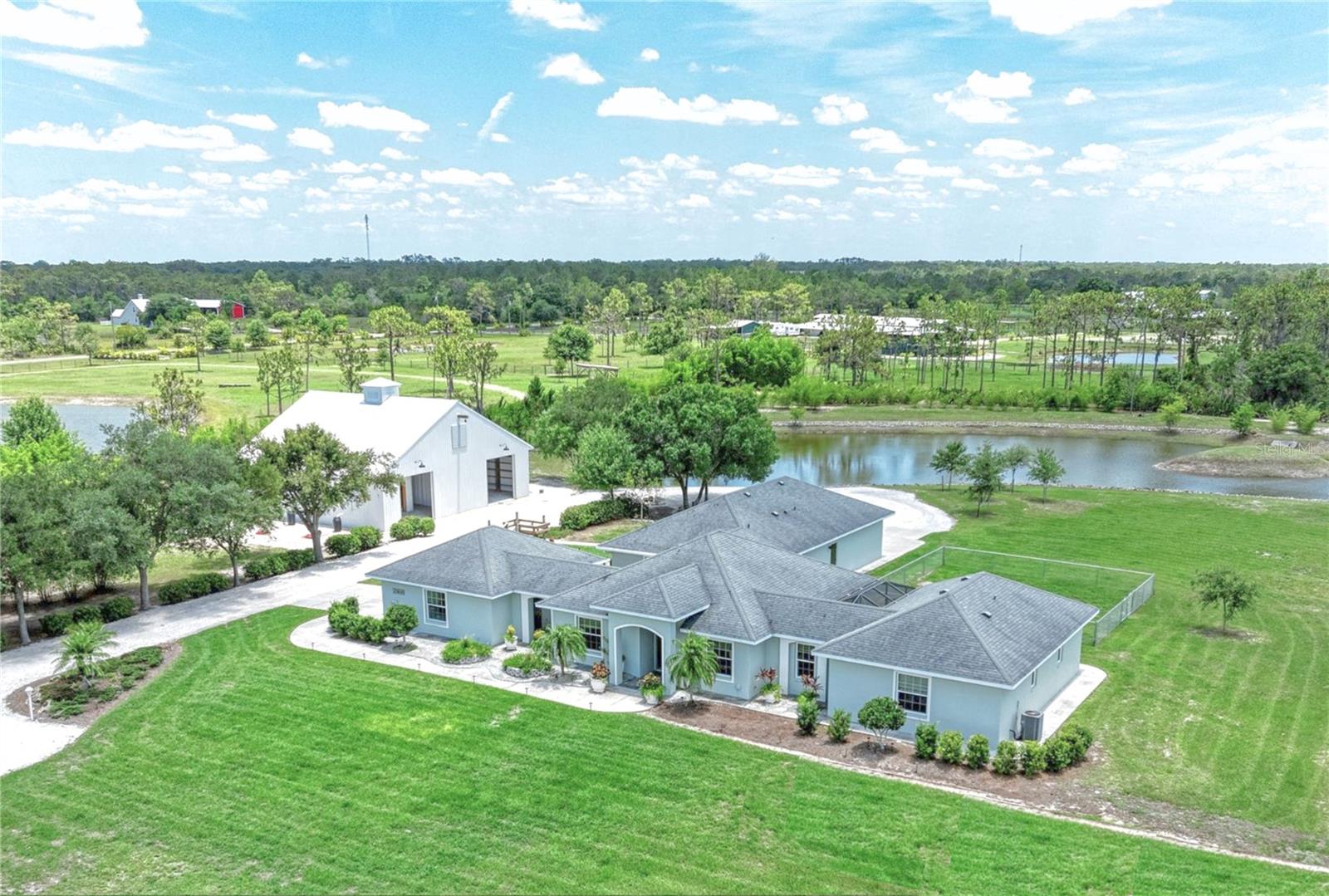 Entre no luxo com esta casa impecavelmente atualizada, situada em mais de seis acres de terreno pitoresco, ostentando um grande lago deslumbrante e um espaçoso celeiro fechado de 2.800 pés quadrados com três portas de garagem 12x12. Perfeito para abrigar um trailer, barco ou utilizar para estacionamento extra. Facilmente convertível em estábulo equestre, esta propriedade oferece infinitas possibilidades para o comprador mais exigente. Ao entrar pelo portão da frente, privacidade e elegância o cumprimentam a cada passo. A entrada de automóveis é ladeada por carvalhos maduros e uma cerca viva de bambu oferece uma tela de privacidade para todo o quintal. O extenso desenvolvimento de terrenos criou esta propriedade alta e seca para desfrutar. A casa recentemente renovada apresenta janelas de impacto e um novo telhado, garantindo estilo e durabilidade. O design de conceito aberto transita perfeitamente para a convidativa sala de estar, ideal para noites relaxantes e reuniões animadas. Receba com estilo na sala de jantar iluminada e arejada, completa com grandes janelas que inundam o espaço com luz natural. A cozinha possui armários de madeira maciça, bancadas de granito requintadas com borda arredondada e eletrodomésticos de aço inoxidável. O fogão de indução Fisher & Paykel de última geração e o exaustor comercial Viking tornam cozinhar um prazer. A despensa adjacente do chef, completa com geladeira e cafeteria privativa, atende a todas as necessidades culinárias. Retire-se para os quartos luxuosos, cada um com banheiro privativo para o máximo conforto e conveniência. A ampla suíte master se estende por mais de 1.000 pés quadrados e possui uma sala de estar, dois grandes closets e um banheiro de tirar o fôlego com banheira de ferro fundido Kohler Tea-for-Two e box amplo. Os destaques adicionais incluem um segundo quarto principal com banheira com pés, box amplo e entrada privativa, um terceiro quarto com armários personalizados e banheiro privativo, e uma sala bônus versátil perfeita para uma mesa de sinuca, academia ou espaço de artesanato. O piso de cerâmica italiana adiciona um toque elegante a toda a casa, enquanto o amplo armazenamento garante uma organização sem esforço. Do lado de fora, a entrada de automóveis envolve a enorme garagem traseira para 2 carros, com portas de garagem de 2,5 metros de altura para acomodar veículos maiores e amplo espaço para estacionar um carrinho de golfe ou quadriciclo. Desfrute do ambiente sereno a partir dos pátios privados, que oferecem o local perfeito para refeições ao ar livre ou simplesmente para apreciar as vistas tranquilas. Com sua mistura incomparável de luxo, conforto e funcionalidade, esta deslumbrante casa apresenta uma rara oportunidade de viver o estilo de vida dos seus sonhos. O design da casa, com cada suíte com entrada privativa, oferece possibilidades para famílias multigeracionais. Não perca a chance de personalizar esta propriedade requintada. A casa está com preço de venda. Agende sua exibição privada hoje mesmo!
