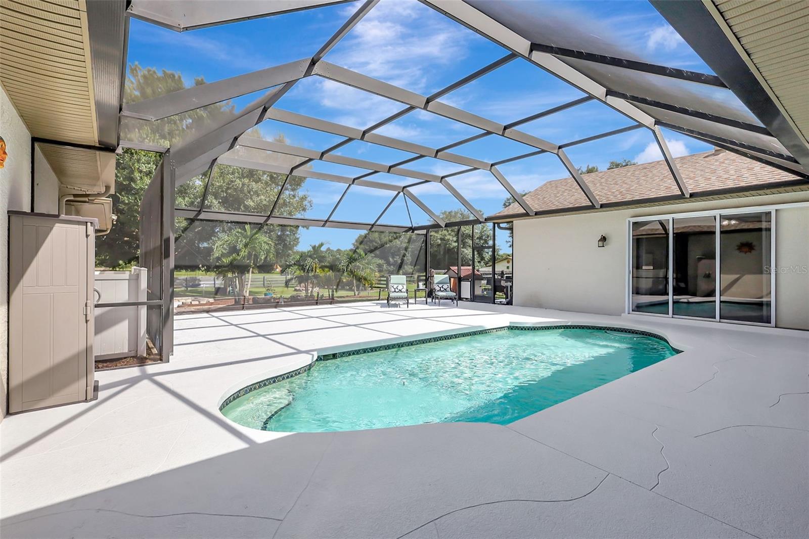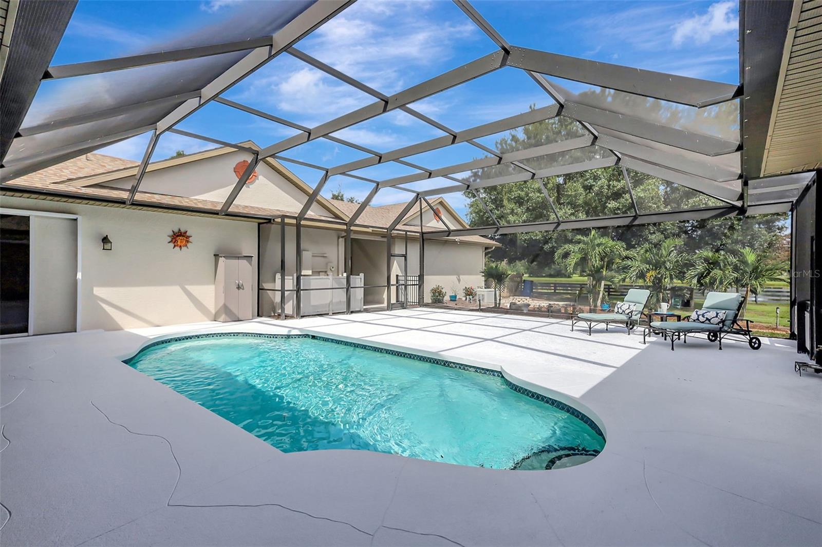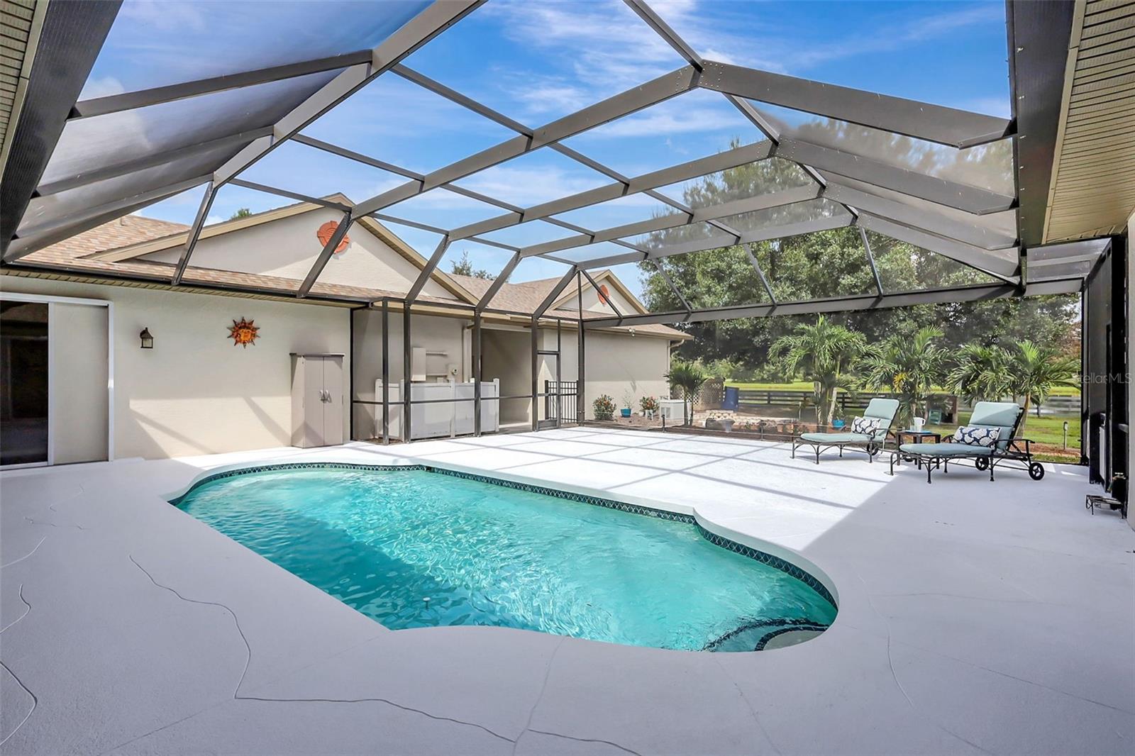 Excelência equestre encontrada no distrito escolar de Lakewood Ranch. A comunidade Saddlebag Creek é uma comunidade maior com trilhas equestres dentro do bairro. Este amplo lote fechado e totalmente cercado de 6 acres possui diversas pastagens separadas e fechadas para uma variedade de animais. Podem até ser galinhas, se você gosta de ovos frescos no café da manhã. Um cenário pitoresco para esta requintada casa imobiliária. Depois de passar pelo portão, há um caminho pavimentado da rua até a casa, incluindo áreas de estacionamento adicionais para muitos veículos. A garagem é uma carga lateral profunda para dois carros. A calçada de pavimentação leva você do caminho até a frente da casa. Esta casa foi recentemente pintada por dentro e por fora. Ao entrar, você entra em um encantador corredor de azulejos de cerâmica com um lindo vitral. No lado direito, um quarto maior que tem espaço suficiente para uma área de estar e uma mesa embutida. Mais à direita, um banheiro compartilhado atualizado com pia dupla, balcão longo de granito e chuveiro/banheira. Continuando no corredor até uma sala de jantar/sala flexível com teto de caixotões coroados, piso com longos pisos de tábuas de madeira, com controles deslizantes de vidro à esquerda, olhando através da varanda coberta, piscina e além, para um lago comunitário. À direita, portas francesas de vidro com persianas que dão para uma grande fundação/pátio de cimento e um lago ao longe. Continuando a cozinha atualizada tem um charmoso balcão de café da manhã, bancada alta de quartzo, armários cinza com tampo em coroa, fogão a gás SS de seis bocas, backsplash de azulejos, pia e piso de cerâmica. Nas traseiras da cozinha, uma despensa/despensa com fecho de porta deslizante com máquina de lavar e secar roupa. Virando para um corredor com piso de cerâmica, uma suíte de sogros com outro banheiro atualizado com duas pias separadas e um box amplo de azulejos com janela, permitindo a entrada de luz natural. Além disso, uma sala de estar/flexível acarpetada maior com controle deslizante com vista para o piscina e varanda, e pela porta para um segundo quarto com banheiro acarpetado. Voltando para a porta da frente e corredor e virando à esquerda para um corredor de azulejos, que também tem uma corrediça de vidro com vista para a varanda e piscina, com um terceiro quarto com uma janela maior para a frente da casa. Continuando por este corredor até a suíte Master e o maior quarto da casa, com um banheiro principal atualizado com duas pias e chuveiro do chão ao teto com entrada de vidro. Lanai tem espaço extra para sentar ao sol ou à noite, até as casinhas de cachorro têm ar condicionado. Persianas por toda parte, 2 novos sistemas HVAC, incluindo desumidificador, purificador/purificador de ar, além de casa inteligente para garagem, fechaduras/câmeras e portão. Esta propriedade tem quatro pastagens vedadas, três das quais são maiores, dois lagos na propriedade e mais pequenos com uma casa de cabras, com uma 5ª área vedada adicional de menor dimensão. A propriedade tem um paisagismo maravilhoso em toda a área cultivada e cobertura para quaisquer animais que você possa ter no local. Adjacente a esta propriedade encontra-se um dos lagos comunitários e encontra-se fora da vedação desta propriedade. Saddlebag Creek fica a poucos minutos de Lakewood Ranch e Loraine Road, com mercearias, restaurantes e necessidades simples no fim da rua. Embora o endereço marque a propriedade na cidade de Myakka, o bairro fica perto da área de Lakewood Ranch, bem como entre Sarasota e St. Pete, uma vez na rodovia. Temos algumas das melhores praias do Golfo do México, com muitos dizendo que são as melhores do país. Se você procura tranquilidade, privacidade, capacidade de ter animais de vários tipos e viver um pouco daquela vida livre na Flórida... esta é a casa dos seus sonhos.
