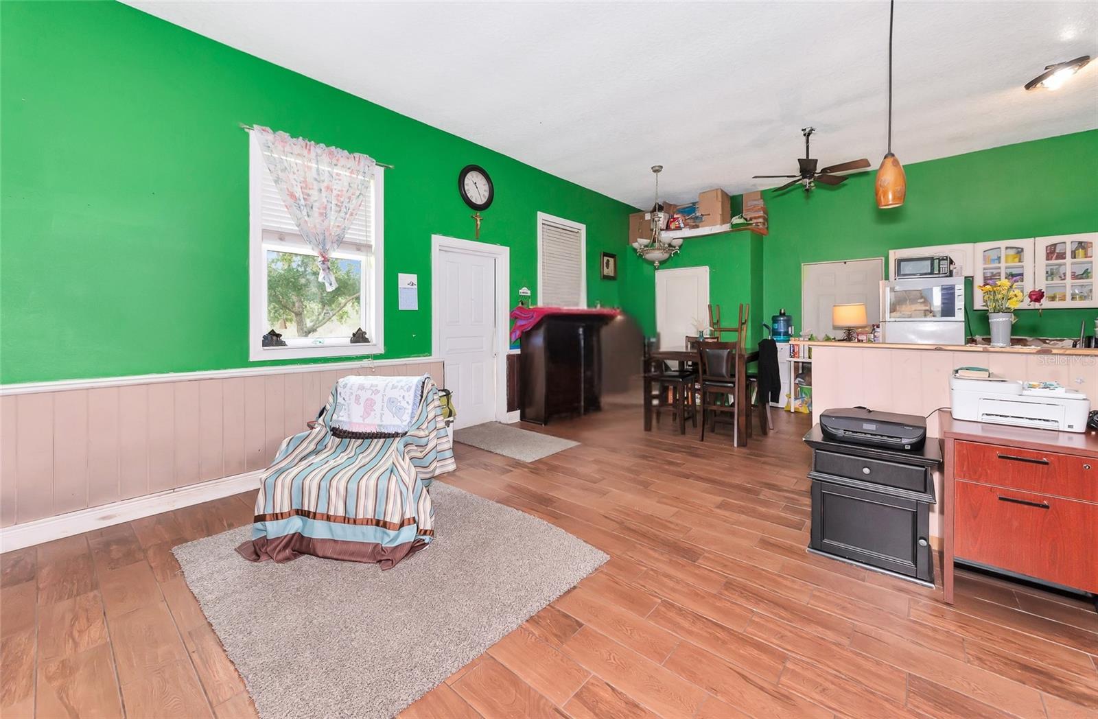 Agora NOVO Telhado...A casa está vazia e fácil de mostrar! 4,81 belos hectares perto do final de uma estrada de terra privada, área extremamente tranquila. Este terreno está maioritariamente limpo e vedado com algumas árvores e um grande lago que anteriormente estava abastecido com peixes. Há um anexo/celeiro metálico de 5.000 pés quadrados com um escritório interno com eletricidade disponível para o edifício. A casa na propriedade tem 960 pés quadrados com 1 quarto, 1 banheiro, cozinha aberta e combinação de sala de jantar/estar e um móvel de 1 quarto e 1 banheiro. A casa tem um banheiro amplo com bandeja no teto na banheira e chuveiro grande. A casa pode ser facilmente reconfigurada para ter mais de um quarto. Atrás da casa, a casa móvel serviu como escritório comercial e possui também um quarto e um banheiro. O anexo de metal de 5.000 pés quadrados é chamado de hangar e pode ser um enorme celeiro, oficina ou um enorme escritório. Por favor, marque sua consulta para ver esta área única da cidade de Myakka, cheia de possibilidades.