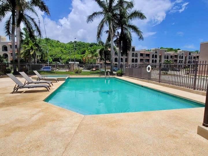 Condomínio de três quartos e dois banheiros localizado em Cala de Húcares, Naguabo, com vista para o mar e acesso direto à praia. Situada no segundo andar, a unidade possui aproximadamente 1.257 pés quadrados, uma espaçosa varanda coberta e um layout funcional. O condomínio fechado oferece segurança 24 horas por dia, 7 dias por semana, piscina, mirante, quadra de tênis, áreas de lazer e acesso controlado à praia. Duas vagas de estacionamento atribuídas incluídas. Localização privilegiada perto do Naguabo Malecón, restaurantes e áreas de lazer. Ideal como residência principal, segunda habitação ou investimento; aluguéis de curto prazo permitidos. Preço abaixo do valor avaliado.
