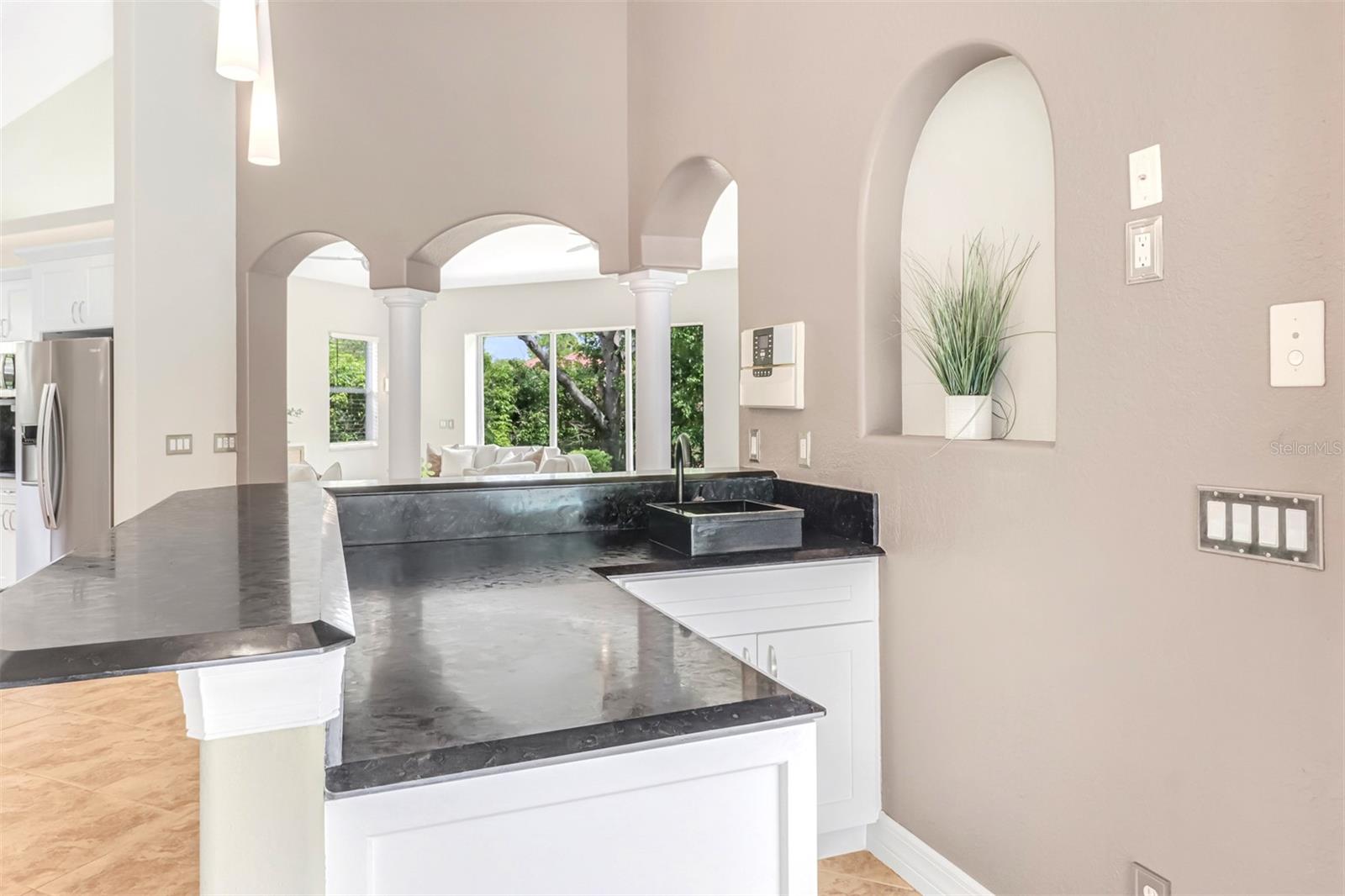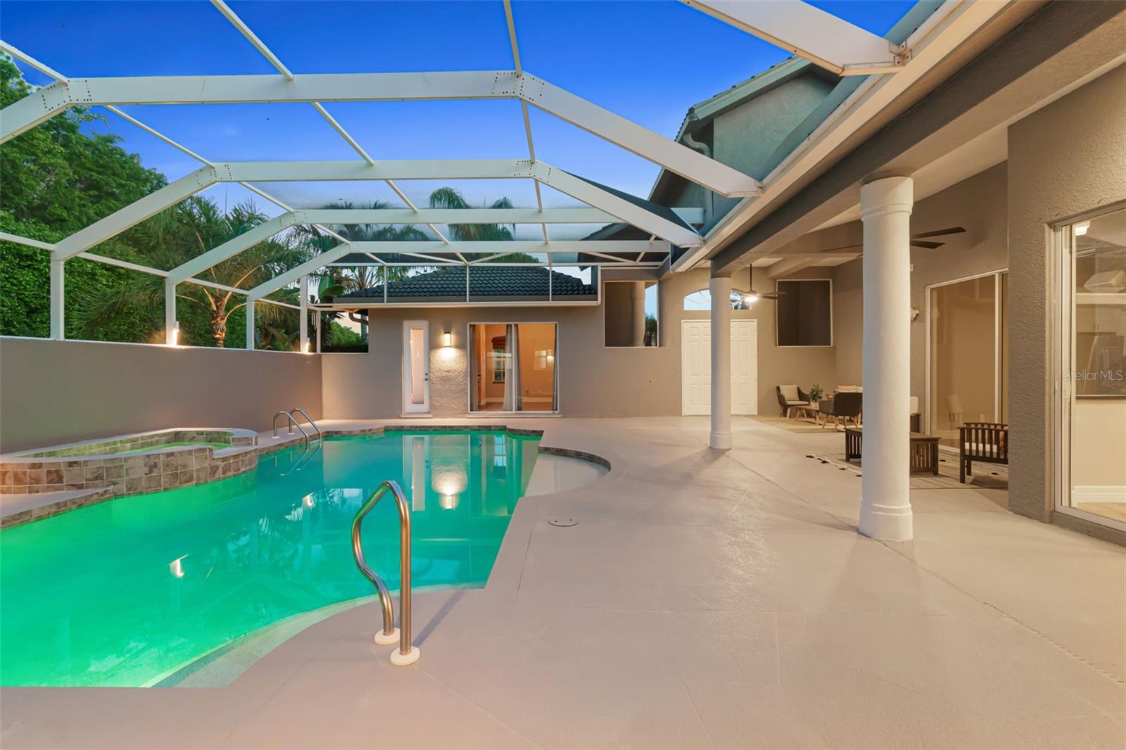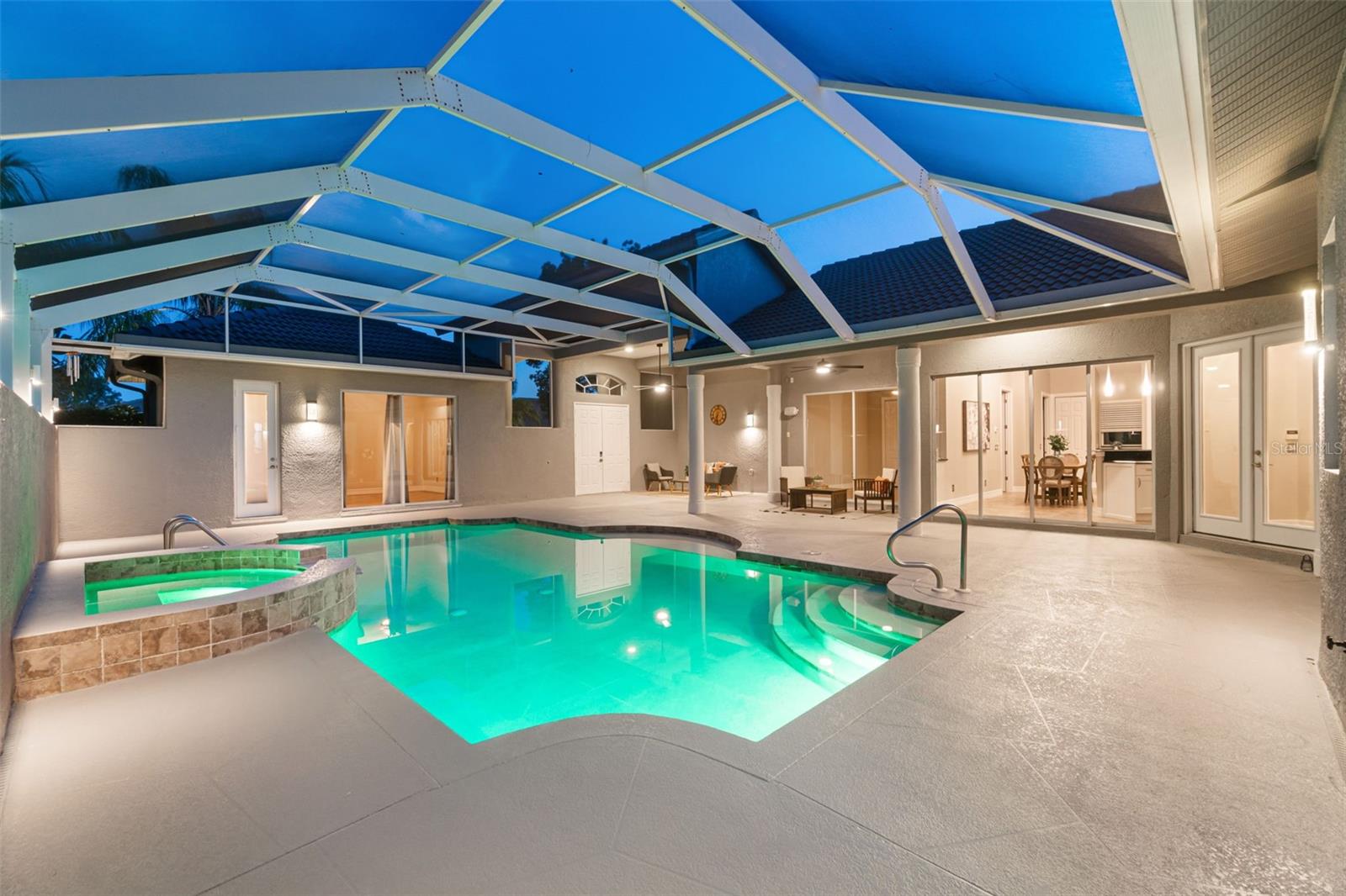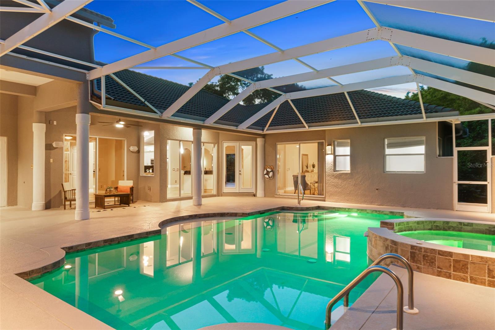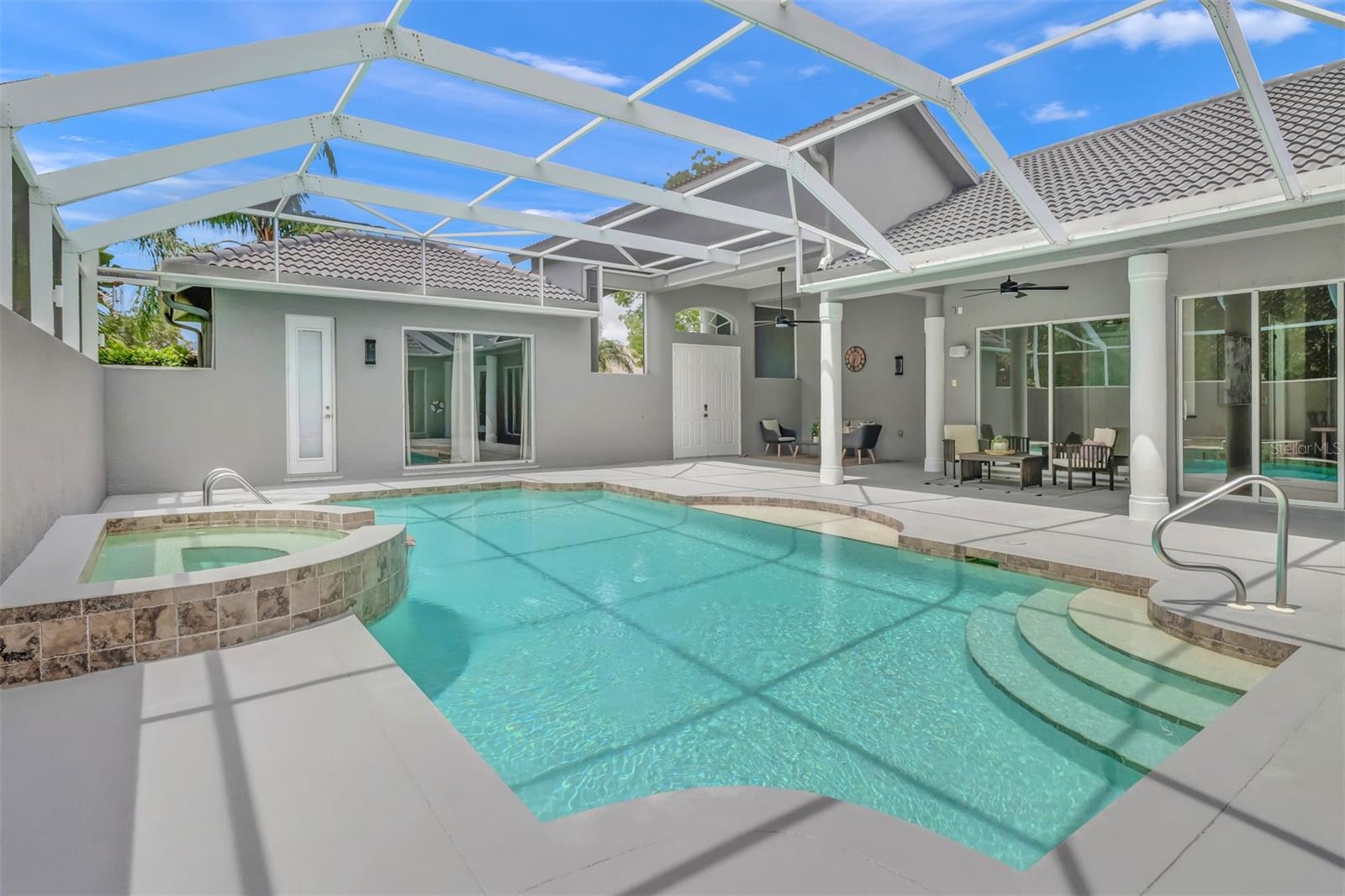 Casa luxuosa no prestigiado condomínio fechado de Wilshire Lakes Bem-vindo à casa dos seus sonhos na altamente desejável comunidade de Wilshire Lakes. Esta residência requintada recebe você com um design de pátio deslumbrante, acessível a partir de vários cômodos da casa. No seu coração encontra-se uma piscina serena, iluminada e aquecida e um spa com cascata - perfeito para relaxar ou se divertir. O pátio protegido oferece sol e sombra, complementado por novo aquecimento da piscina, filtragem, iluminação e ventiladores de teto para criar o melhor oásis durante todo o ano. Entre para descobrir um layout contemporâneo lindamente conservado, com 4 quartos espaçosos e 3,5 banheiros. A ampla cozinha aberta impressiona com tetos altos abobadados, novos armários apresentando raras bancadas de granito brasileiro com bordas chanfradas, ferragens e iluminação marcantes e um bar idealmente posicionado para conversas. Os eletrodomésticos incluem uma torneira para encher panelas no fogão, micro-ondas, geladeira e lava-louças nova, além de uma área de mesa embutida e despensa para amplo armazenamento. Construída em 2005, esta casa dispõe de luz natural abundante através de janelas extras que emolduram vistas tranquilas. As portas francesas abrem da varanda para um lavatório ao lado da piscina com detalhes artísticos em azulejos e uma pia de pedestal. Passando por grandes pilares e tetos abobadados, a sala de estar oferece um retiro tranquilo com um paisagismo exuberante e privativo e vista para o lago como pano de fundo. A suíte principal serve como um verdadeiro santuário, com banheiro privativo com chuveiro de azulejos, banheira de hidromassagem, pias duplas, penteadeira, closet grande, armário de roupa de cama e vaso sanitário privativo. As portas deslizantes levam diretamente para o pátio e para uma varanda lateral privativa ou para uma pista de cachorro. Uma espaçosa lavanderia com bancada de granito, armários generosos, lavadora/secadora e pia se conecta à garagem para dois carros, que inclui venezianas e acesso ao sótão. O pátio também oferece uma cabana privativa para hóspedes ou suíte para sogros com entrada separada, cozinha compacta completa (fogão, geladeira, pia e armários), banheiro completo, armário e sua própria unidade de ar condicionado - perfeita para hóspedes ou familiares. O exterior foi recentemente pintado e paisagístico profissionalmente, completo com iluminação, novo gramado nos pátios frontal e lateral e um novo telhado (2019). Localizada em um terreno de esquina privado, esta casa oferece baixas taxas de HOA, acesso a escolas com classificação “A” e proximidade conveniente às lojas, restaurantes, parques do norte de Nápoles e às belas praias do Golfo. Não perca a oportunidade de experimentar o que há de melhor na vida de luxo - agende hoje mesmo seu tour privado por esta excepcional casa em Wilshire Lakes!