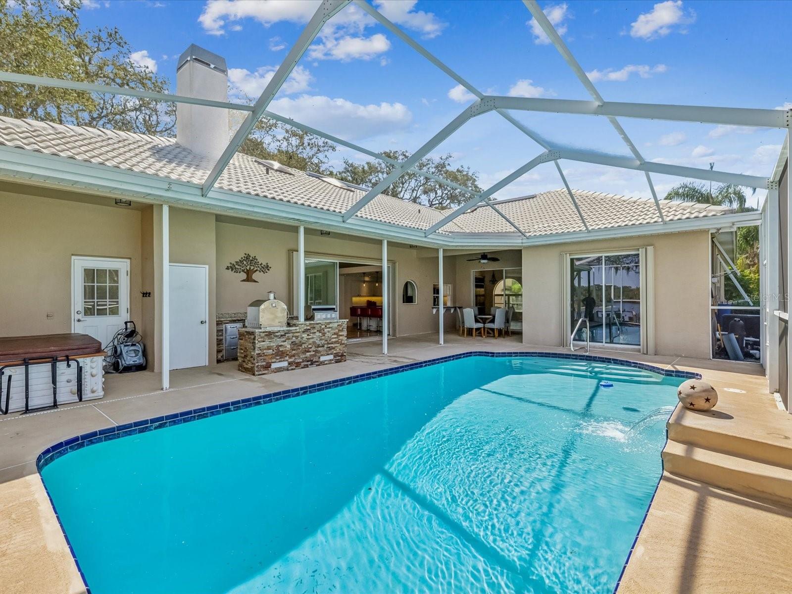 Alto e seco, acesso do Golfo !! Esta impressionante casa de piscina à beira-mar está situada em um beco sem saída com mais de meio hectare de paisagem lindamente bem cuidada. Localizado na comunidade fechada exclusiva e muito privada da Riviera, sua fatia do paraíso aguarda! A casa possui não uma, mas duas docas compostas, onde você pode desfrutar de vistas deslumbrantes do rio Anclote e do pôr do sol incrível. O elevador coberto de 8000 lb está pronto para lançar seu barco para as docas mundialmente famosas da Tarpon Springs, que estão a uma curta viagem de barco com vários restaurantes à beira-mar. A grande ilha da cozinha com aparelhos de ponta e a Lanai totalmente exibida fará com que entretenize uma brisa. Esta casa de um andar possui um layout dividido para maior privacidade. A suíte master apresenta armários dele e dela e um espaçoso banho de suíte. Existem três quartos generosos adicionais. Existem muitos extras para listar-apenas para citar alguns, há uma piscina aquecida, gerador de casa inteira, purificador de água, um poço para irrigação e uma lareira a lenha na grande sala familiar. Há uma cozinha ao ar livre com churrasco, fumante/forno de pizza construído em 2023. Desfrute das noites mais frias na banheira de hidromassagem instalada em 2023. Você pode assistir a uma grande variedade de animais selvagens da sua doca privada ou da doca da comunidade. Os peixes -boi, golfinhos, raios Mata, falcões, falcões e águias são apenas alguns exemplos da vida selvagem que você pode encontrar no seu quintal. Você também pode gostar de pescar em sua própria doca. A comunidade também fornece uma rampa de barco particular para o uso dos proprietários. Zoneado para excelentes escolas: Trinity Oaks Elementary, Seven Springs Middle e Mitchell HS. Perto de compras, praias e o aeroporto de Tampa fica a apenas 45 minutos. A casa sofreu grandes furacões nos últimos dois anos, sem absolutamente nenhuma inundação nem danos. Carregador de carros elétricos e galpões na garagem, eles não transmitem. Agende uma exibição particular hoje e faça desta sua nova casa!