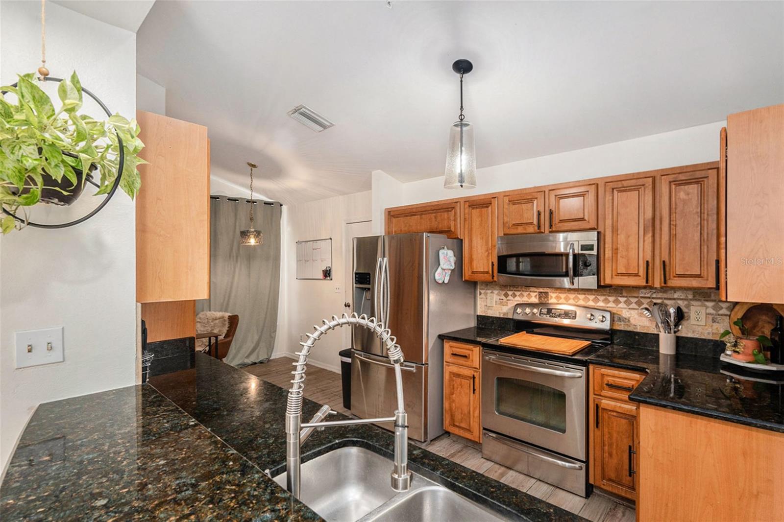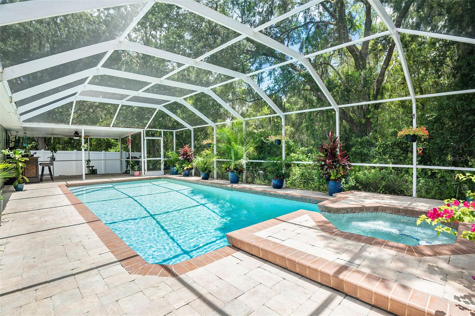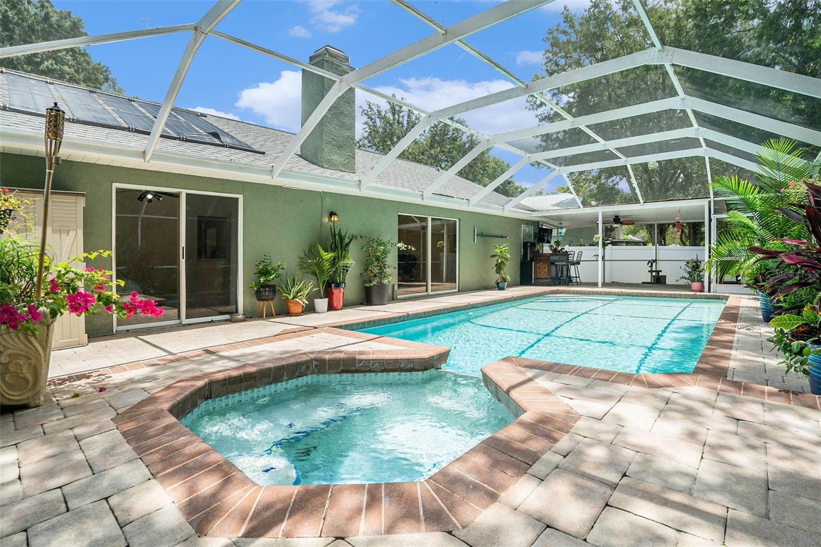 Bem -vindo à comunidade Woods em River Ridge, aninhada ao lado do Starkey Wilderness Park. Esta casa bem mantida oferece 3 quartos e 2 banheiros com um layout de quarto dividido desejável. Após a entrada, tetos altos e uma clarabóia iluminam o vestíbulo. As portas deslizantes de vidro levam a um quintal privado com uma piscina solar aquecida, spa elevada e pavimentador de pátio, ideal para relaxar. A suíte do proprietário inclui acesso direto à área da piscina, um banheiro privativo atualizado e um closet personalizado. Os quartos 2 e 3 compartilham um banheiro atualizado. A cozinha possui armários personalizados, bancadas em granito e utensílios de aço inoxidável. Uma lareira a lenha aprimora a área de vida e jantar aberta. Do lado de fora, um quintal cercado com portões laterais largos acomoda a privacidade e inclui uma garagem de dois carros extra grande com amplo armazenamento. Esta casa, que foi submetida a reparo de assentamentos em 2004, combina conforto moderno com um ambiente pacífico.