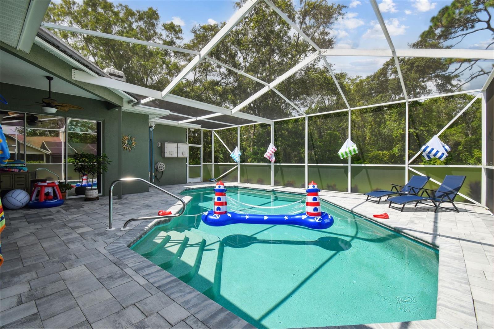 Atualizações recentes em 2023; Novo telhado, novo aquecedor de água sem tanque, novos pavimentos de piscina, nova tela de vidro Florida, piscina convertida para água salgada, nova lavadora, nova secadora e novo sistema HVAC. UAU! Esta é uma oportunidade RARA de morar em uma casa adorável e bem conservada no bairro exclusivo de GRACEWOOD em RIVER RIDGE e em seu cobiçado distrito escolar. A poucos minutos de distância fica o STARKEY WILDERNESS PRESERVE PARK e o RIVER RIDGE GOLF & COUNTRY CLUB. Existem taxas BAIXAS de HOA de apenas $ 564,00 anuais, que incluem coleta de lixo. Esta casa tem 4 QUARTOS, 3 BANHEIROS, SALA DE DEN/BÔNUS e GARAGEM PARA 3 CARROS. Esta casa foi construída com SOM SURROUND, ESTORES PERSONALIZADAS, PRATELEIRAS DE PLANTAS. A sala familiar dispõe de uma LAREIRA A LENHA, PISO DE MADEIRA e DESLIZADORES TRIPLOS que se abrem para a GRANDE LANAI COBERTA e PISCINA de água salgada!!! A piscina foi recapeada em 2012 com PEBBLE TEC e oferece VISTA MADEIRA! Há muito quintal neste lote de quase 1/2 ACRE. O sistema de sprinklers está em um POÇO para manter sua conta de água baixa!