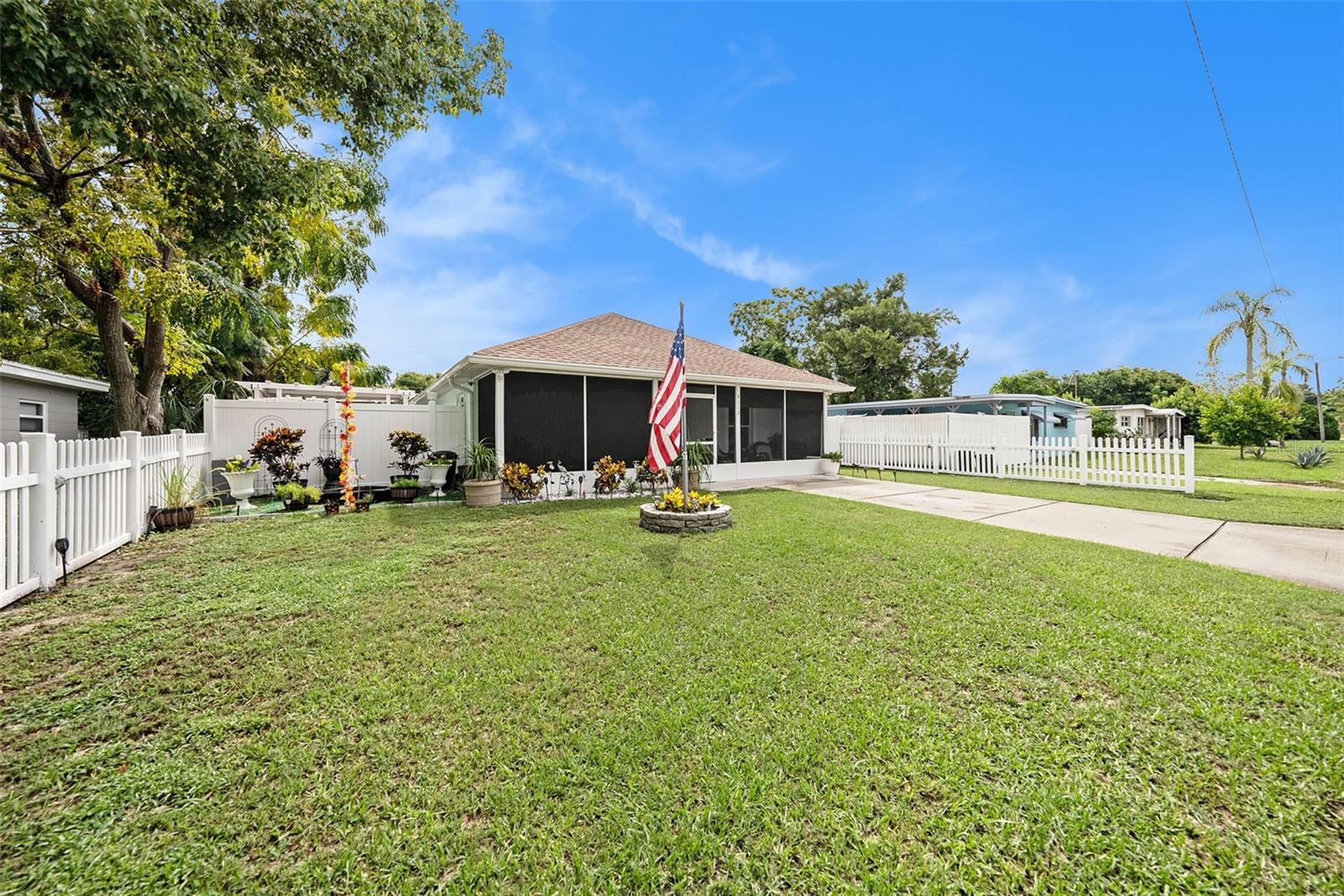 ÓTIMO ESTADO APÓS HELENE E MILTON. Esta casa MOVE IN READY está pronta para ocupação imediata. Esta encantadora casa de 2 quartos e 2 banheiros oferece aproximadamente 1.140 pés quadrados de área útil (conforme construtor). A acolhedora varanda frontal coberta leva você a uma grande sala espaçosa e de conceito aberto, perfeita para entretenimento, com área de jantar designada. A cozinha possui amplo armário e balcão, completa com geladeira, fogão, micro-ondas embutido e balcão central para café da manhã com pia dupla e despensa, todos com vista para a grande sala e área de jantar. A suíte master inclui banheiro privativo com chuveiro e closet. O segundo quarto tem armário duplo e o banheiro de hóspedes oferece ducha vertical. Uma conveniente despensa interna com conexões para lavadora e secadora adiciona funcionalidade. Armário de roupa de cama e acesso traseiro ao quintal completam a planta. Não é necessário seguro contra inundações ou taxas de HOA! Não perca o galpão em seu quintal TOTALMENTE CERCADO para itens de quintal, armazenamento, etc. Desfrute de compras, restaurantes, parques, praias e recreação nas proximidades, com fácil acesso ao transporte público.