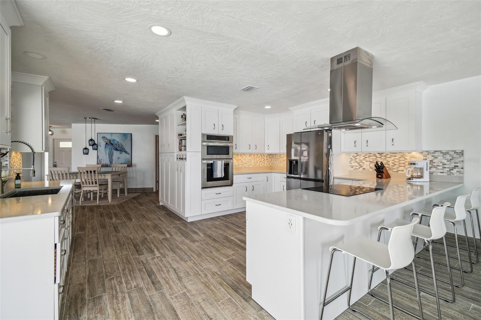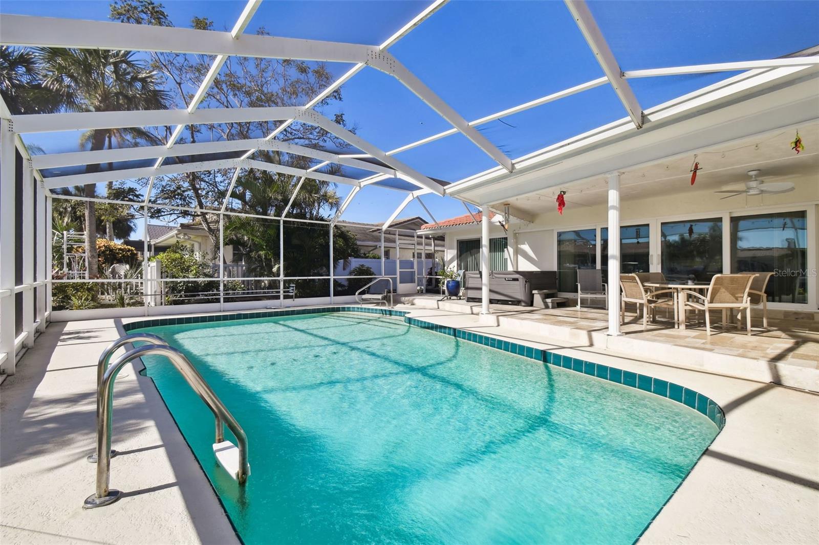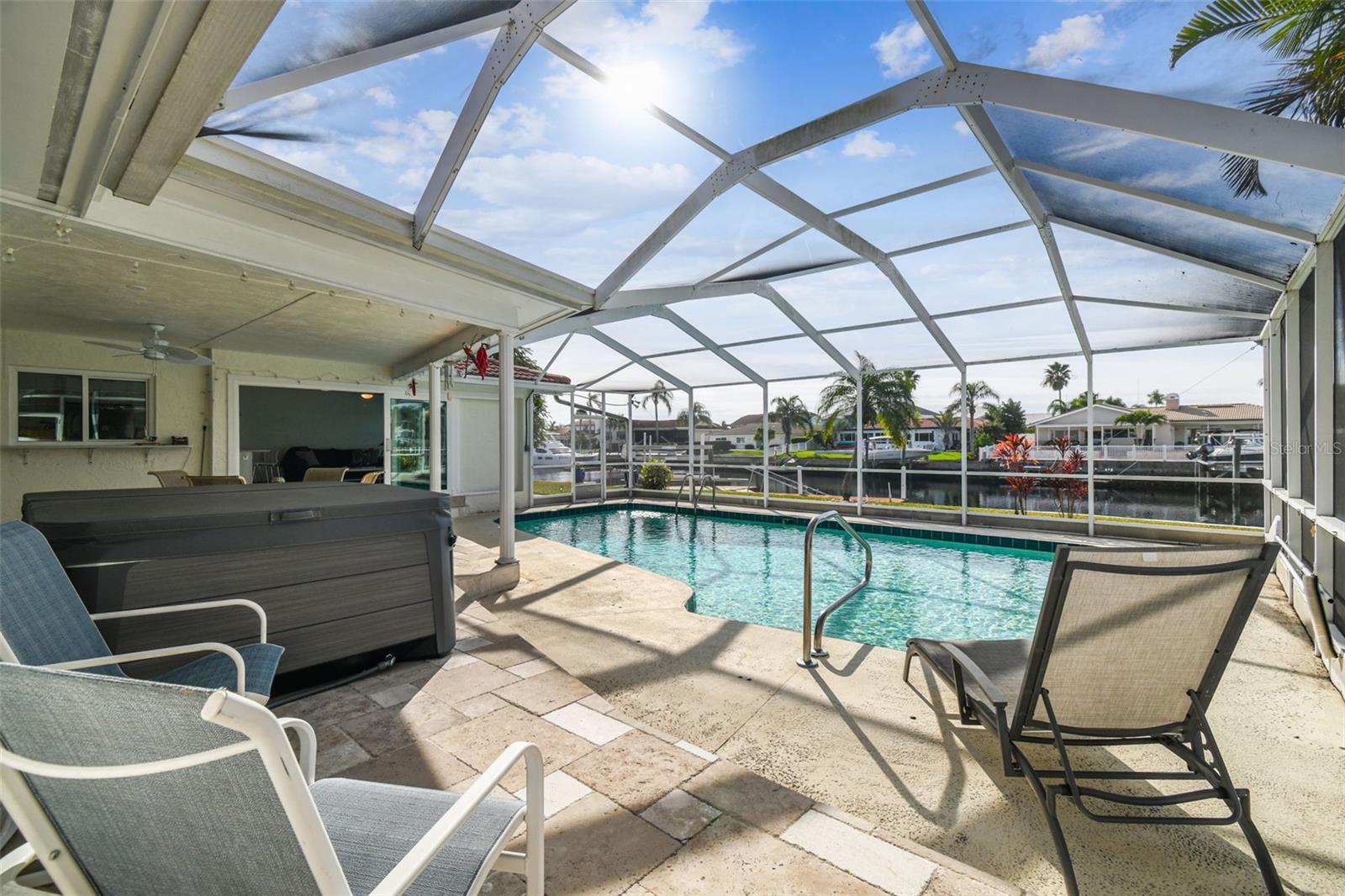 Bem -vindo ao seu paraíso tropical à beira -mar, localizado na principal área sudoeste do Golfo Harbors, a menos de dois minutos de barco das belas águas abertas do Golfo! Com mais de 90 pés de paredão e 12.000 libras. Lift de barco em um canal extra largo e cristalino, 28 pés de profundidade, qualquer barco, até um grande veleiro pode ser acomodado. Observe peixes -boi e golfinhos brincam com mais de 400 pés quadrados de espaço para dock, um ótimo lugar para um bar tiki, talvez? Sente-se na piscina de água salgada espumante, na grande parte de tela, sob o pátio coberto ou na árvore de sombra no grande quintal cercado e privado. O convidativo paisagismo tropical inclui árvores de floração, frutas cítricas, manga e um leito de aspargos. Há um quintal cercado separado para seus animais de estimação e uma doca flutuante, ótima para caiaque e pesca. Todas as novas portas e janelas externas resistentes ao impacto, incluindo duas grandes portas de bolso deslizantes e uma porta de garagem resistente ao impacto, foram instaladas em 2022 para diminuir o custo do seguro. As pregos de terceiros foram adicionados ao telhado inspecionado e limpo profissionalmente em 2022. Novo ladrilho, instalado em 2023, inclui ladrilhos de rodapé que correm por toda a casa. Nos últimos três anos, esta bela casa foi meticulosamente atualizada com materiais de qualidade, de ponta e tinta fresca por dentro e por fora. A expansiva cozinha personalizada, gourmet, com amplo espaço de armário, bancadas de quartzo, aparelhos de aço inoxidável embutidos com tecnologia moderna e uma grande barra de café da manhã é perfeita para entretenimento. A espaçosa suíte privada e principal oferece vistas da água e um grande armário com armários personalizados embutidos. O banheiro principal possui ladrilhos modernos, iluminação de gabinete, pias duplas, bancadas de quartzo e um chuveiro de chuva. Dois grandes quartos adicionais oferecem muito espaço para seus convidados ou escritório. O banho de hóspedes apresenta um grande chuveiro. Outros recursos domésticos incluem um sistema de purificação de água adicionado em 2022 e um sistema CA de zona dupla. Sol da Flórida, brisa fresca do oceano, cores costeiras claras e brilhantes e belas vistas para piscina e água, todas revigoram seus sentidos bem enquanto você caminha pela entrada da frente. Nenhum HOA é necessário! Uma praia privada de bairro de praia (pequena taxa de associação) fica a uma curta caminhada.