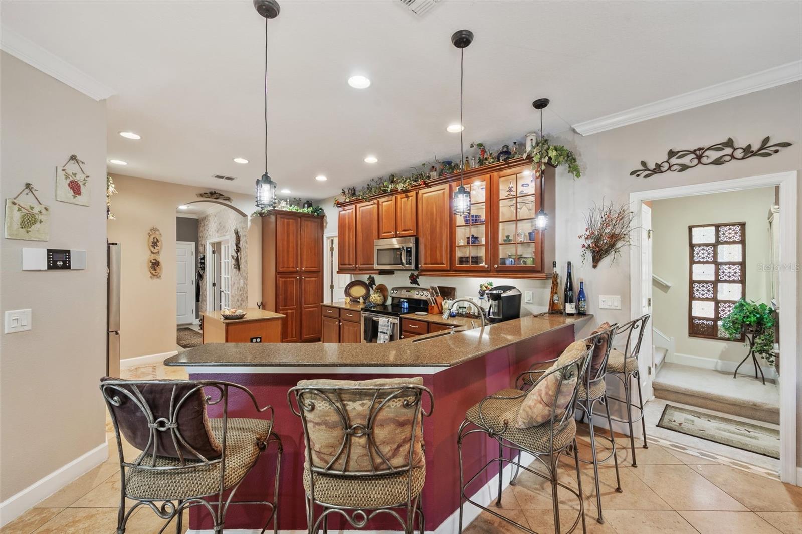 Situado em um lote de conservação, a propriedade oferece privacidade incomparável, sem vizinhos à direita da casa, nenhum atrás da casa e nenhum visível da área da piscina. Este cenário pacífico e isolado é combinado com a planta baixa de Huntington - a única casa no bairro com essa elevação única, tornando -a uma propriedade de destaque. Oferecendo 3.331 pés quadrados de espaço de estar, 5 quartos, 4 banheiros, um escritório dedicado, uma sala de bônus no andar de cima e uma garagem de três carros, esta casa combina perfeitamente design atencioso com atualizações de luxo, criando o retiro perfeito para a vida moderna. Entre e aprecie os detalhes cuidadosamente escolhidos, começando com o piso de travertino diagonal em todas as áreas comuns, um recurso atualizado que adiciona um toque de sofisticação. A cozinha gourmet é o sonho de um chef, com armários de vidro personalizados com iluminação embutida, bancadas de Corian e uma geladeira dupla. O design de conceito aberto cria um fluxo contínuo entre a cozinha, o jantar e os espaços de convivência, tornando-o perfeito para hospedar familiares e amigos. A suíte principal do quarto, localizada no piso principal, é um santuário luxuoso, com armários de imersão e hidromassagem, uma banheira de imersão iluminada por lustres e um chuveiro duplo com várias cabeças. Todos os banheiros apresentam bancadas de granito, pias de porcelana e luminárias atualizadas. No andar de cima, você encontrará uma sala de bônus, ideal para uma sala de jogos ou espaço adicional, junto com quatro quartos espaçosos, um banheiro de macaco e uma jóia e uma conveniente rampa de lavanderia. O sistema de intercomunicação embutido garante uma comunicação fácil em toda a casa. Do lado de fora, o oásis do quintal aguarda, centrado em torno de uma piscina de água salgada aquecida e spa com pop-ups autolimpantes, exigindo manutenção mínima-basta enxaguar o filtro a cada seis semanas. A área da piscina, cercada por uma gaiola de dois andares, inclui uma cachoeira que trabalha, um deck de sol com pavimentação e rocha ardósia e um controle remoto de mão para as configurações de piscina, spa e cascata. A conexão de propano alimenta o aquecedor da piscina e inclui um conector conveniente para sua grade ao ar livre, tornando -o uma configuração perfeita para reuniões de quintal. A casa também possui moldagem por coroa, piso de madeira no escritório, uma conexão de gerador, um piso de garagem com acabamento epóxi e um sistema de segurança com fio com câmeras exteriores conectadas a um monitor na suíte primária. O exterior possui calçadas e passarelas pistoleiras, calhas atualizadas e uma porta de tela que leva à garagem, garantindo funcionalidade e apelo ao meio -fio. Waters Edge oferece um estilo de vida ao estilo de resort com comodidades como um clube, fitness center, piscina comunitária e lagos cênicos. Com sua privacidade incomparável, recursos atualizados e piso único, esta casa é mais do que uma residência-é um estilo de vida. Não perca a chance de possuir esta propriedade rara e excepcional. Agende sua exibição particular hoje!