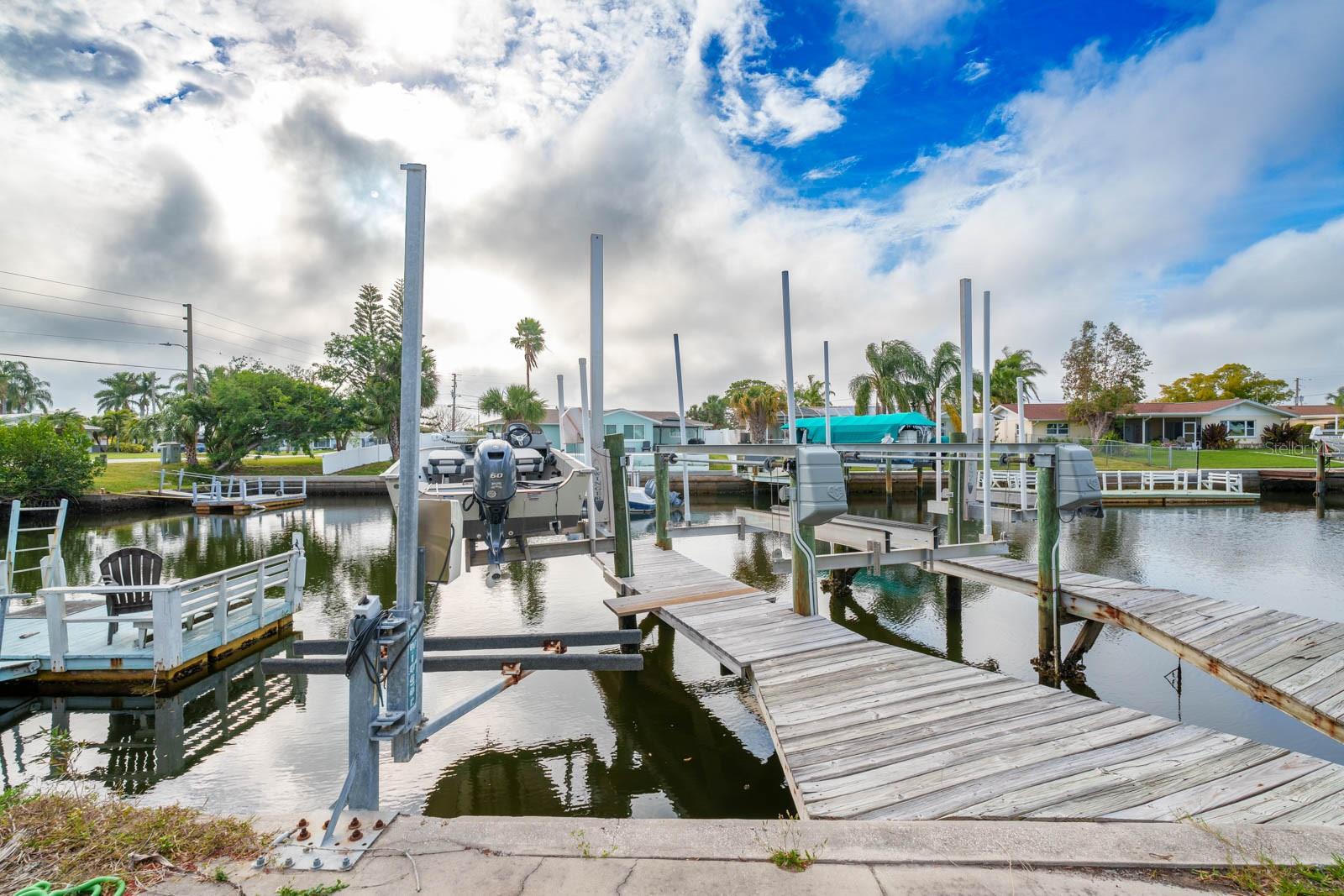 Casa à beira -mar com doca de barco particular e 4 elevadores de barco !!! Além disso, possui saques adicionais com a capacidade de mais 2 jet skis! Novas janelas por toda parte! O Seawall foi substituído em 1997 e é muito mais novo que outras casas da região. Deck do telhado! Casa de 2 quartos/1 banheiro, idealmente localizada com acesso direto à água ao Golfo do México. Ótimas vistas do quintal do deck da cobertura !!! Aquecedor de água sem tanque! Com acesso direto à beira -mar, você poderá desfrutar de passeios de barco, pesca e pôr do sol, desde o seu próprio quintal. A Gulf Harbors oferece um estilo de vida único, sem taxas de HOA, mas vantagens opcionais, como uma associação privada na praia, por apenas US $ 180/ano e uma associação ao clube por US $ 100/ano. A casa foi inundada e todo o drywall foi removido (4 pés), pronto para seus toques para refrescar esta ótima casa a um ótimo preço!
