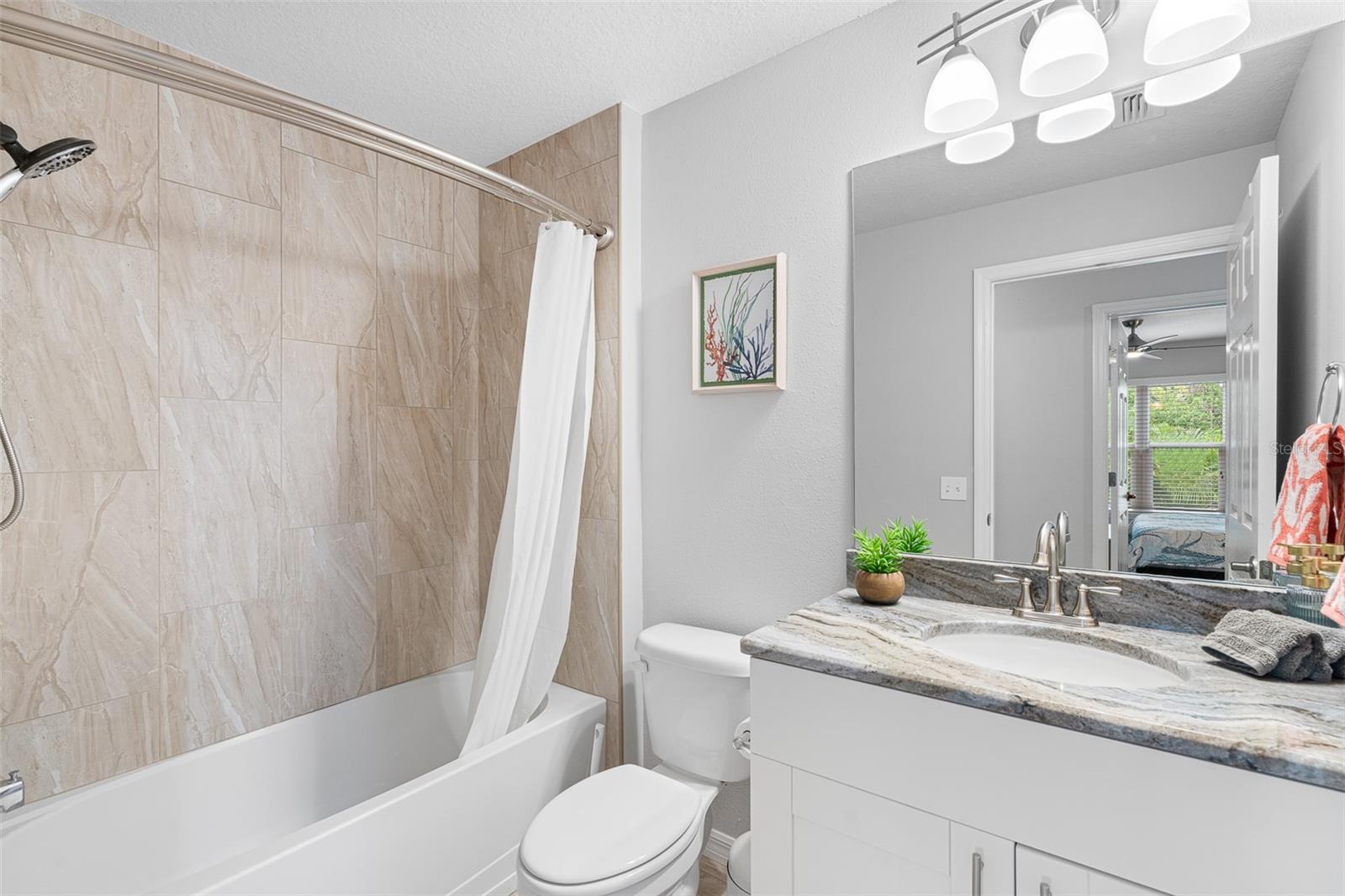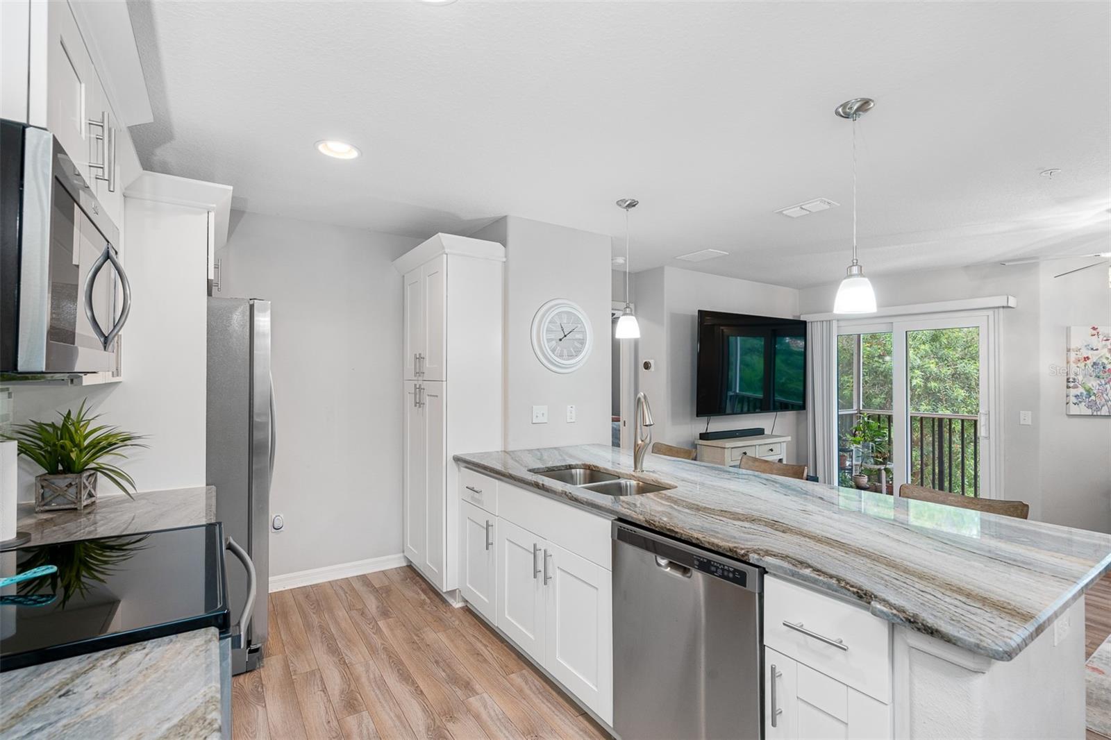 Bem -vindo ao seu condomínio dos seus sonhos no coração de New Port Richey, onde luxo, conveniência e charme costeiro se reúnem. Este impressionante retiro de dois quartos e dois banheiros oferece a mistura perfeita de atualizações modernas e uma localização privilegiada, a poucos minutos do seu acesso privado na praia e a uma curta caminhada ou passeio de bicicleta para as melhores atividades de entretenimento, jantar e ao ar livre que o centro da cidade tem a oferecer. Entre para encontrar um espaço aberto e arejado, com pisos laminados elegantes, iluminação atualizada, uma elegante TV de 65 polegadas e um termostato de ninho de ponta para controle climático sem esforço. A cozinha gourmet é o deleite de um chef, com bancadas de granito de ponta, utensílios de aço inoxidável, espaço de contador estendido, moldagem elegante da coroa e uma despensa espaçosa. Ambos os banheiros foram lindamente atualizados com bancadas de granito luxuosas, ladrilhos de grife e portas de chuveiro de vidro, criando uma verdadeira experiência semelhante ao spa. Um espaço de bônus versátil, resfriado por um sistema de mini-split, pode ser personalizado como um escritório em casa, um lounge para jogos ou uma área de armazenamento extra. A suíte master é um retiro privado, completo com um closet para amplo armazenamento. Saia até a varanda exibida, onde você pode relaxar e apreciar as vistas tranquilas e arborizadas. Este condomínio está pronto para se mover, com um sofá quase novo de couro e uma sala de jantar, juntamente com janelas de impacto por furacões e uma área de lavanderia interna equipada com uma lavadora e secadora mais recentes. Além disso, a garagem de um carro fornece estacionamento seguro e armazenamento adicional. Esta unidade do segundo andar oferece vistas arborizadas relaxantes, uma piscina comunitária e a conveniência dos elevadores para facilitar o acesso. Não perca a chance de possuir uma fatia do paraíso, a poucos passos de tudo o que o New Port Richey tem a oferecer!