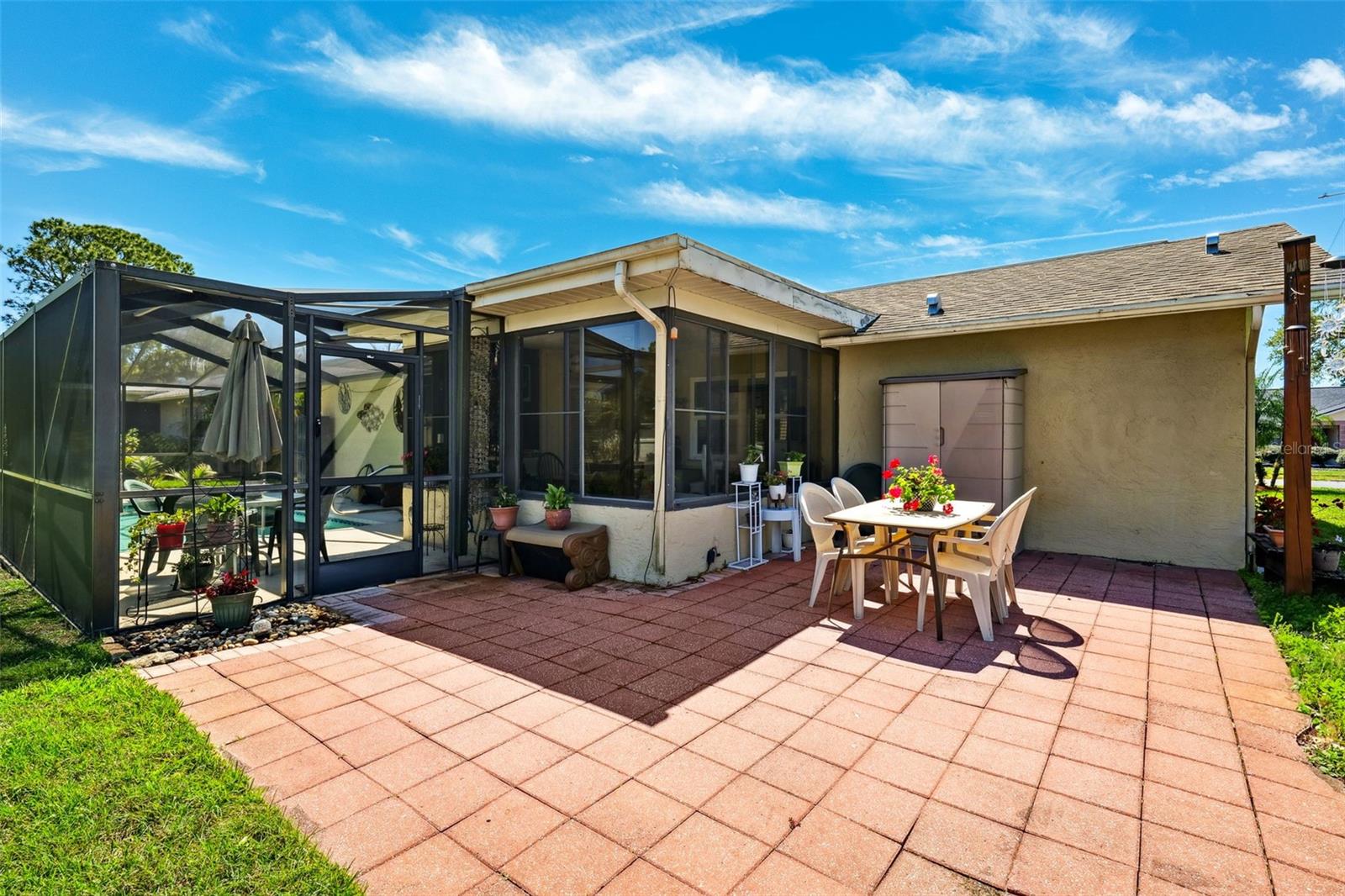 Bem-vindo a isso, deve ver encantadora piscina de 2 quartos e 2 banheiros nas propriedades de Greenbrook em New Port Richey! Desde o momento em que você chegar, você será cativado pela calçada pizada, porta de vidro decorativo, anel de paisagem personalizada e uma bela iluminação paisagística que aprimora o apelo do meio -fio da casa. A varanda da frente coberta fornece uma entrada quente e convidativa. Entre e descubra uma planta baixa com tetos altos, criando uma sensação espaçosa e arejada por toda parte. As áreas de estar e jantar fluem perfeitamente para a cozinha bem equipada, que possui uma grande ilha, bancadas de granito, um backsplash de ladrilhos, iluminação de gabinete submetidos e uma barra de café da manhã-perfeita para refeições casuais e entretenimento. A casa apresenta uma mistura de ladrilhos de madeira e piso de carpete, oferecendo estilo e conforto. A suíte primária é generosamente dimensionada com amplo espaço no armário, enquanto o quarto secundário é igualmente espaçoso e versátil. Ambos os banheiros são bem mantidos e projetados para conveniência. Uma única porta de vidro leva você a um pátio de traseiro coberto e selecionado, completo com uma unidade CA de janela para conforto durante todo o ano. A piscina de água salgada no solo é cercada por um pátio de deck frio e um gabinete de tela, tornando-o o oásis privado perfeito para relaxar ou divertir. Recursos adicionais incluem Windows de impacto de furacões de pau duplo (2017), telhado (2017), uma unidade CA (2018) e uma tela de porta de garagem. Morar em Greenbrook Estates significa desfrutar de acesso a uma piscina e clubhouse da comunidade, juntamente com uma localização privilegiada perto de compras, restaurantes, instalações médicas e escolas de melhor classificação. Não perca esta oportunidade - Escoque sua exibição particular hoje!