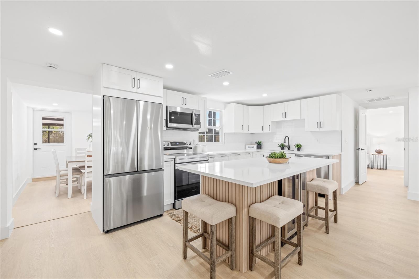 Bem-vindo a esta residência lindamente atualizada de 3 quartos e 2 banheiros, garagem para um carro e apelo convidativo ao meio-fio. Ao subir, você é recebido por uma varanda coberta – o local perfeito para desfrutar do seu café da manhã. Entre para descobrir uma área de estar, jantar e cozinha de conceito aberto que flui perfeitamente, ideal para entreter ou relaxar com a família. A cozinha moderna possui bancadas totalmente novas, armários personalizados, eletrodomésticos de aço inoxidável e uma adega refrigerada – uma verdadeira peça central para reuniões e vida cotidiana. A suíte principal oferece conforto e estilo com um elegante banheiro privativo e um espaçoso closet. Nas proximidades, você encontrará um quarto de hóspedes iluminado e arejado, enquanto o lado oposto da casa possui outro quarto de hóspedes e um moderno banheiro completo, oferecendo privacidade para familiares ou visitantes. Aproveite o melhor da vida na Flórida na varanda dos fundos coberta e com tela, com vista para um quintal totalmente cercado - perfeito para crianças, animais de estimação ou entretenimento ao ar livre. Atualizações adicionais proporcionam tranquilidade, incluindo um novo telhado (2021), sistema HVAC (2022) e aquecedor de água (2024) — garantindo conforto e eficiência nos próximos anos. Convenientemente localizado a menos de 10 minutos do Parque Memorial Robert K. Rees para um dia rápido na praia e perto de ótimos restaurantes locais e das principais rotas para um deslocamento fácil. Quer você seja um comprador de uma casa pela primeira vez, esteja reduzindo o tamanho ou procurando seu próximo investimento, esta joia de New Port Richey está pronta para morar e esperando por você!
