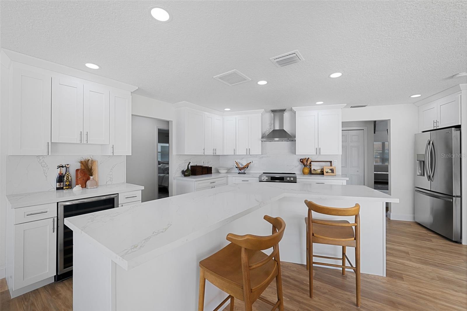Bem-vindo à casa dos seus sonhos à beira-mar em Gulf Harbors, em New Port Richey, Flórida! Esta deslumbrante residência de 3 quartos e 3 banheiros e garagem para 2 carros oferece um estilo de vida luxuoso à beira-mar com uma série de comodidades modernas. Ao entrar, você será saudado por um interior recentemente remodelado, com novo piso de vinil luxuoso e pintura fresca por toda parte. O espaço aberto é realçado pelo teto da catedral com vigas expostas acima da sala de estar e da sala de jantar elevada. A sala familiar possui portas de correr de vidro, proporcionando vistas deslumbrantes sobre o canal e permitindo que a luz natural inunde a casa. A nova cozinha é uma delícia para o chef, com todos os novos eletrodomésticos de aço inoxidável, incluindo uma adega refrigerada, exaustor e um micro-ondas tipo gaveta com função abrir/fechar com um toque embutido na ilha. A janela saliente na sala de jantar adjacente oferece ainda outra vista da água. Um ótimo lugar para saborear o seu café da manhã enquanto observa os golfinhos que ocasionalmente aparecem no seu quintal. A lavanderia ao lado da garagem agrega comodidade ao dia a dia com pia própria, armários para arrumação e balcão para dobrar. A planta dividida oferece privacidade e conforto, com a suíte principal situada em uma extremidade da casa e o segundo quarto com banheiro privativo, o terceiro quarto e banheiro de hóspedes separado situado na outra, proporcionando amplo espaço para família e convidados. O banheiro principal possui um amplo box amplo com chuveiro com efeito de chuva e bancada embutida, pia dupla, closet e banheiro privativo. O banheiro privativo do segundo quarto possui box amplo e pia individual. O terceiro banheiro (de hóspedes) está convenientemente localizado no corredor entre os quartos dois e três. No exterior, o exterior foi totalmente remodelado, incluindo pintura e cantaria, com telhado de telha recentemente repintado e entrada de automóveis. O pátio dos fundos foi atualizado com novos pavimentos e tem vista para o canal, incluindo 20 metros de frente para o mar, oferecendo um local sereno para relaxar e se divertir. A localização é fundamental e esta casa não decepciona. A menos de 400 metros abaixo do canal, você se encontrará no Golfo do México, oferecendo inúmeras oportunidades para passeios de barco e atividades aquáticas. Gulf Harbors é uma comunidade amigável para carrinhos de golfe que permite fácil acesso à Praia Privada de Gulf Harbors, a poucos quarteirões de distância. O acesso à praia privada pode ser obtido ingressando no Gulf Harbors Private Beach Club por uma taxa anual adicional. A Gulf Harbors Civic Association (uma HOA voluntária) oferece comodidades e eventos comunitários adicionais. Não perca a chance de tornar este oásis à beira-mar seu e experimentar o melhor da Flórida vivendo em Gulf Harbors!